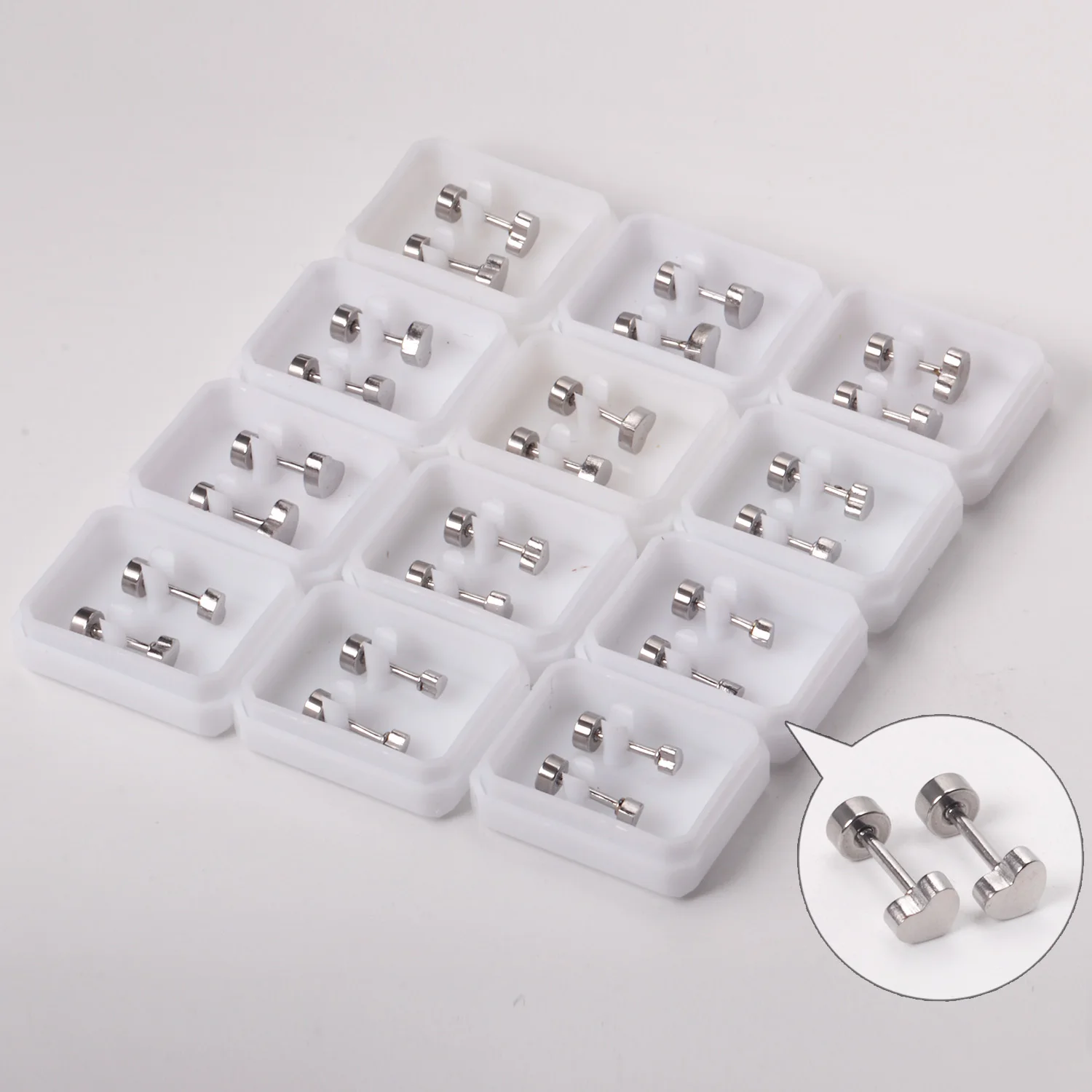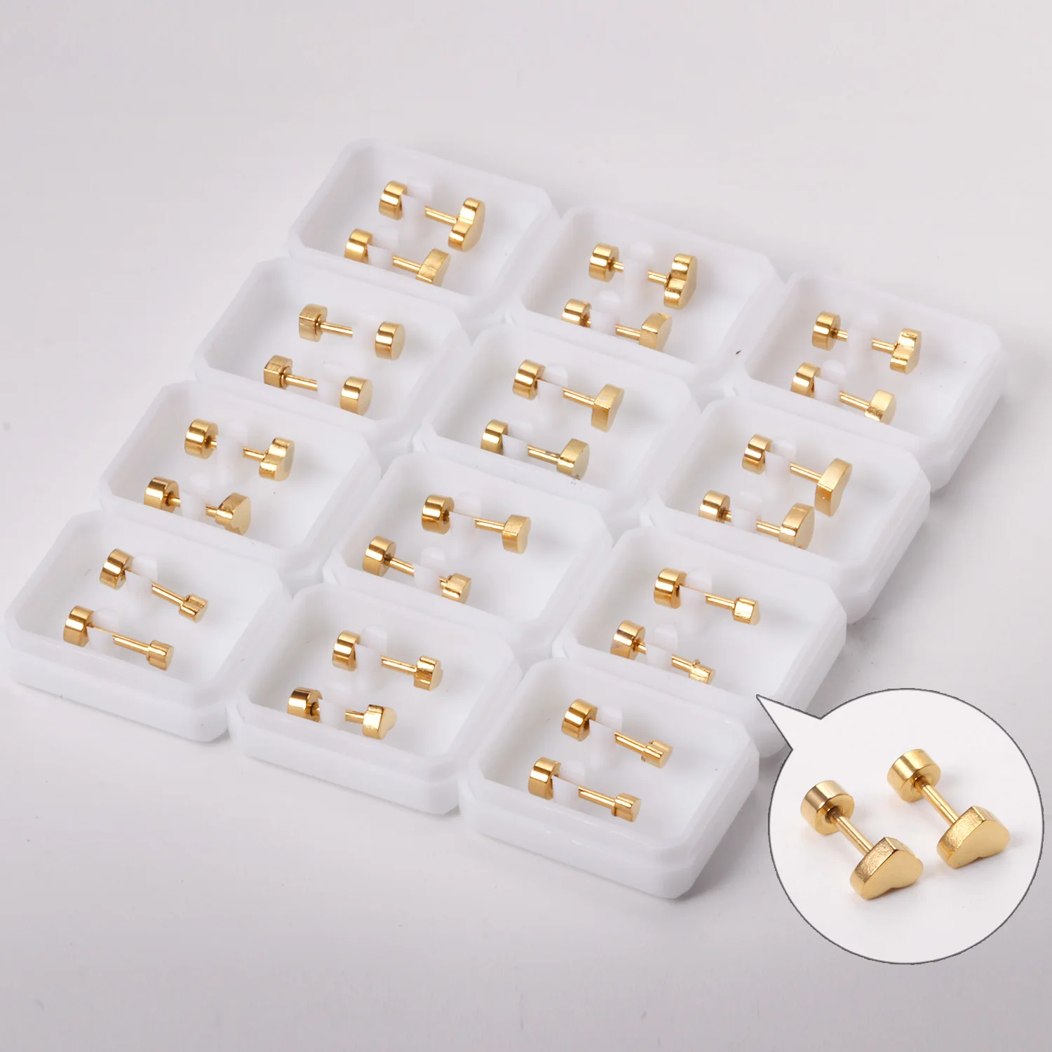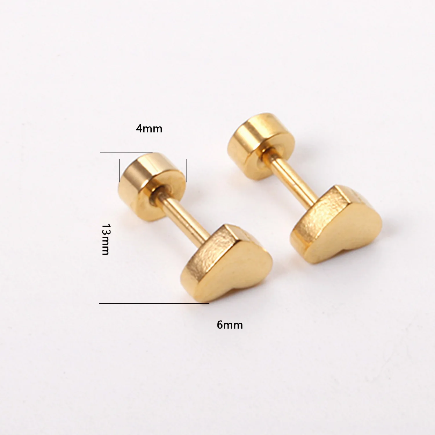 12 Pairs 316L Stainless Steel Heart Earrings Multi Size 3mm 4mm 5mm 6mm Anti-allergy Screw Back Wholesale Women Girl Earrings