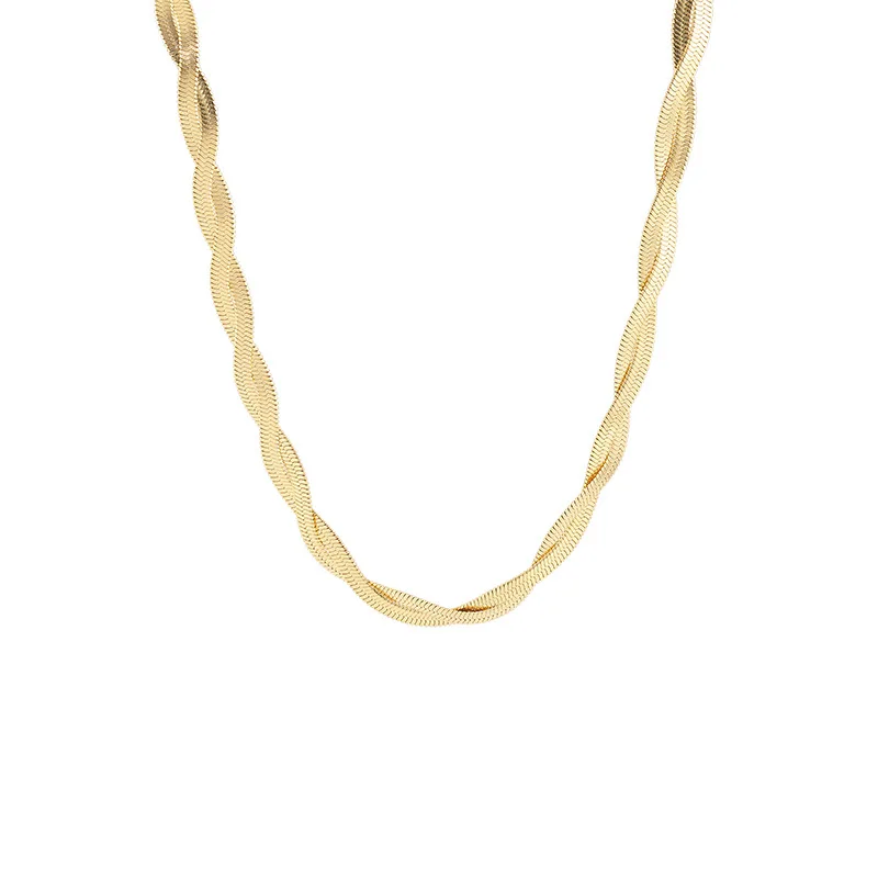 2024 18K Gold Plated Waterproof Braided New Herringbone Chain Necklace Bracelets Set Wholesale Stainless Steel Jewelry For Women