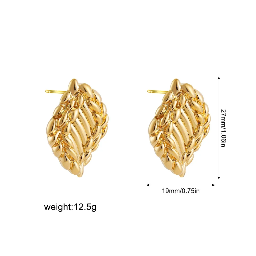 2024 Minimalist Stainless Steel PVD Gold Color Plated Metal Stud Earrings Statement Waterproof Texture Square Spiral Ear Jewelry