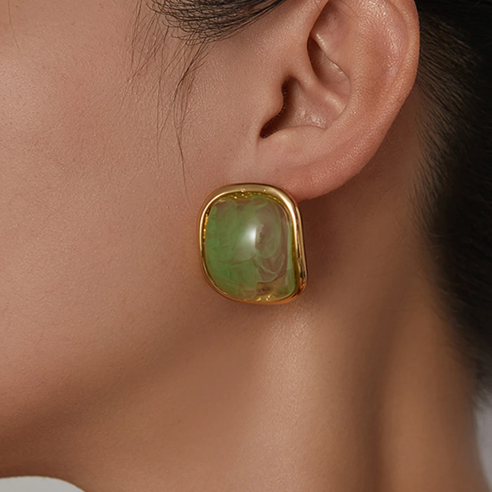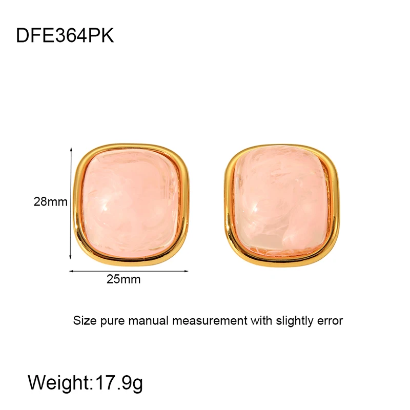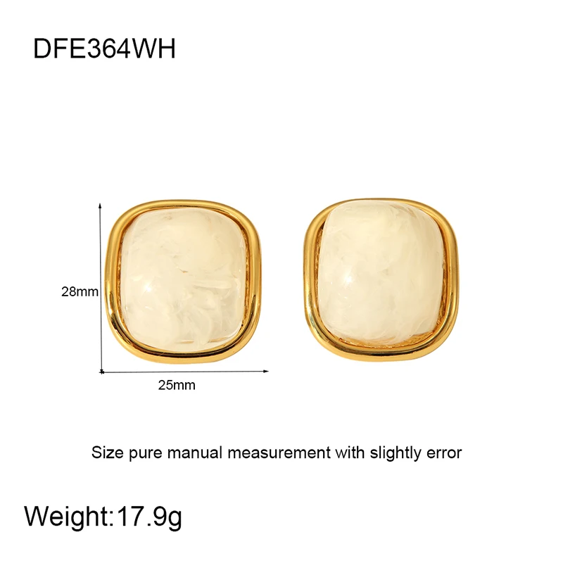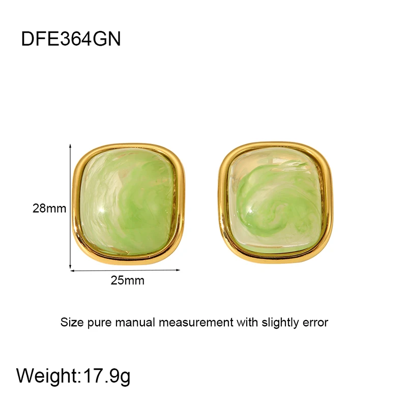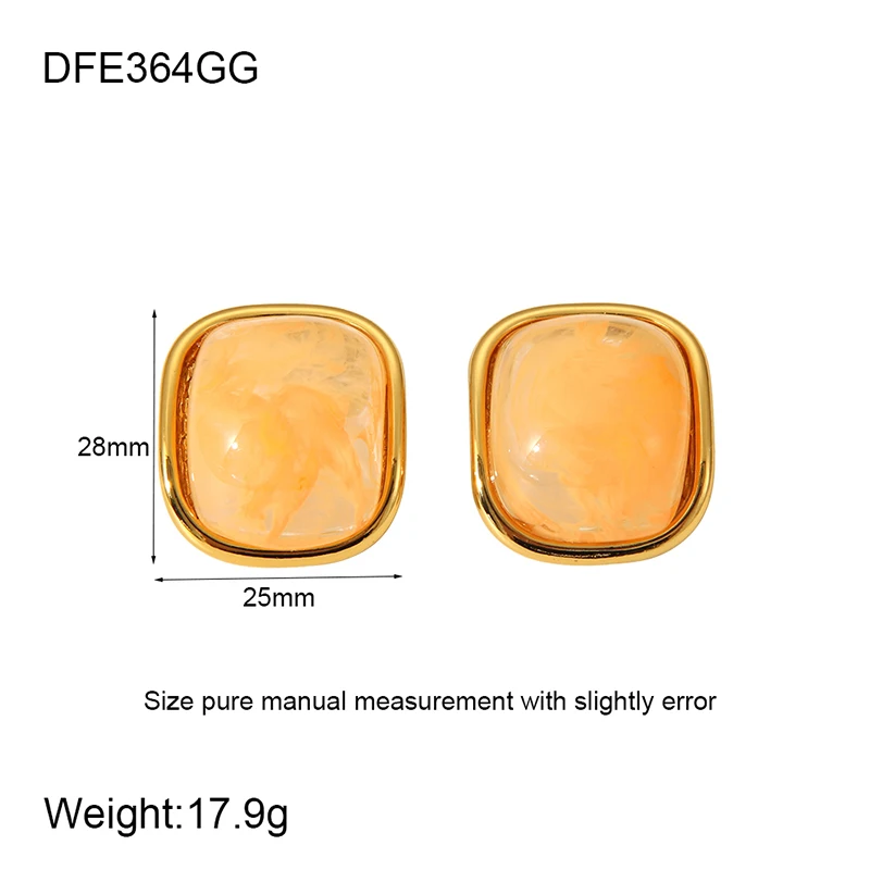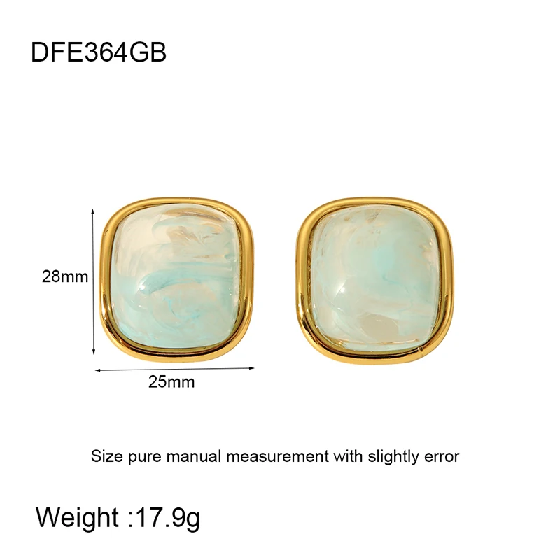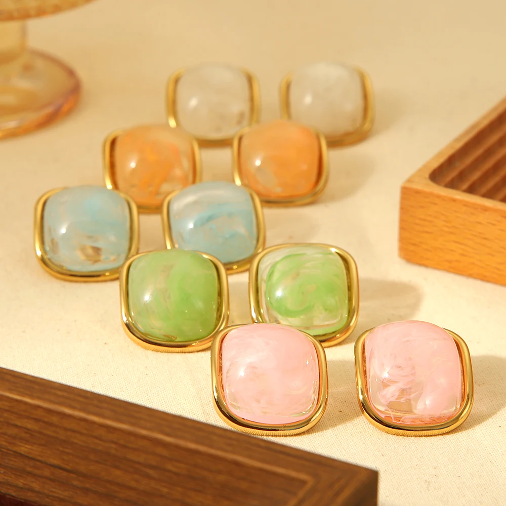 2024 Summer Colorful Resin Swirl Square Stainless Steell Stud Earrings 18k Gold Plated Women Jewelry Waterproof