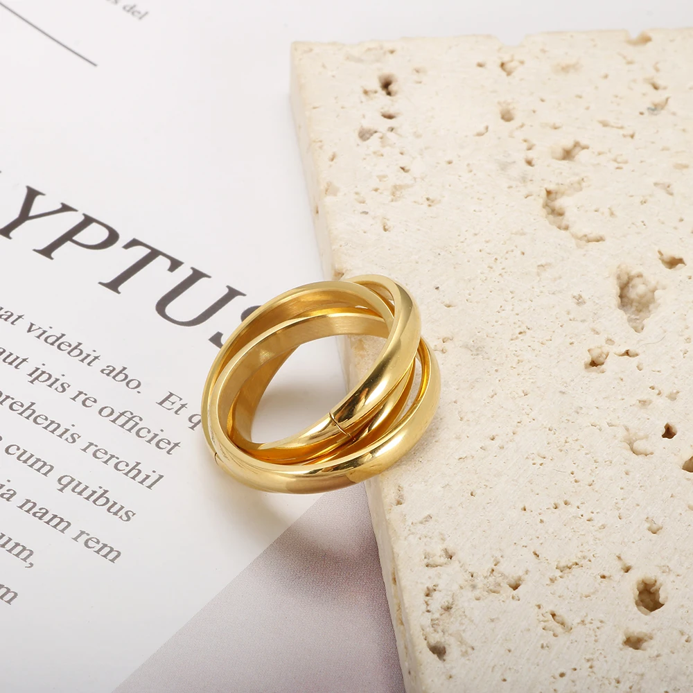 3 in 1 Triple Interlocked Rings For Women Men Couple Wedding Engagement Finger Ring Stainless Steel Goth Waterproof Jewelry Gift