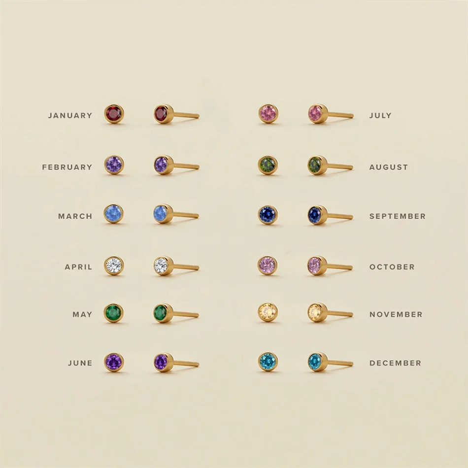 316 Stainless Steel Birthstone Ear Stud Piercing Gun Gold Color Push-Back Earrings Piercing Safe For Baby And Women Gift Jewelry