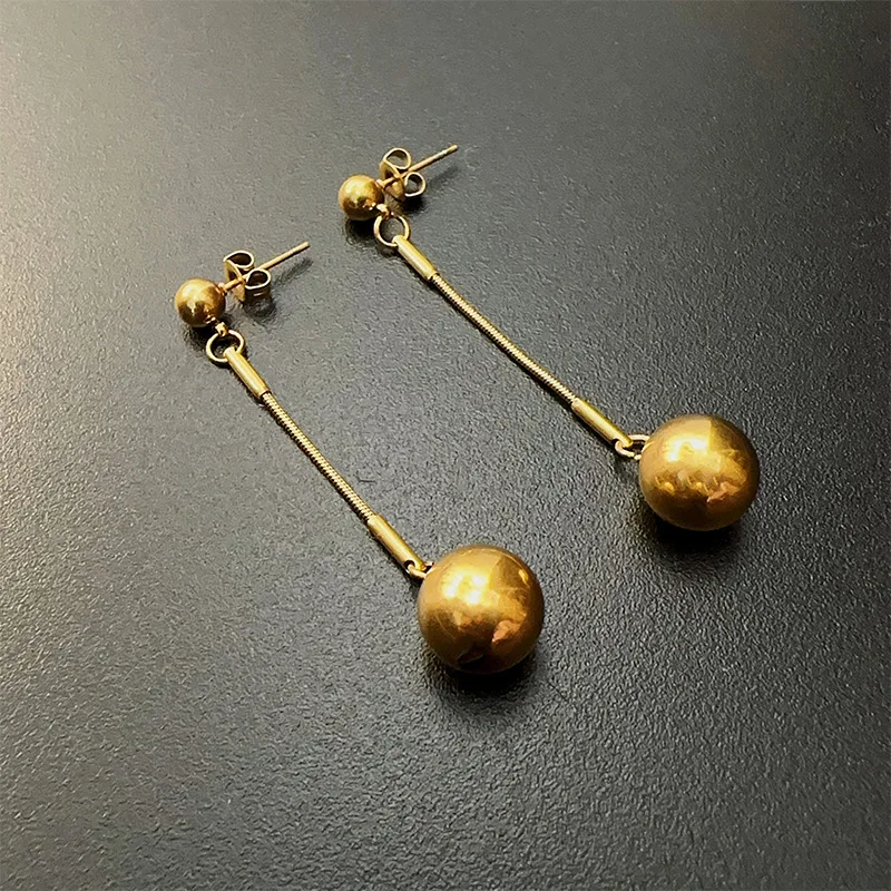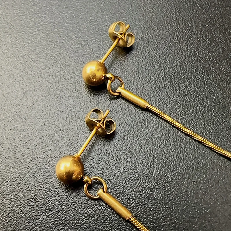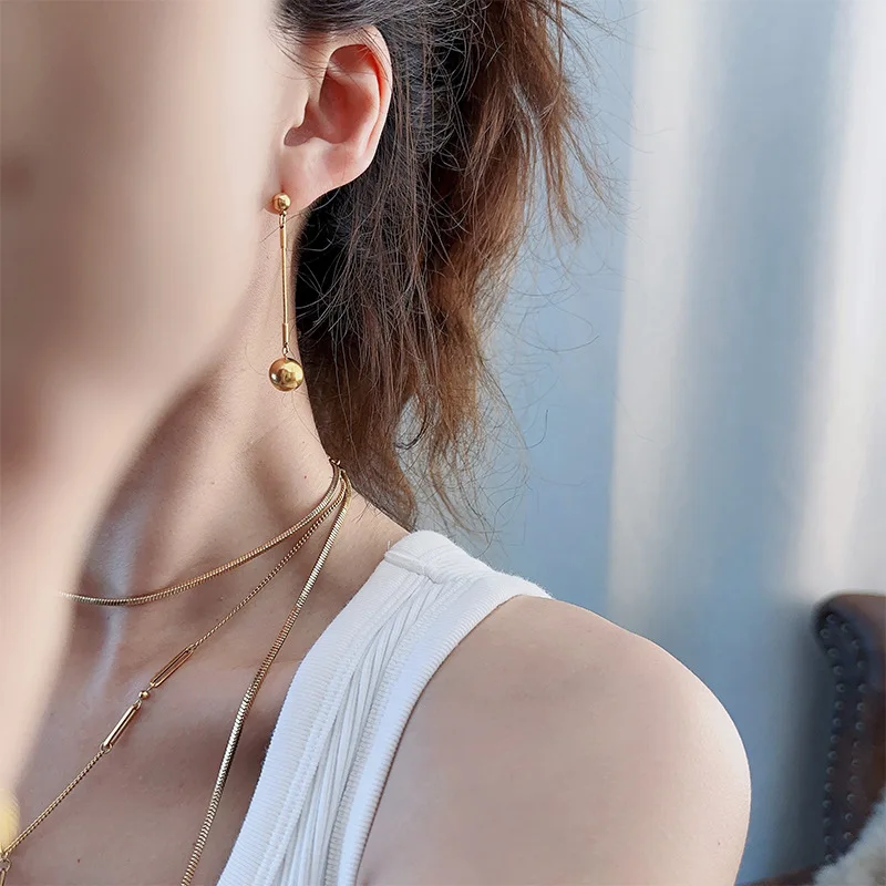 316L Stainless Steel Ball Beads Long Pendant Earrings For Women Girl Fashion Gold Color Ear Drop Waterproof Jewelry Gift