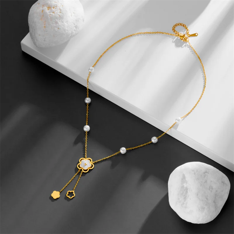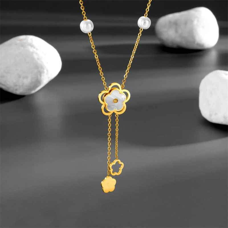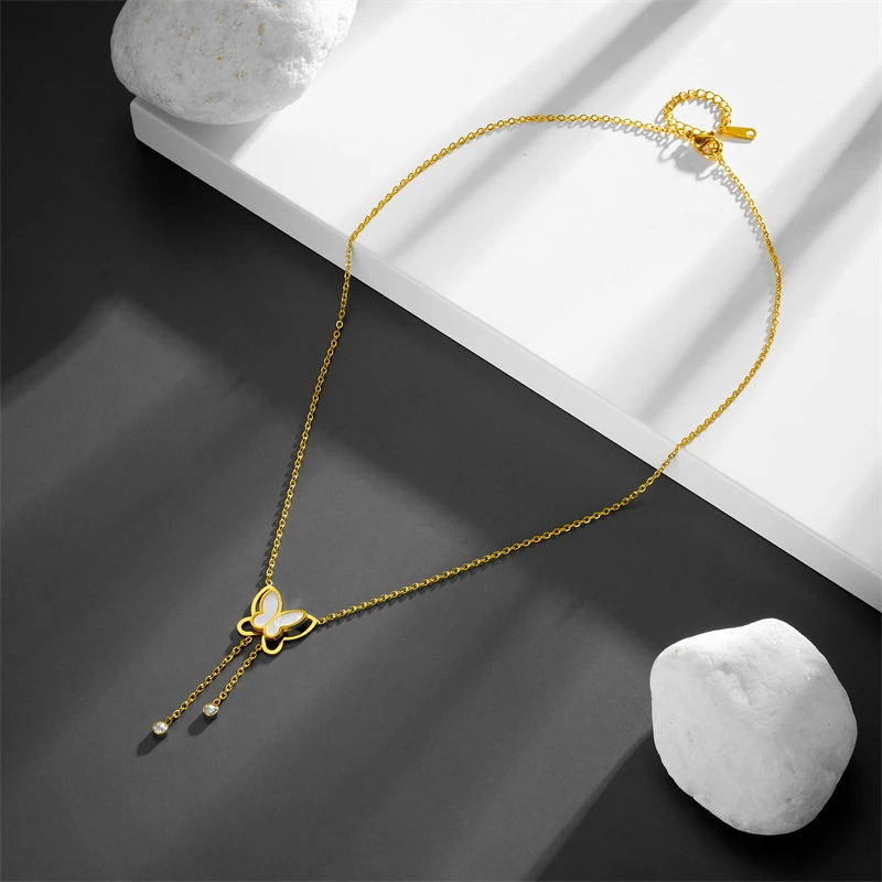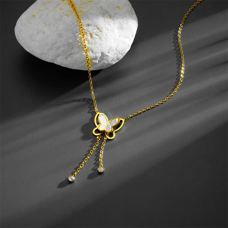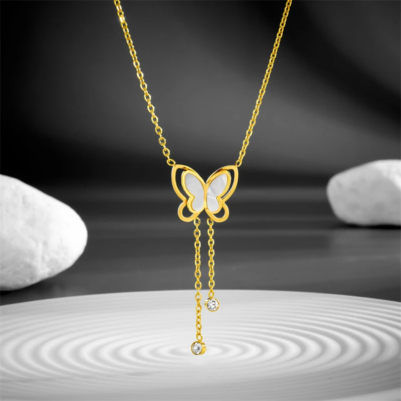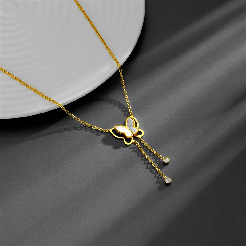 316L Stainless Steel New Fashion Fine Jewelry 2-Styles Butterfly Flower Tassels Charm Chain Choker Necklace Pendant For Women
