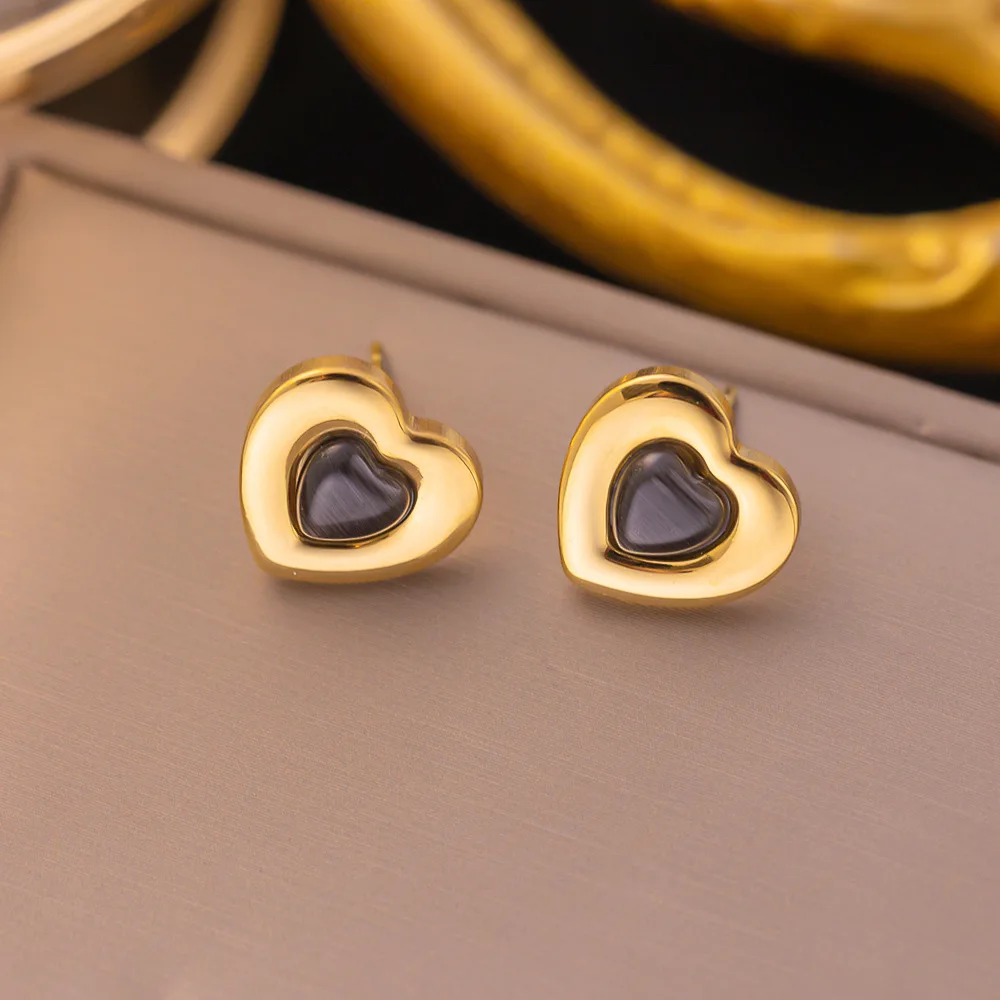 316L Stainless Steel Simple Cute Black And White Heart Stud Earrings For Women Fashion Girls Gold Color Jewelry Birthday Gifts
