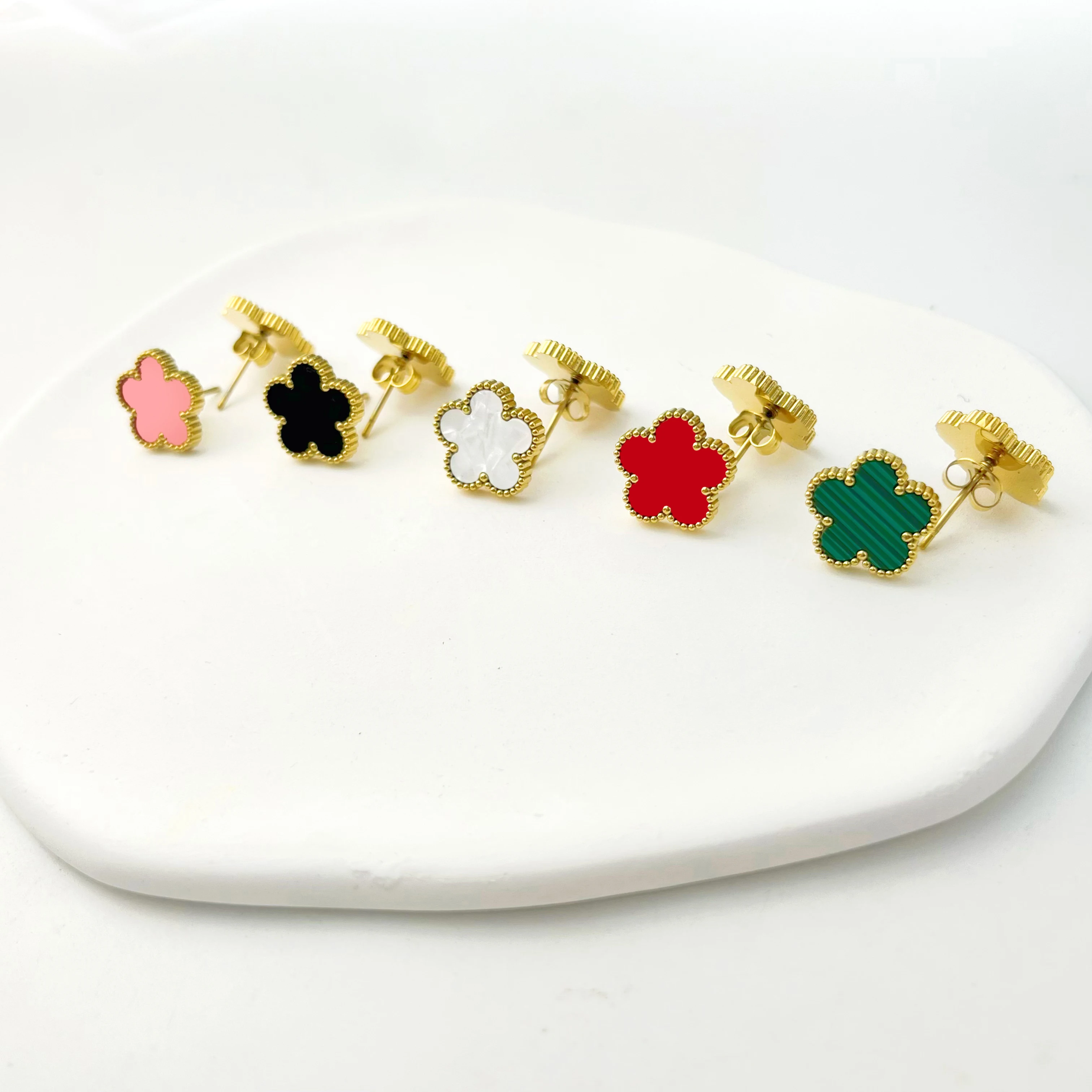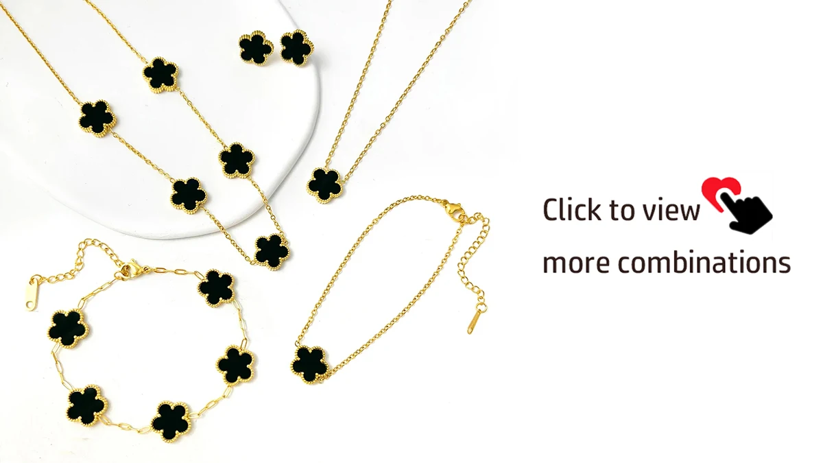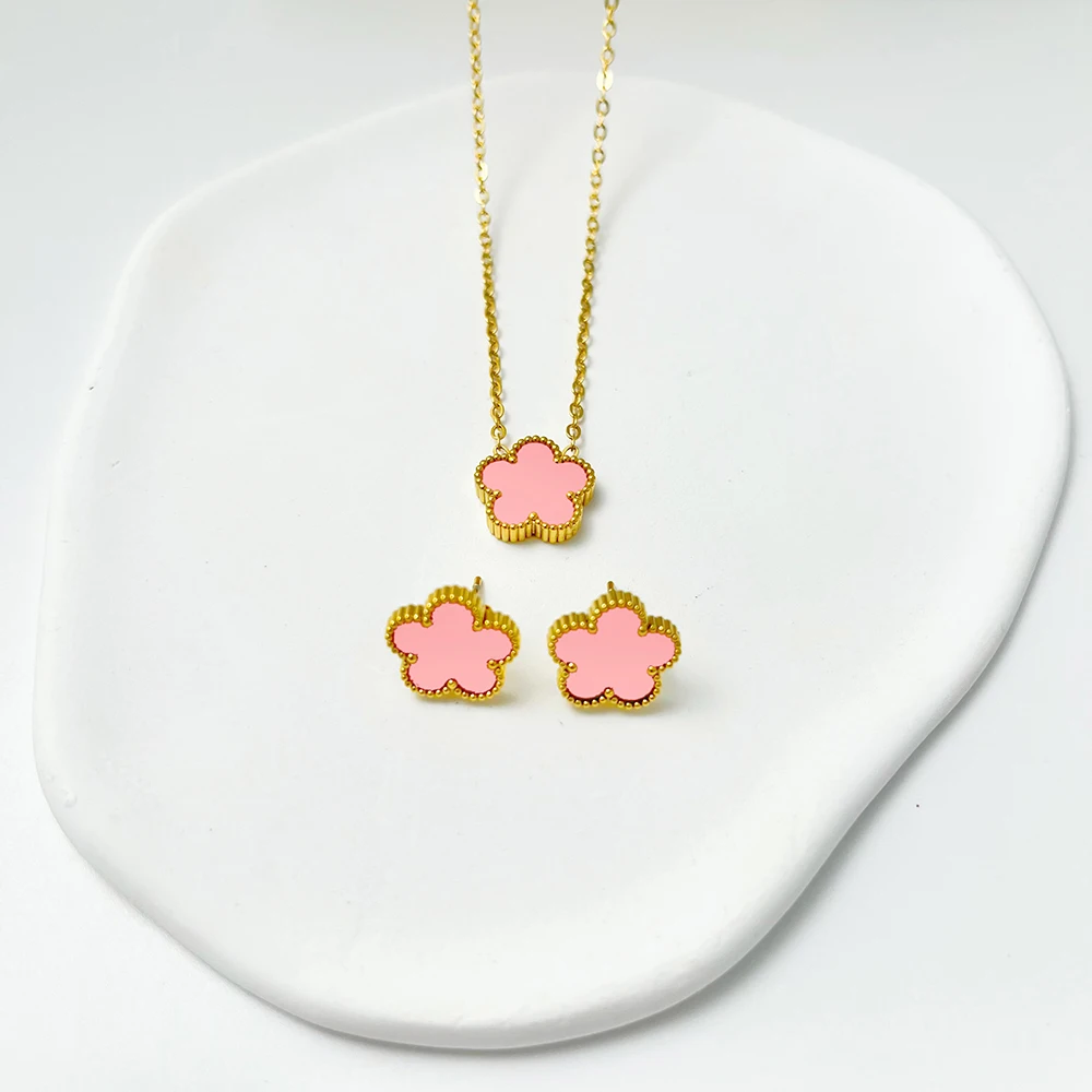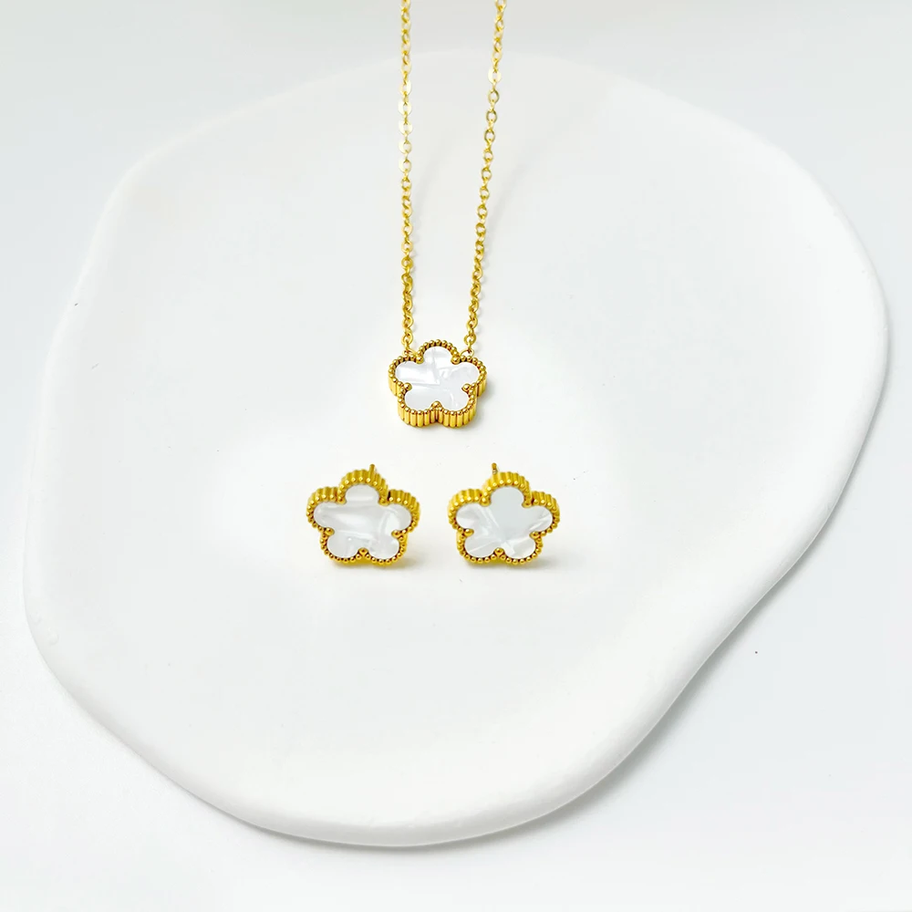 ALTERA 2Pcs Luxury 5 Leaf Flower Pendant Necklace Earrings for Women Gift Fashion Stainless Steel Double Side Clover Jewelry Set