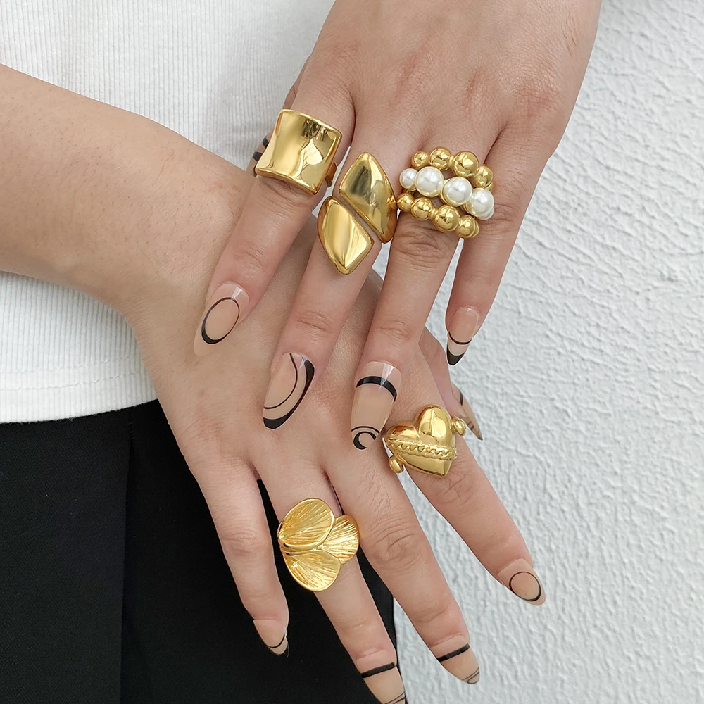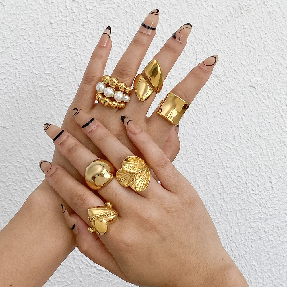 Amorcome Chunky Geometric Stainless Steel Rings for Women Personality Multiple Styles Irrgular Large Ring Luxury Jewelry Gifts