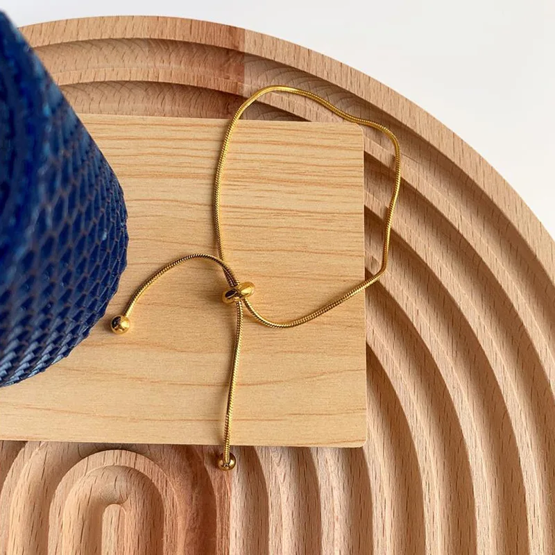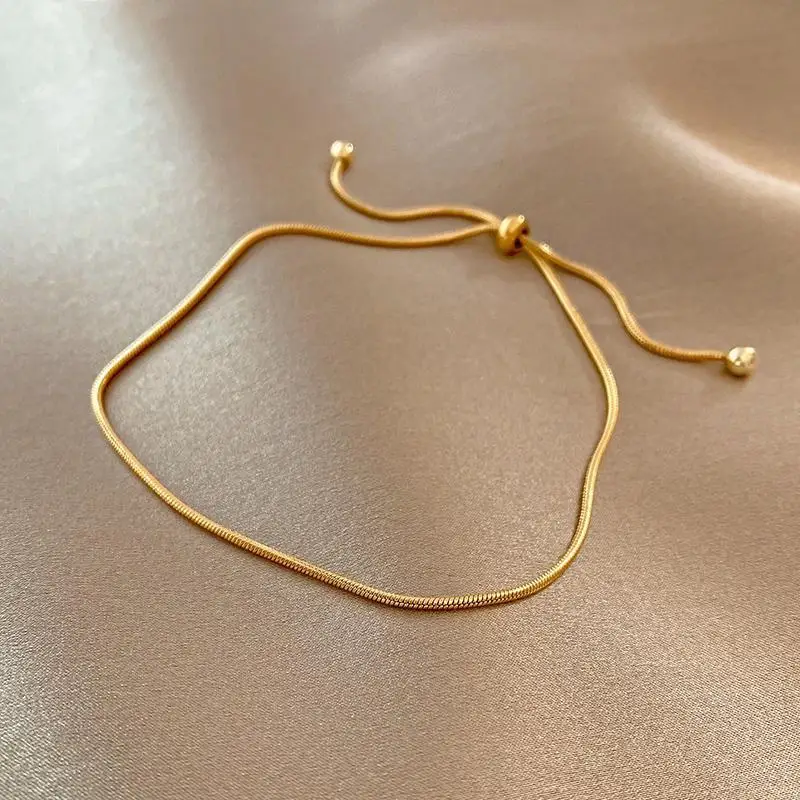 ANENJERY 316L Stainless Steel Adjustable Pull Bracelet Anklet Female Ins Cold Wind Simple Snake Bone Chain Bracelet