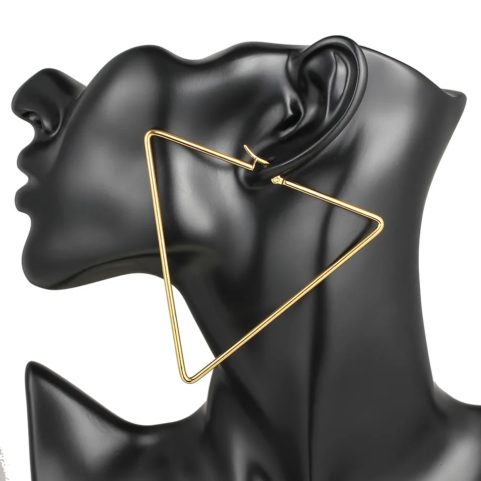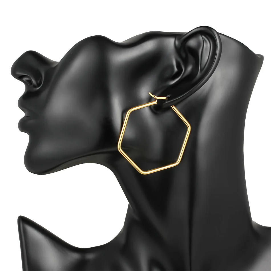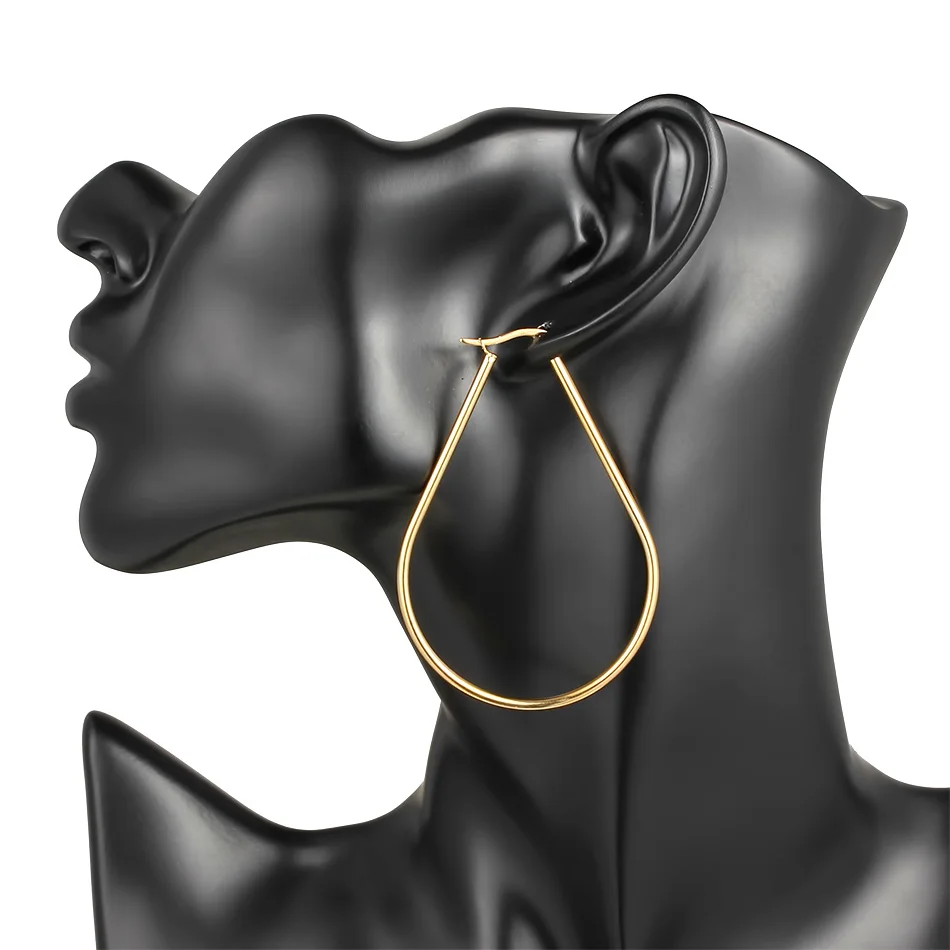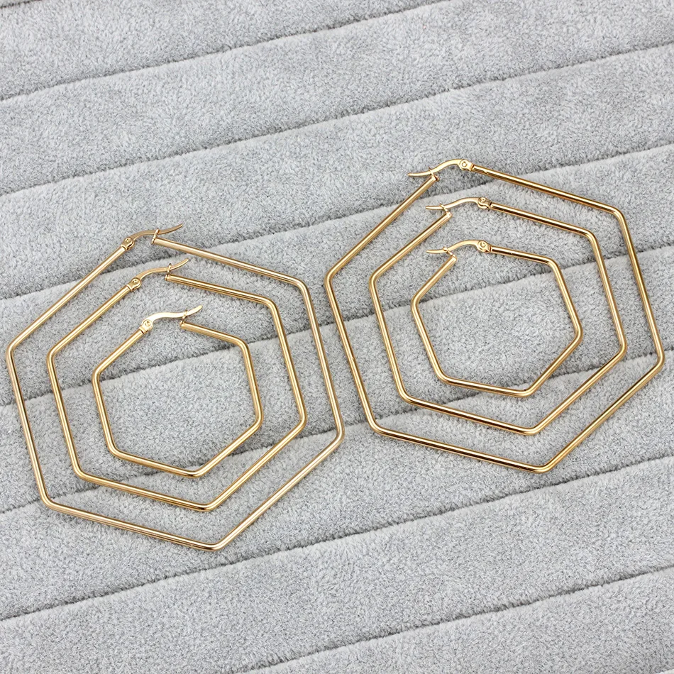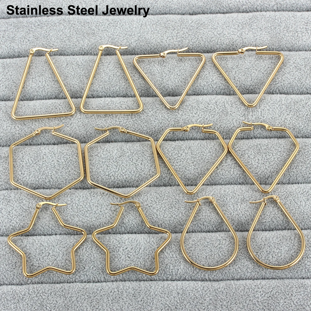Big Stainless Steel Geometric Hoop Earrings For Women Gold Plated Trendy Female Jewelry Gift