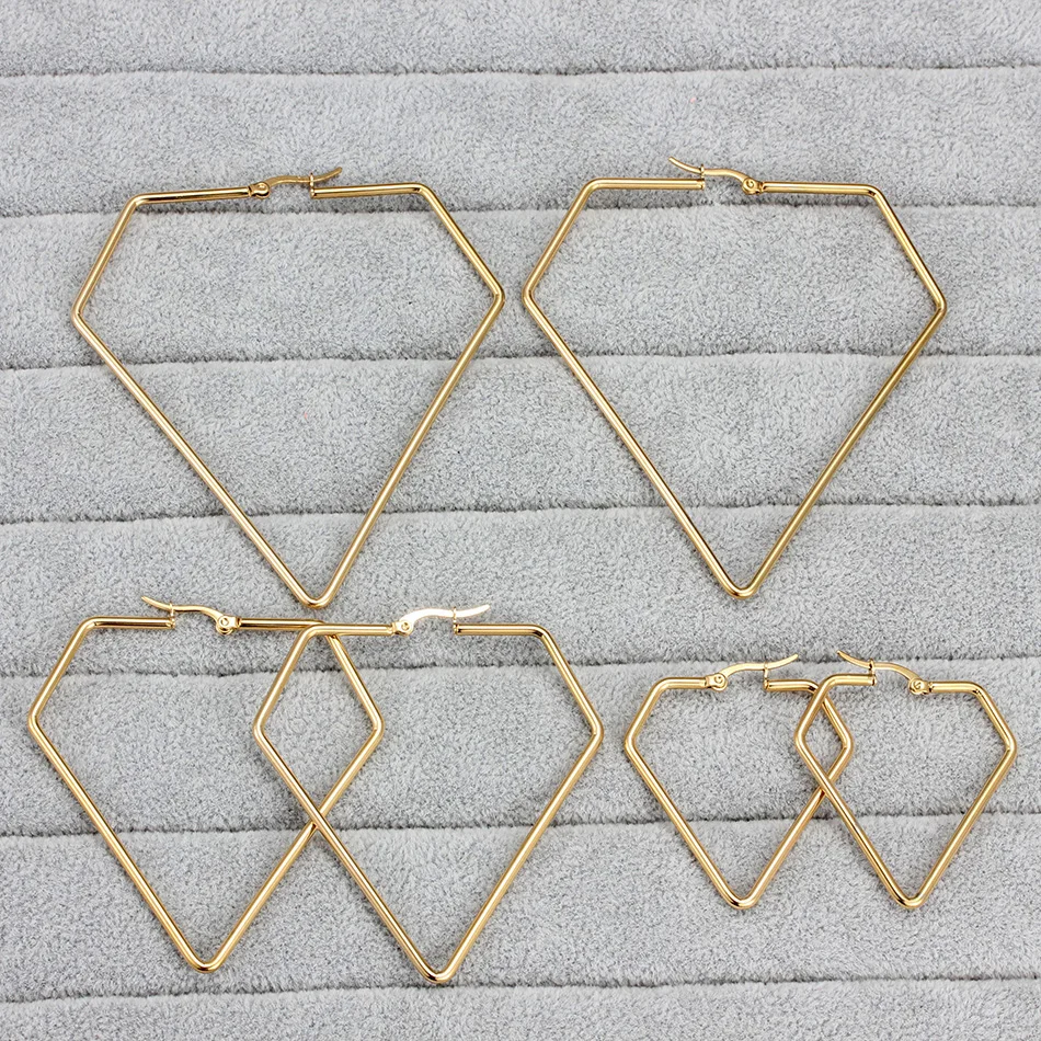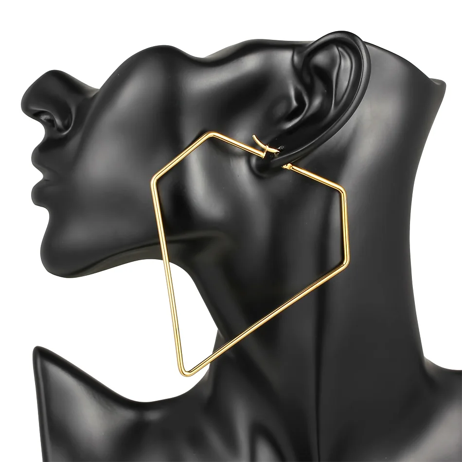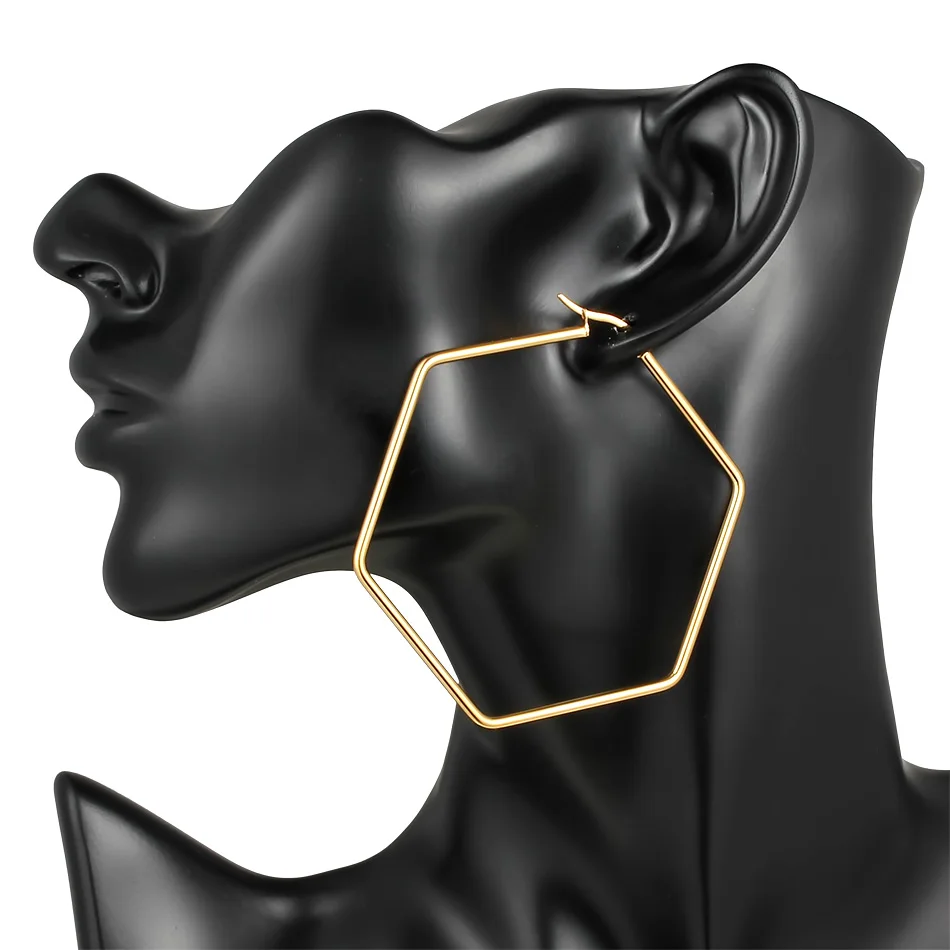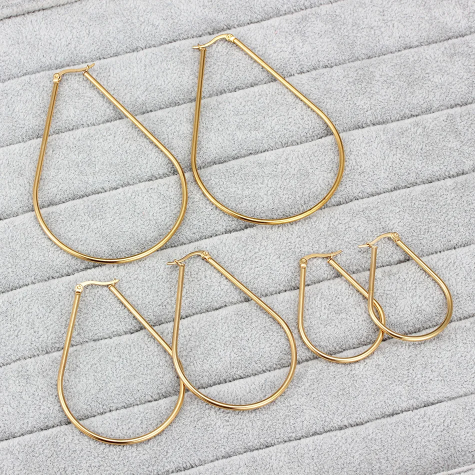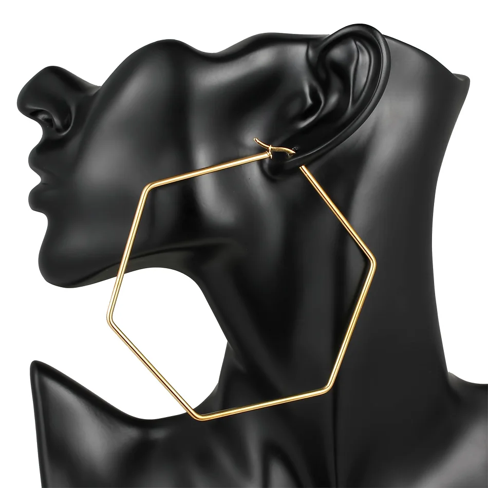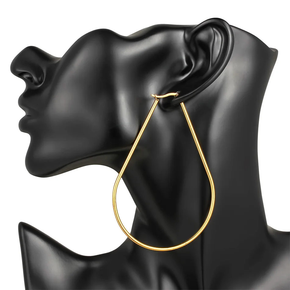 Big Stainless Steel Geometric Hoop Earrings For Women Gold Plated Trendy Female Jewelry Gift