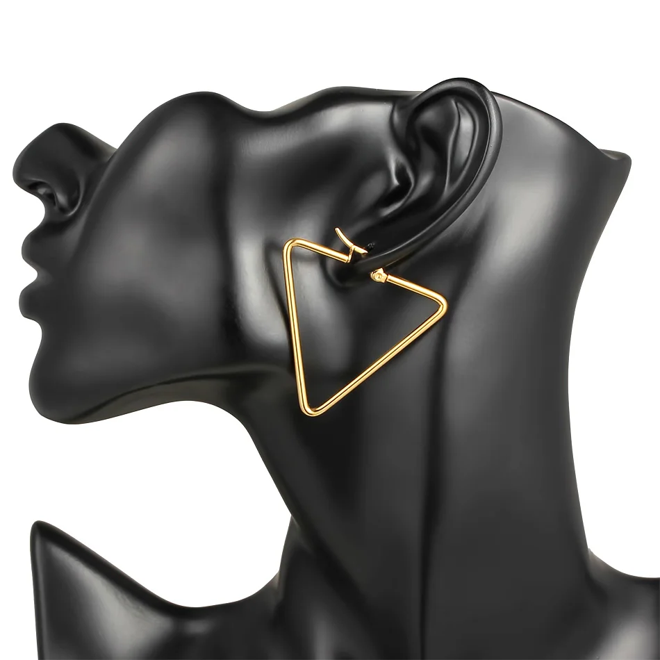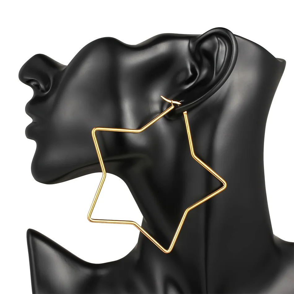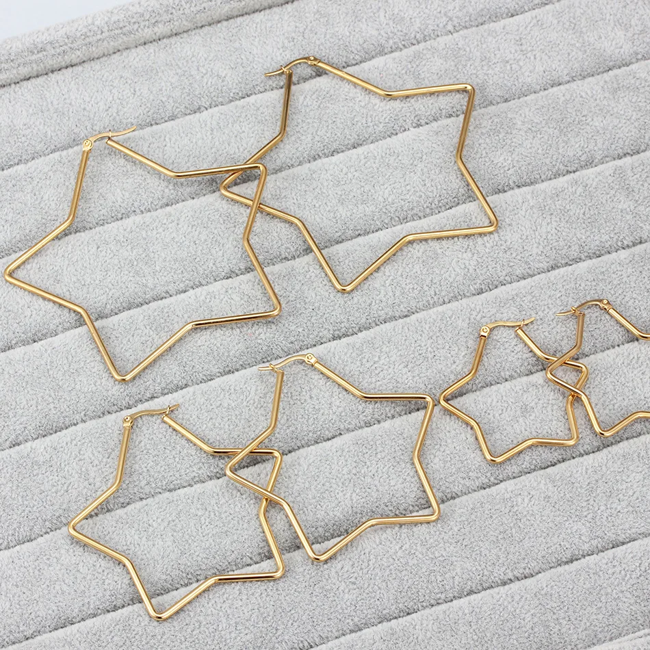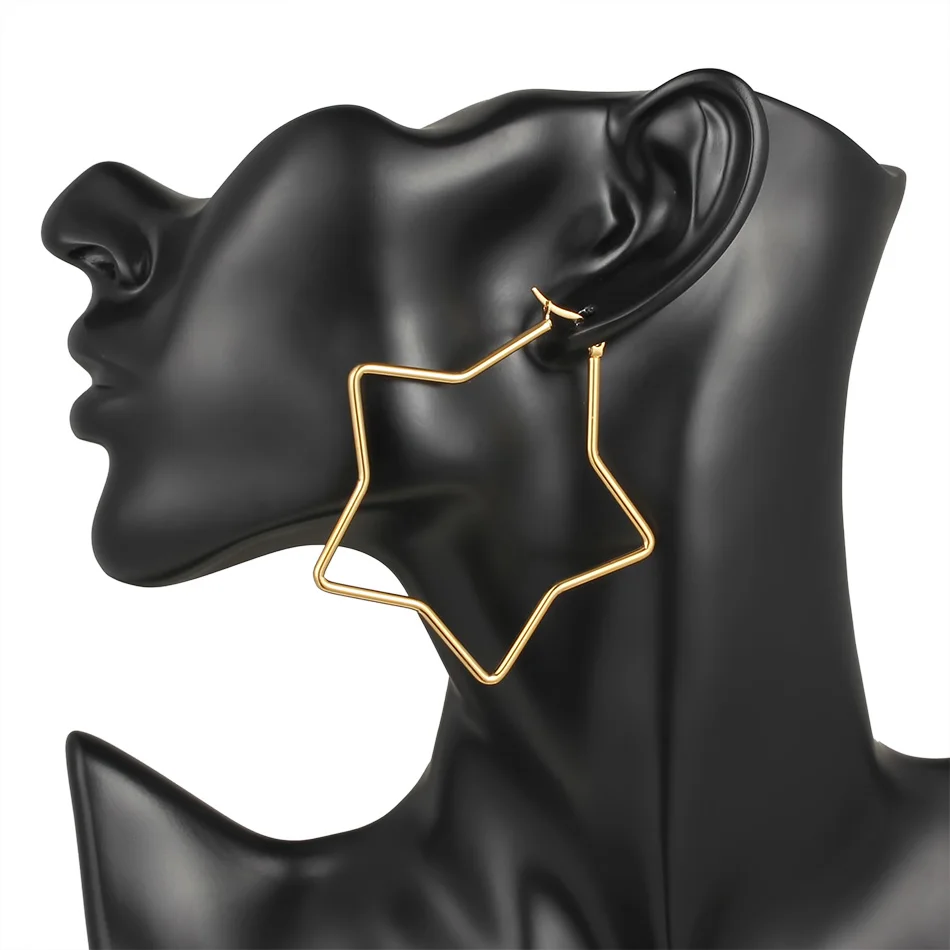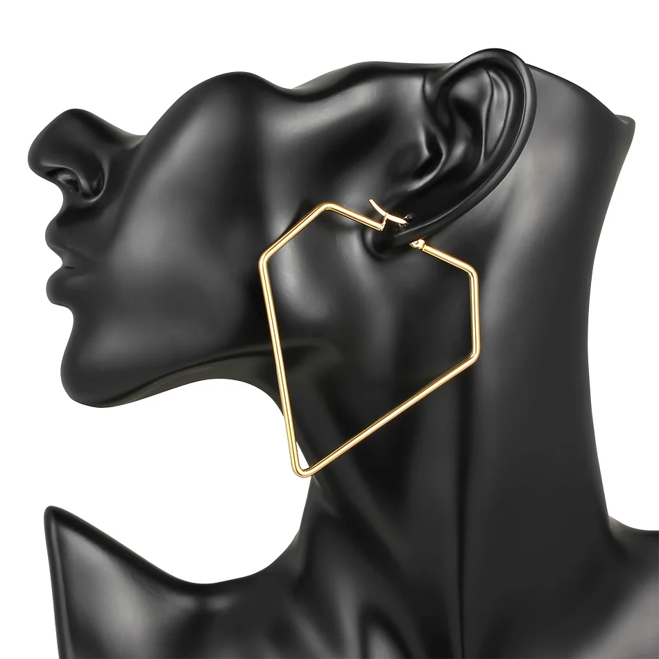 Big Stainless Steel Geometric Hoop Earrings For Women Gold Plated Trendy Female Jewelry Gift