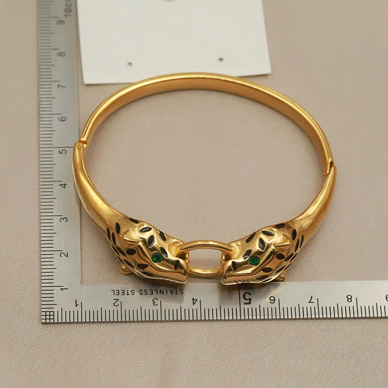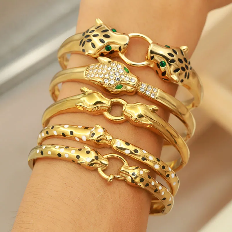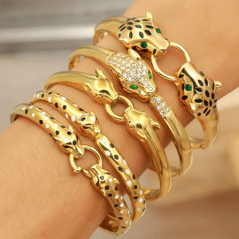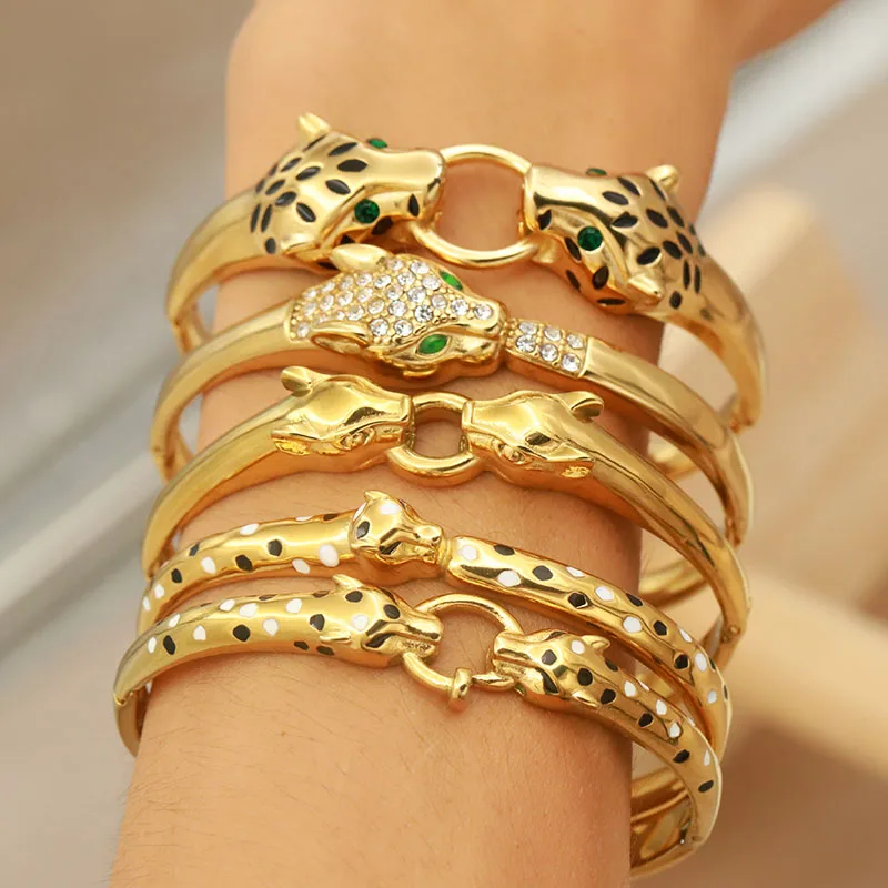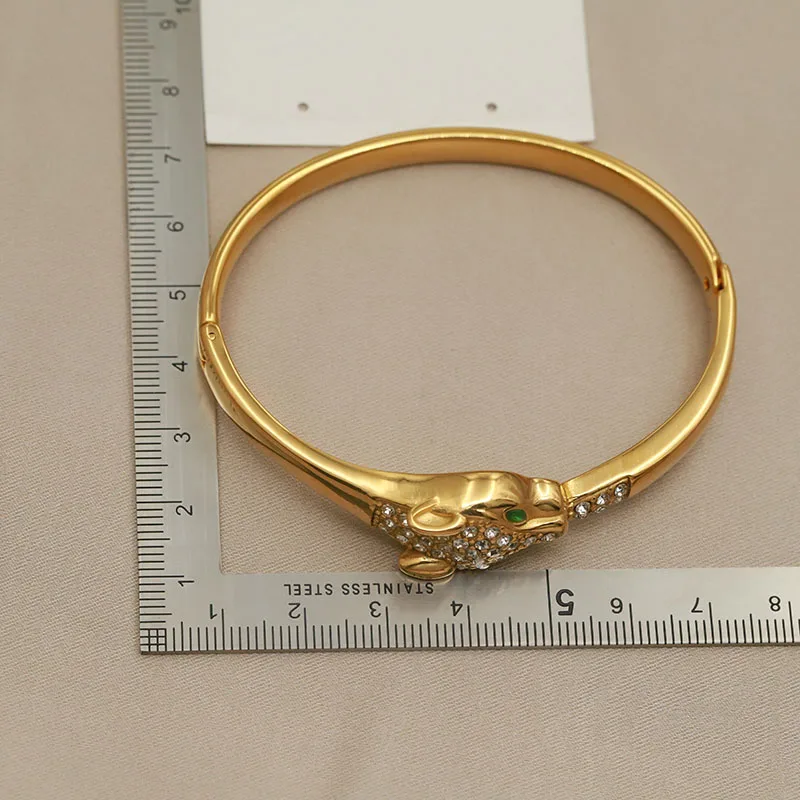 Classic Stainless Steel Crystal Leopard Bangles for Women Vintage Animal Bracelets Rust-proof Wrist Jewelry Gift Party