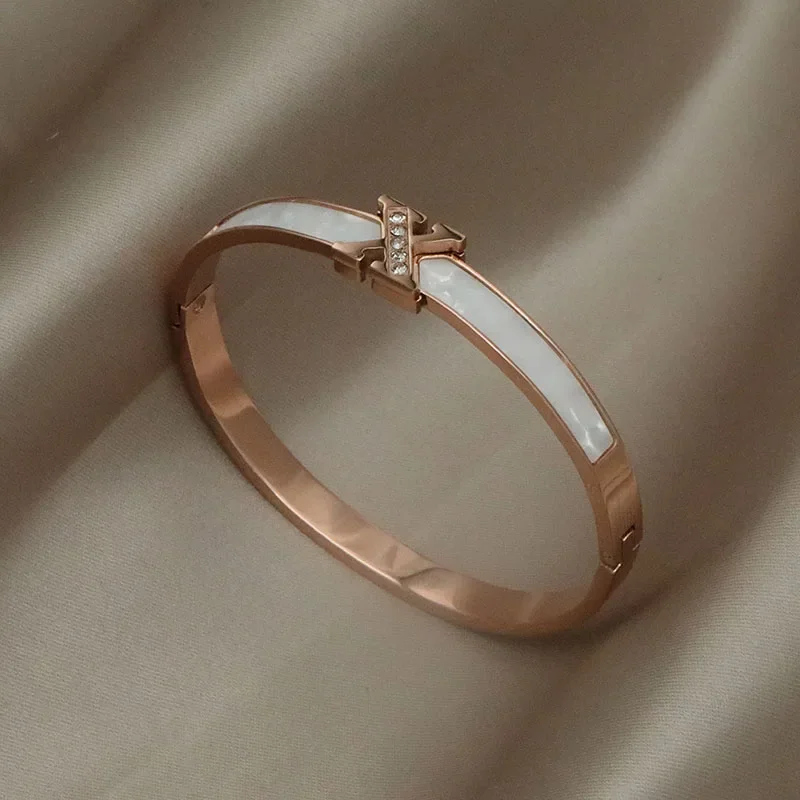 Classic Stainless Steel Letter V Charm Bracelet for Women Metal Flower Bracelets Rust-proof Wrist Jewelry Gift Party