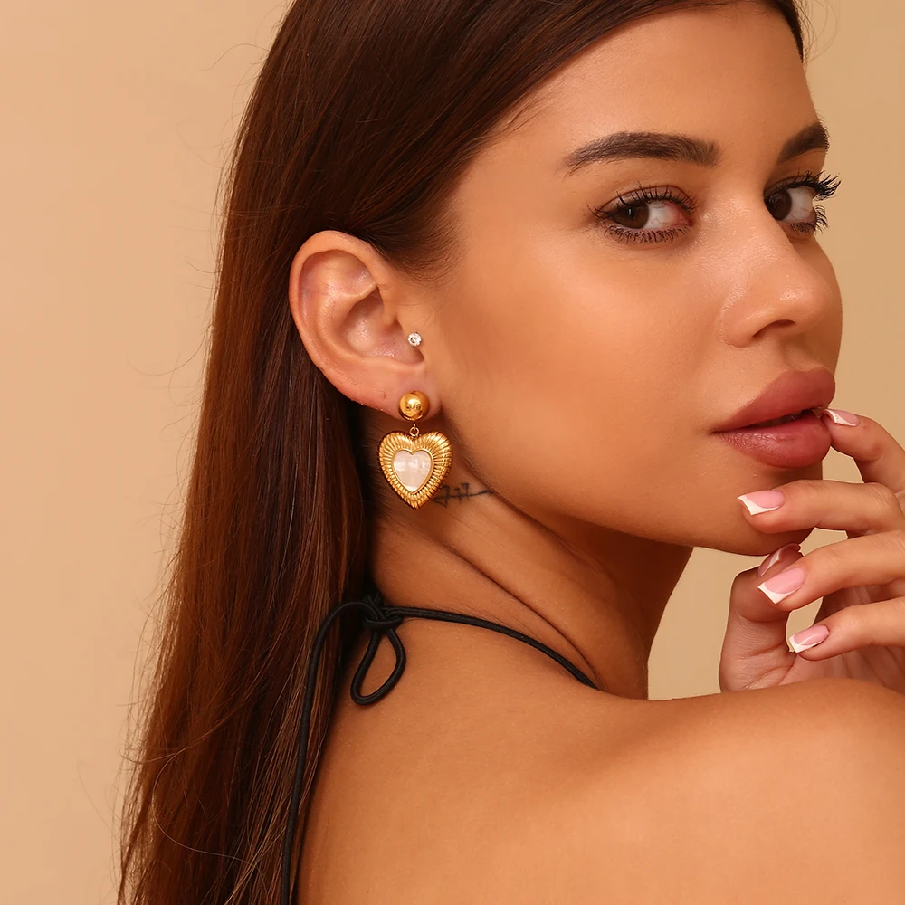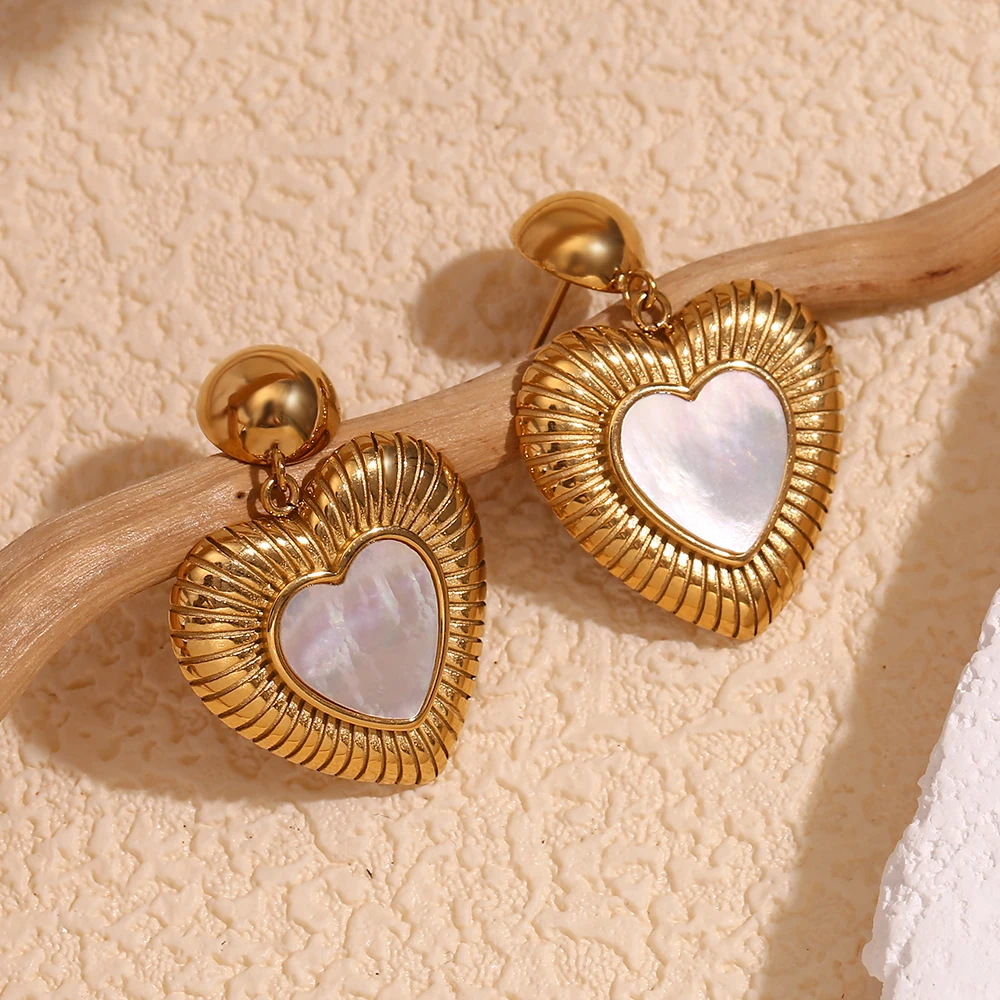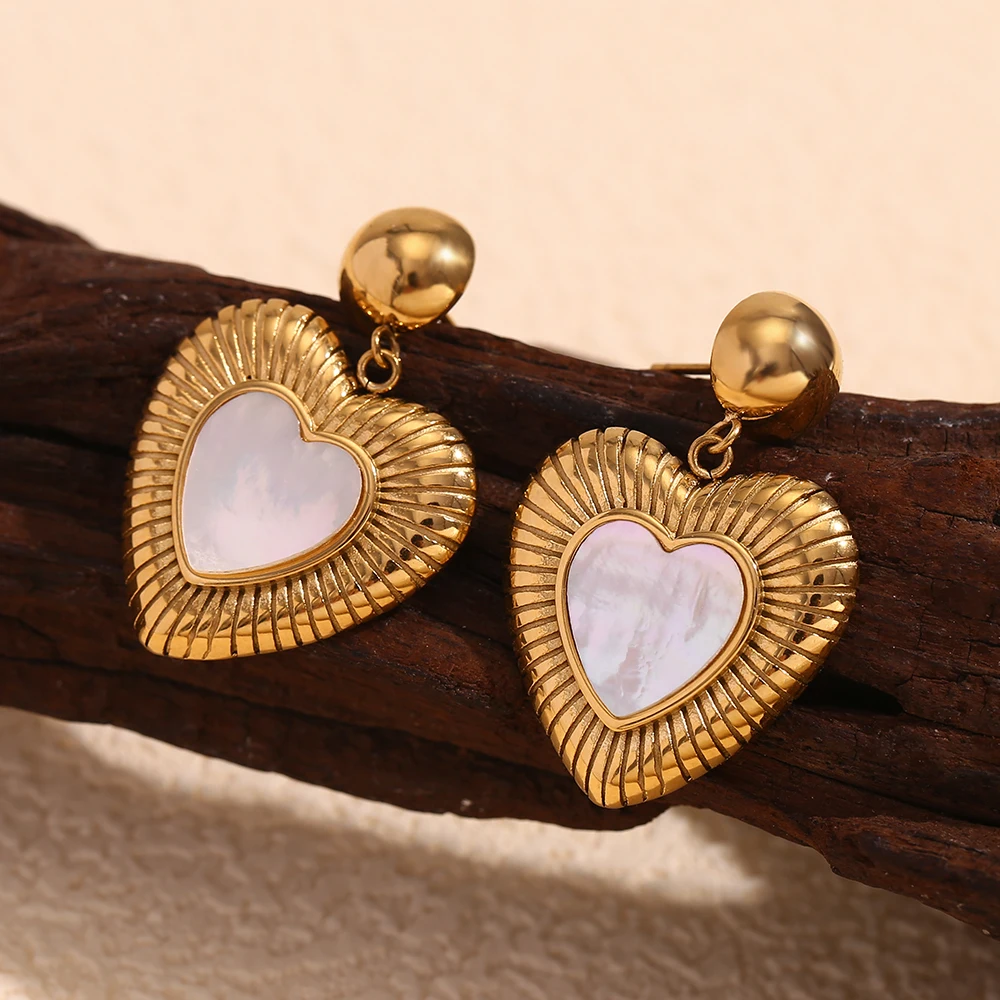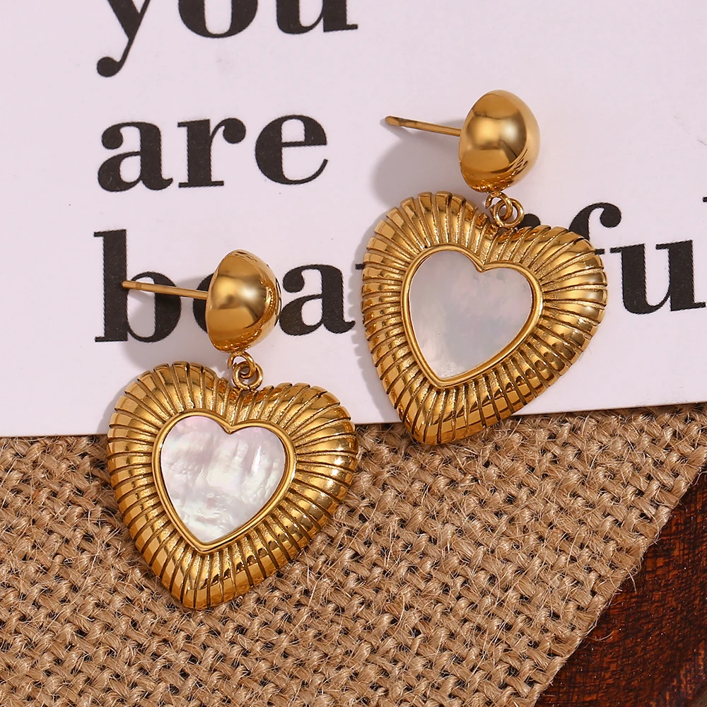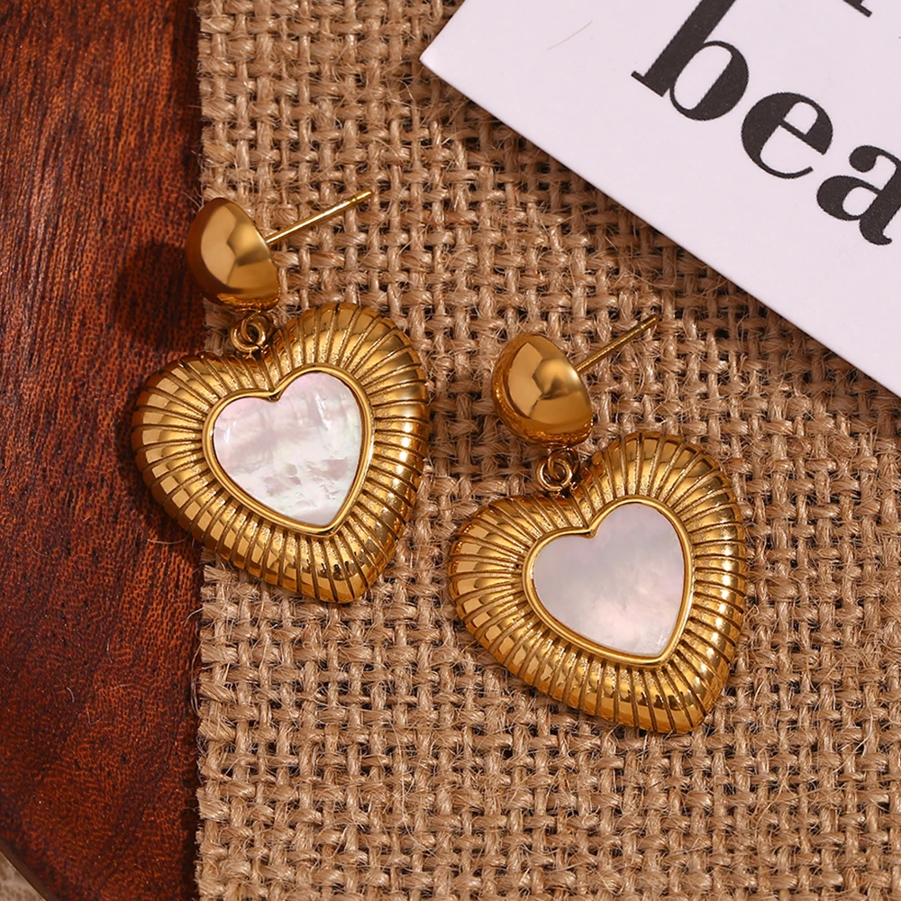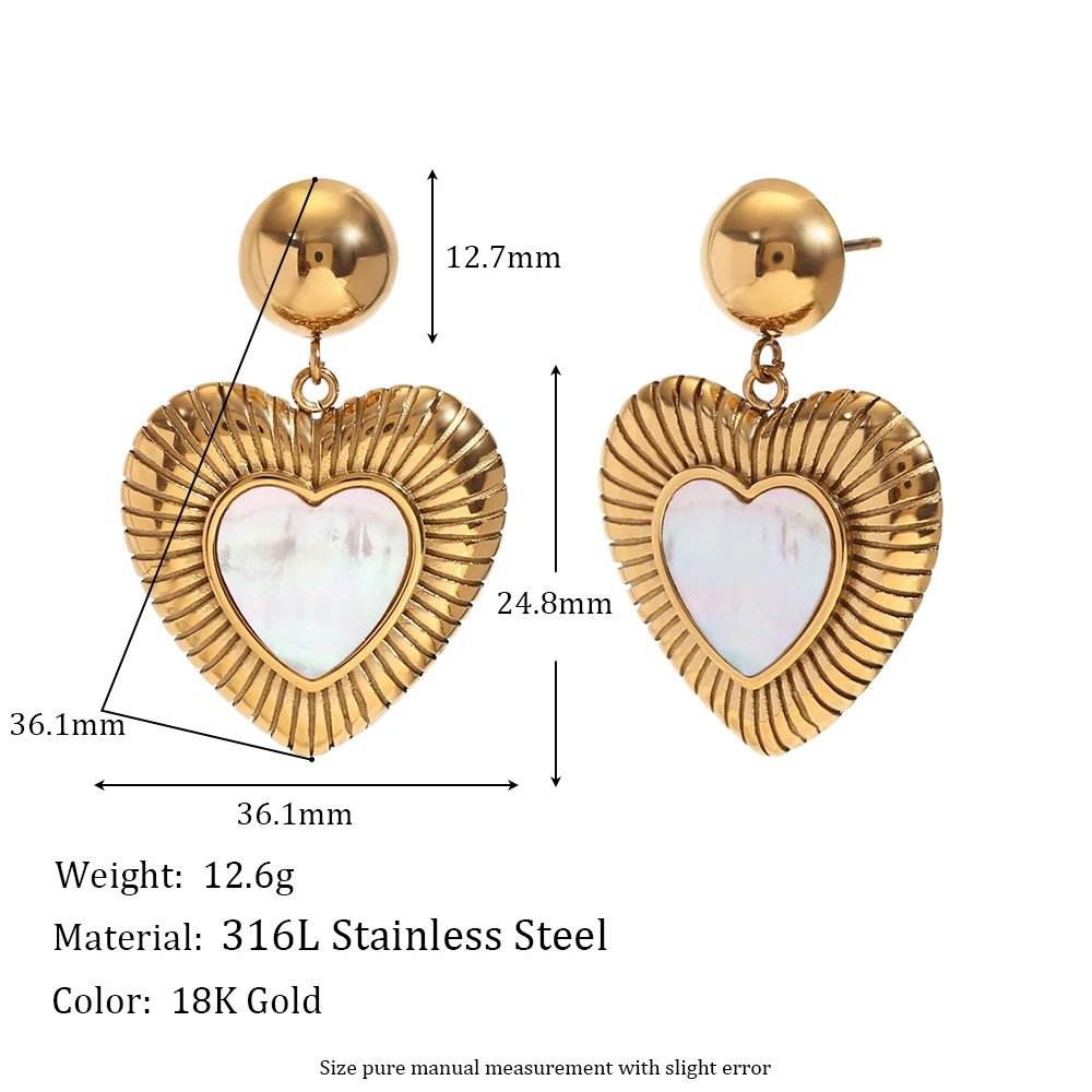 E.B.belle Shell Radiant Heart Pendant Earrings Waterproof 18K Gold Plated Decoration 316L Stainless Steel Jewelry