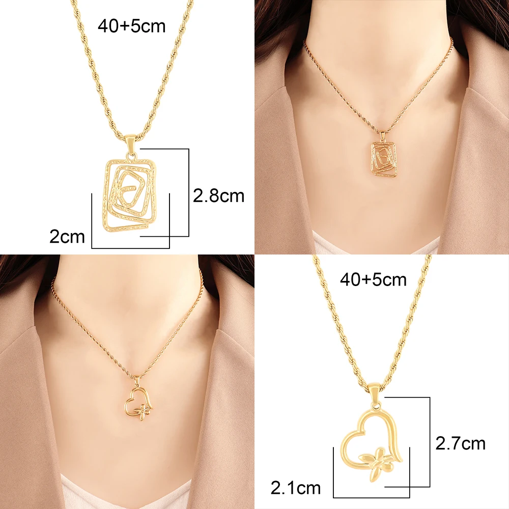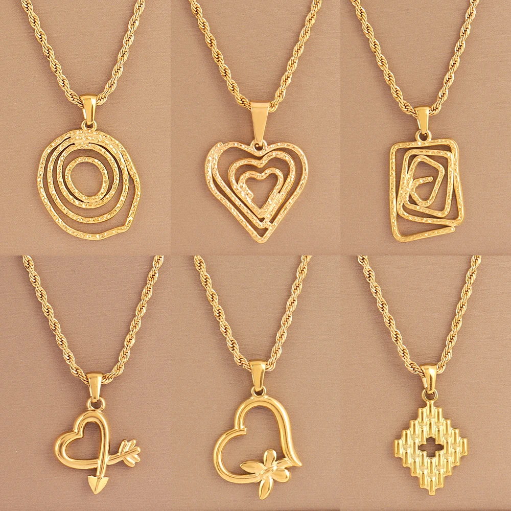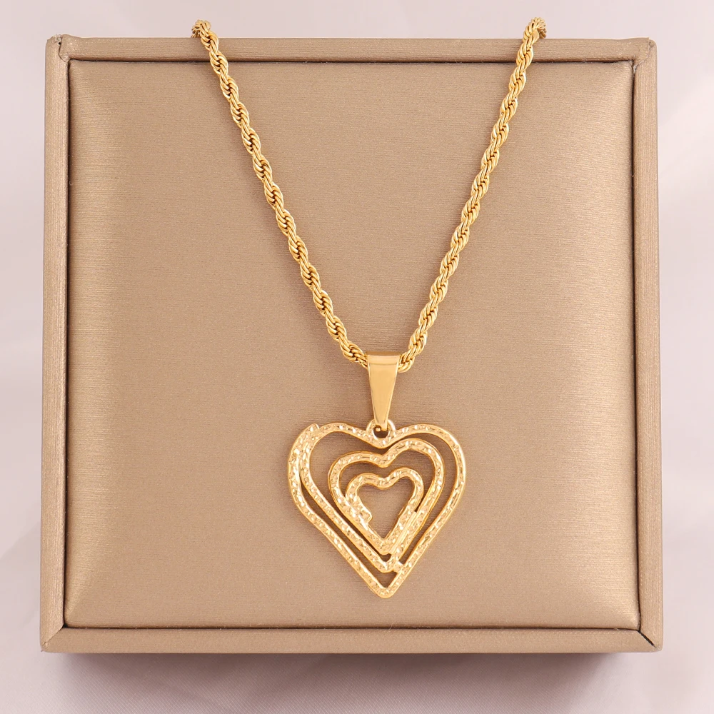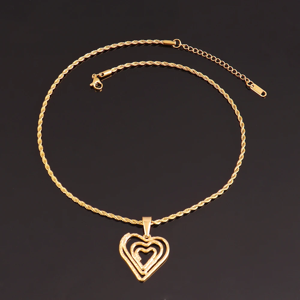 Fashion Heart Pendant Necklace For Women Ladies Girls Stainless Steel Necklaces Twists Chain Jewelry Gifts