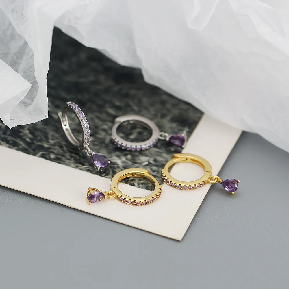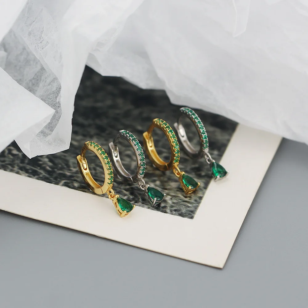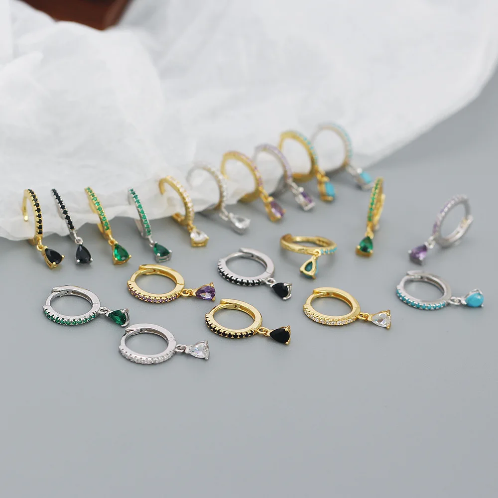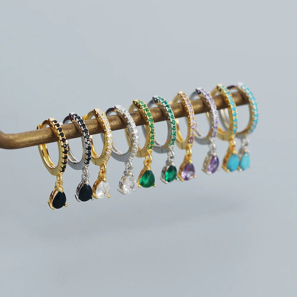 Fashion Multicolor Zircon Water Drop Small Hoop Earrings for Women Stainless Steel Pendant Piercing Earrings Set 2022 Jewelry