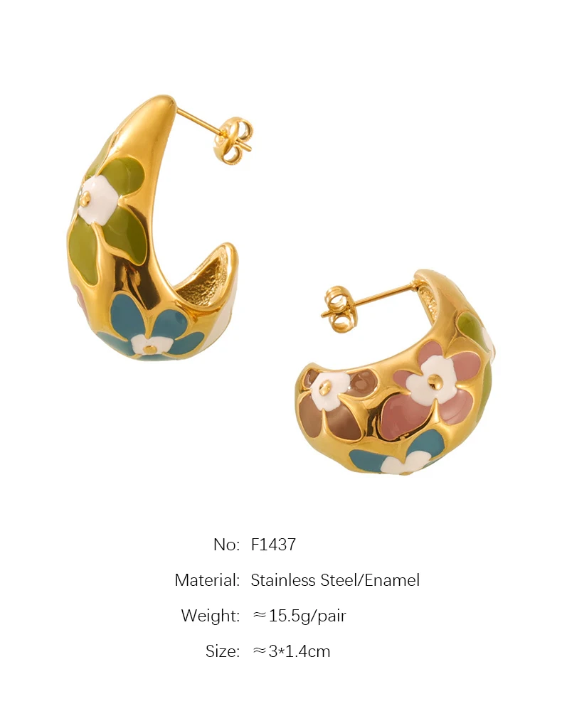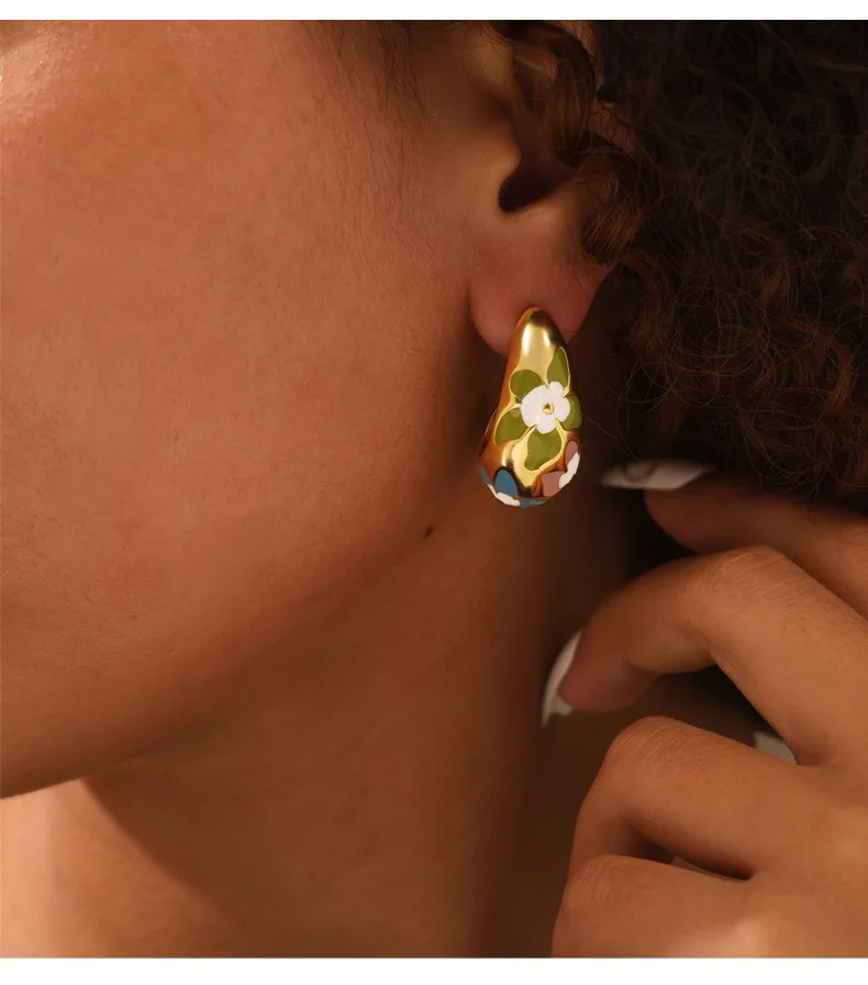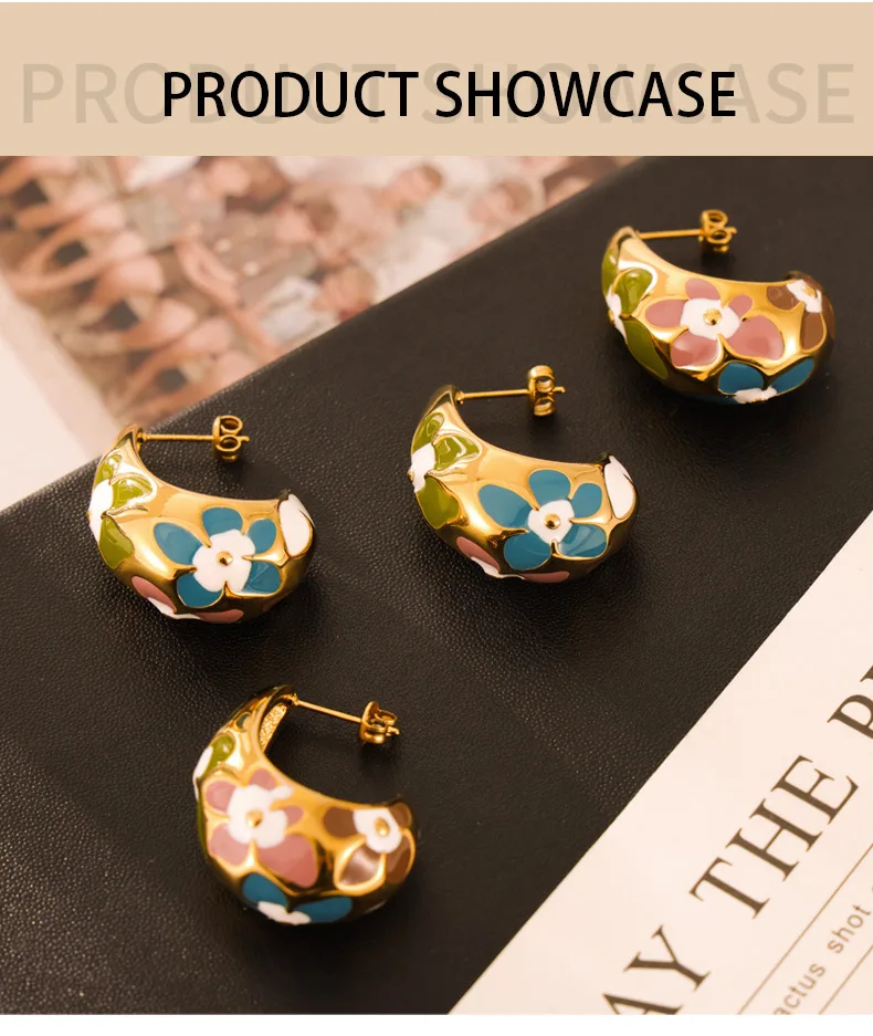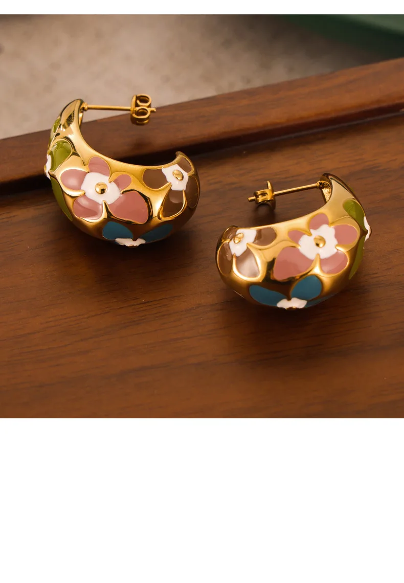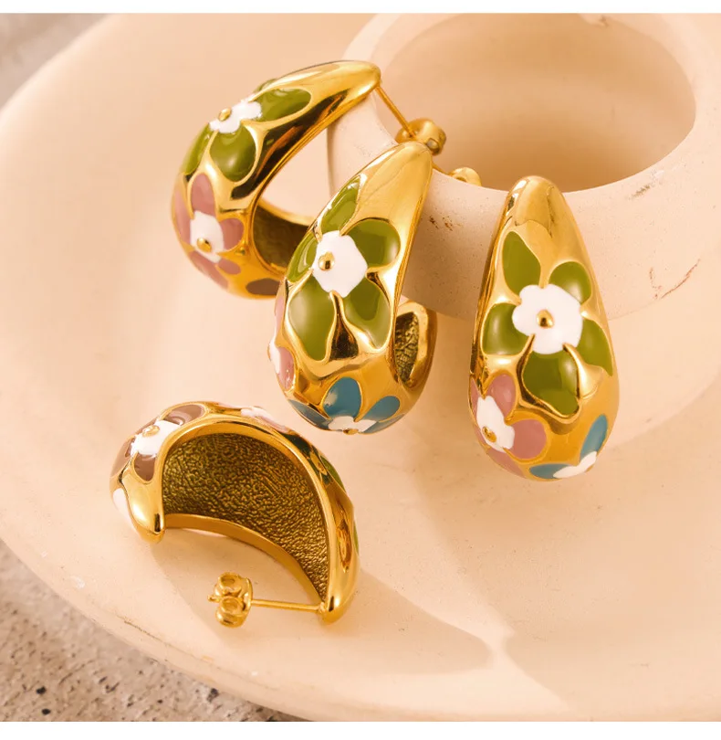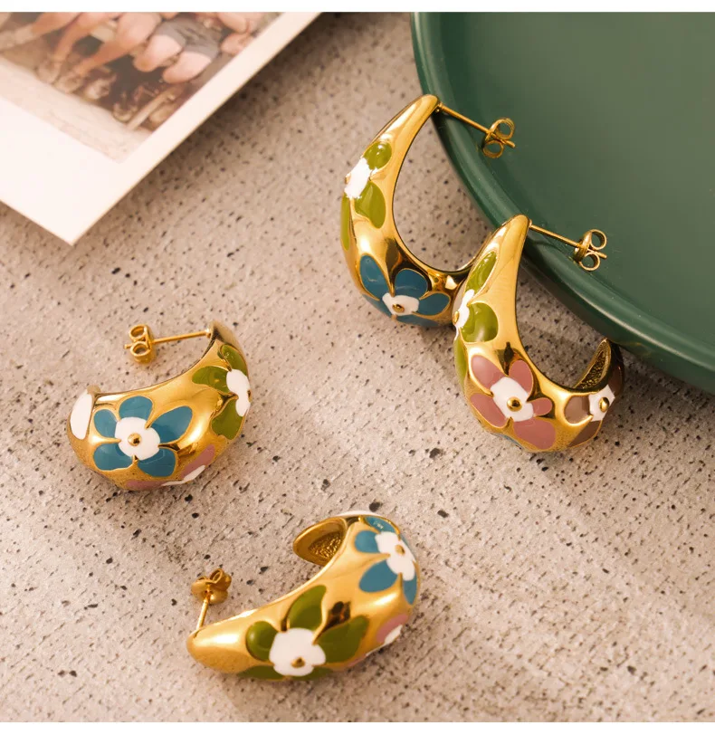 Flower Enamel Crescent Stainless Steel Earrings For Women Gold Silver Color Waterproof Women's Stud Earring Girls Jewelry Gifts
