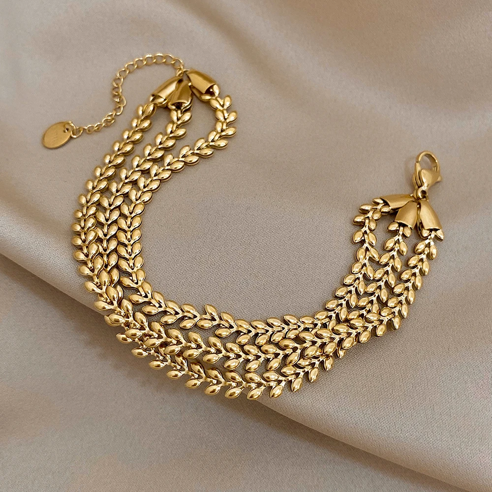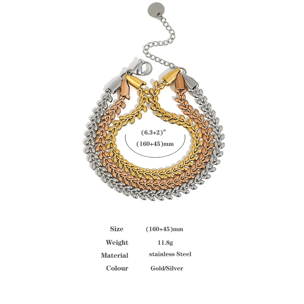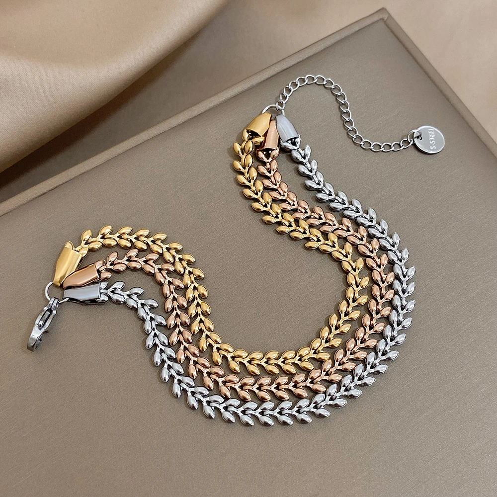 Trendy Tricolor Stainless Steel Layered Leaf Chain Bracelets for Women 18K Gold Plated Metal Bracelet Waterproof Jewelry 2023