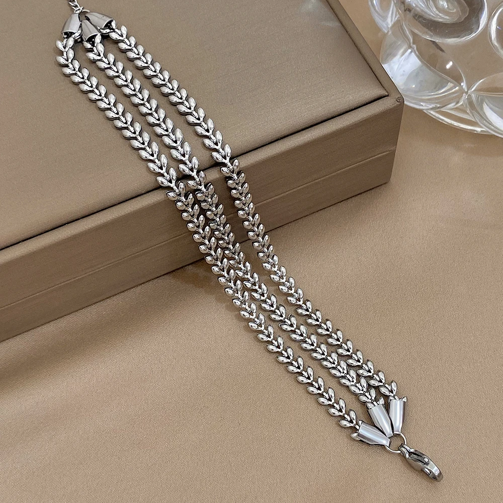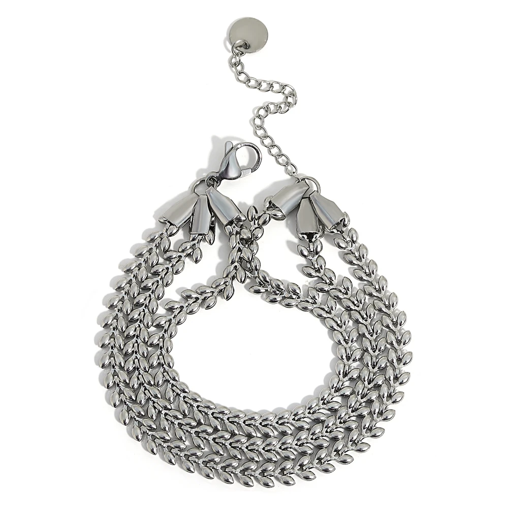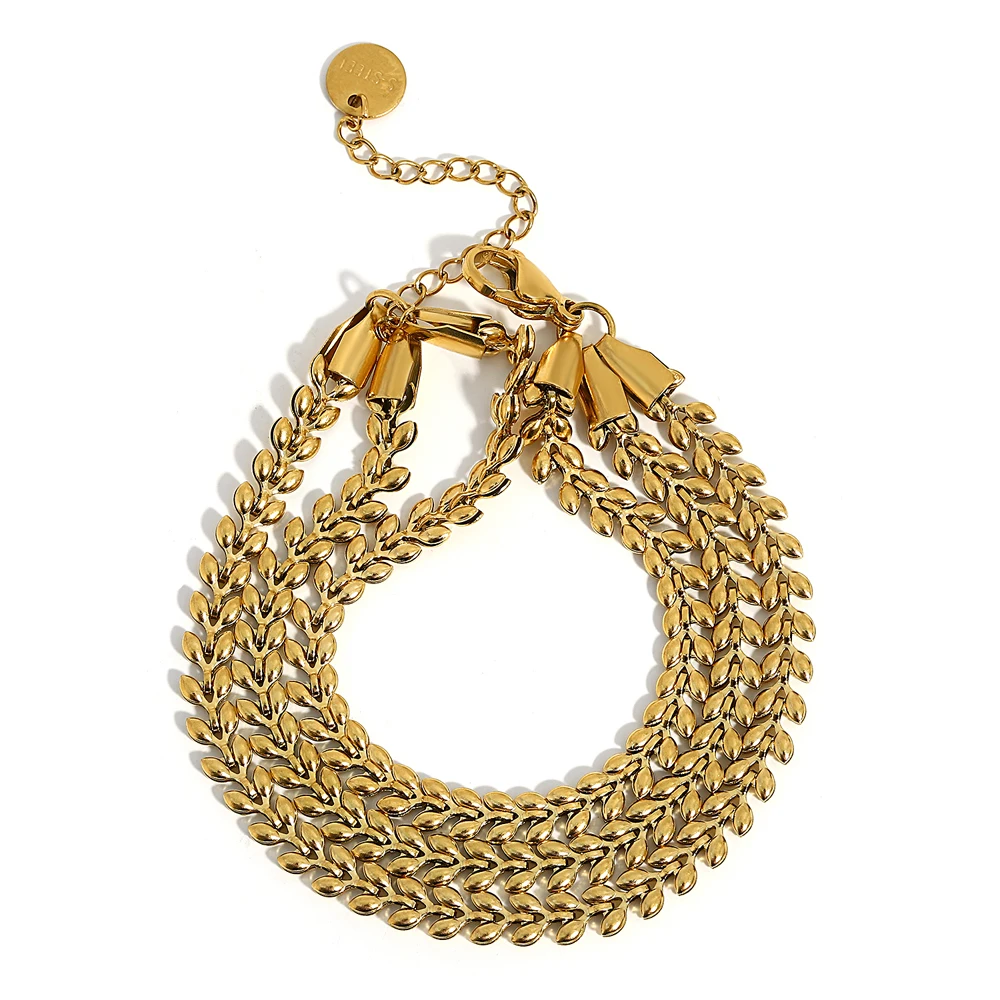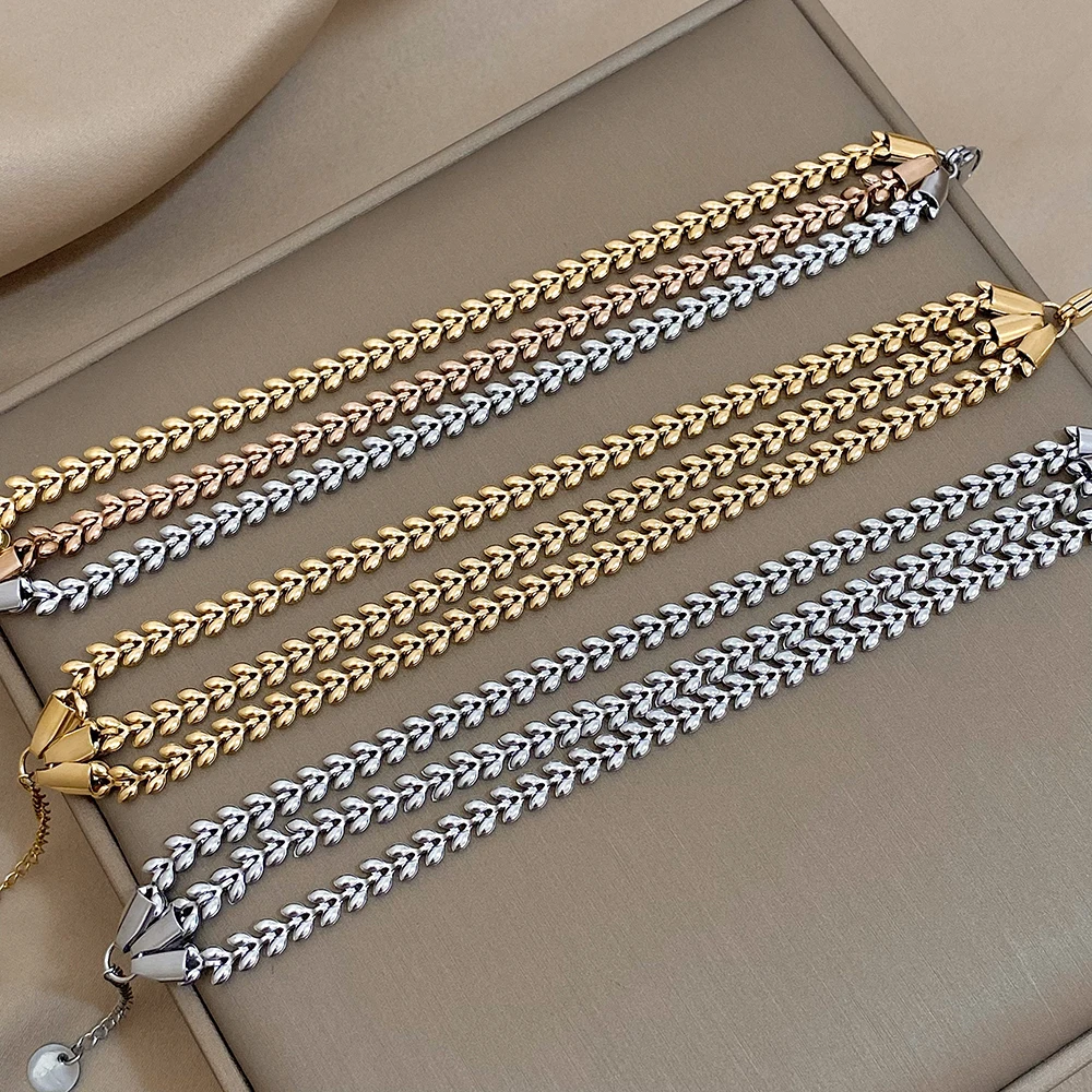 Trendy Tricolor Stainless Steel Layered Leaf Chain Bracelets for Women 18K Gold Plated Metal Bracelet Waterproof Jewelry 2023