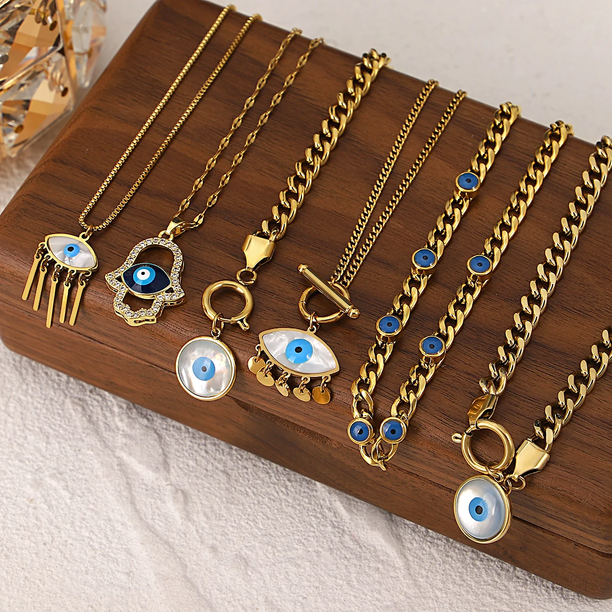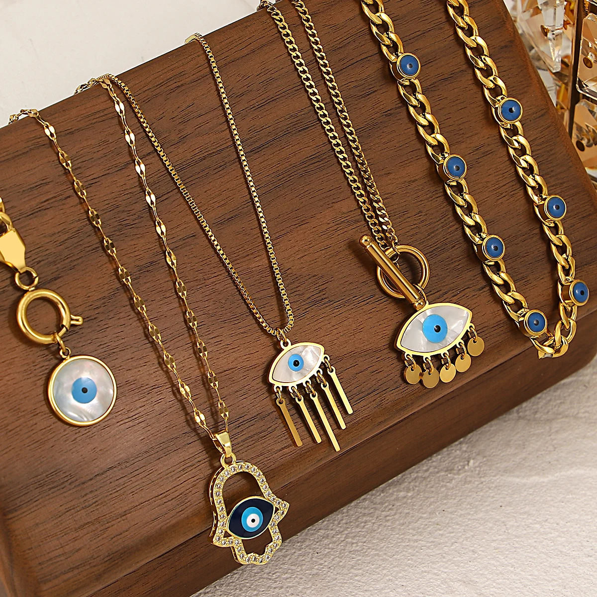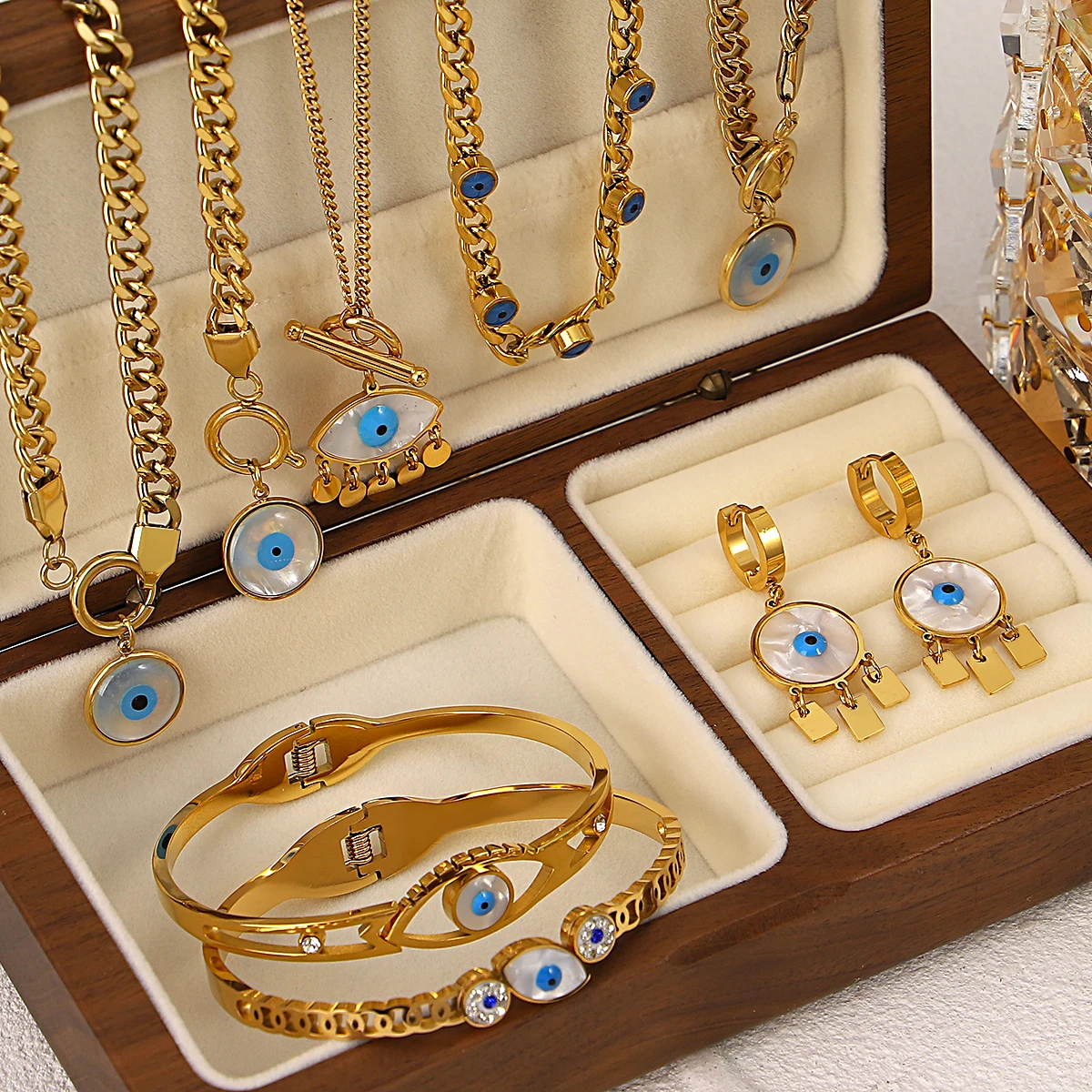 Greatera Turkish Evil Eye Stainless Steel Bangles Bracelets for Women Ethnic 18K Gold Plated Metal Charm Bracelet Jewelry