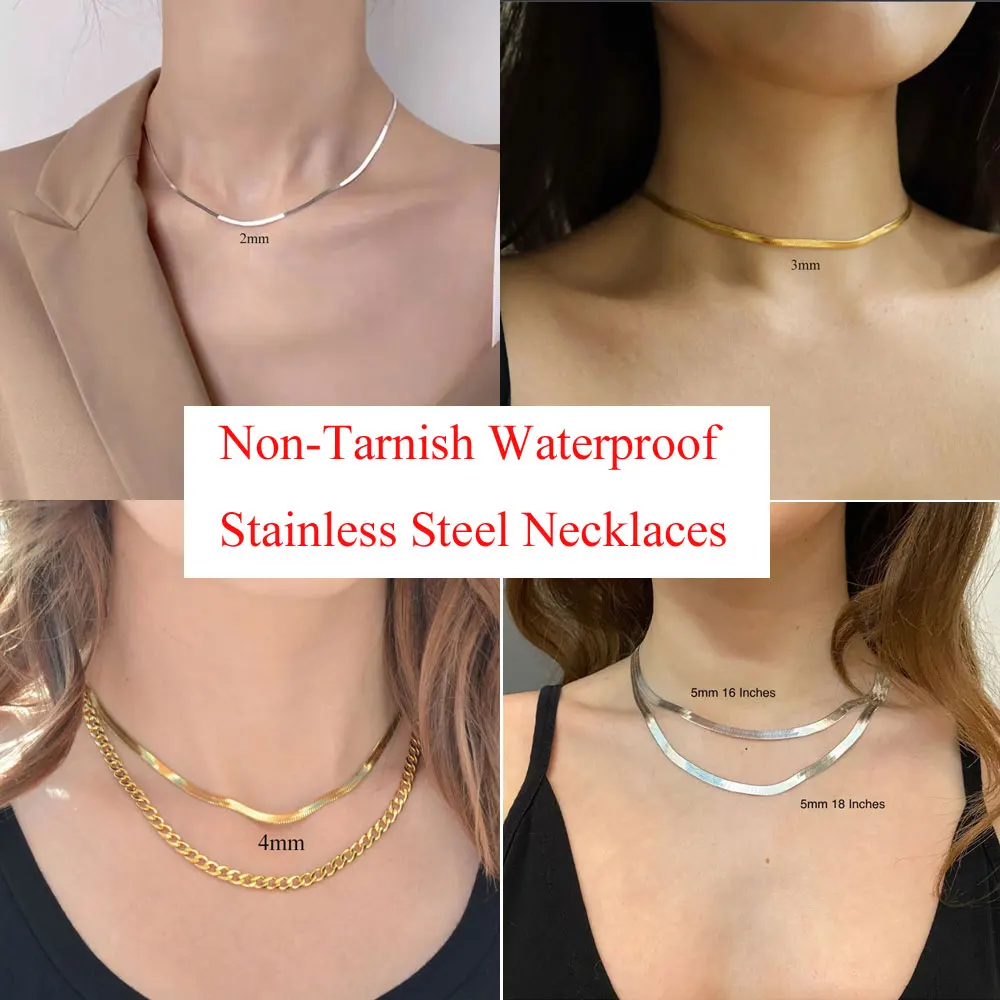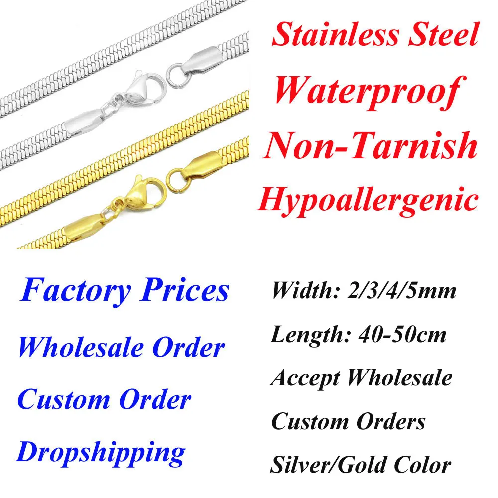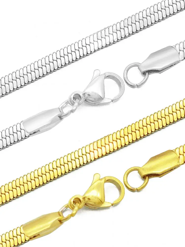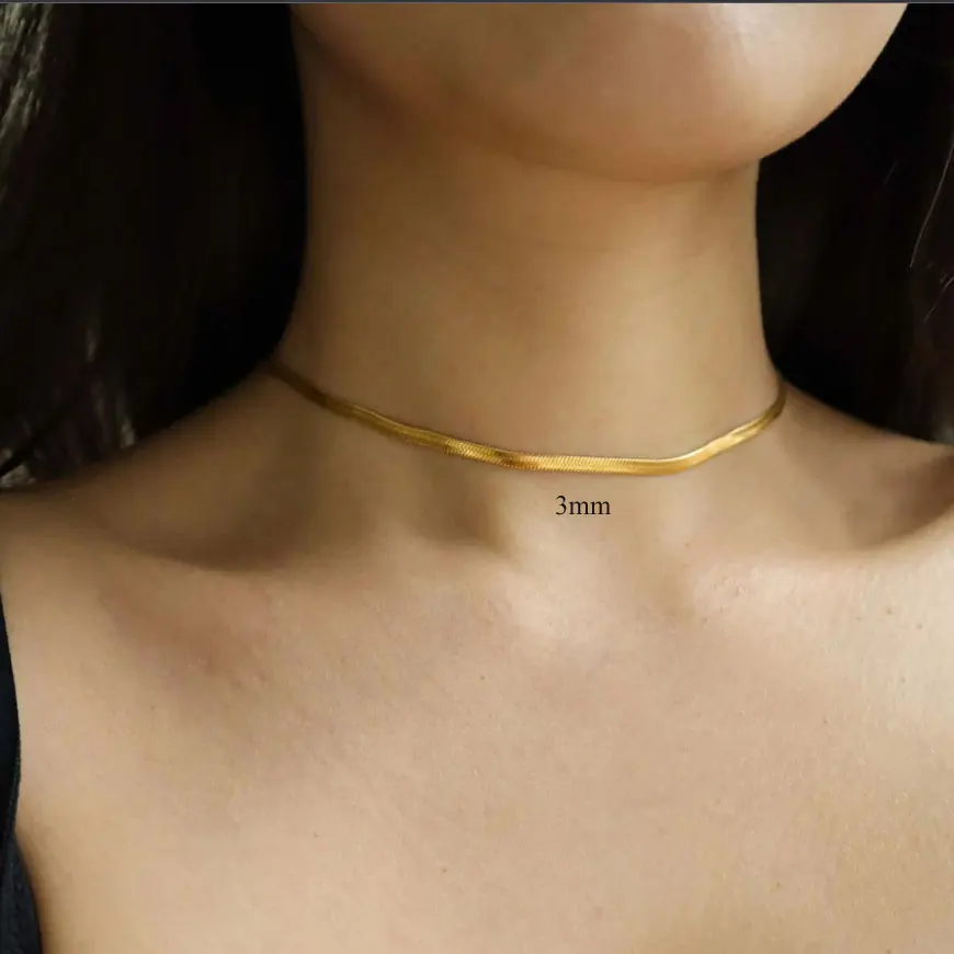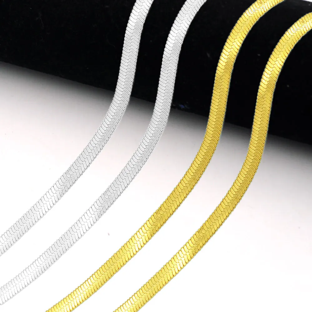 Hot Fashion Flat Snake Choker 316 Stainless Steel Women Herringbone Chain Necklace Wholesale Non-Tarnish Layering Jewelry