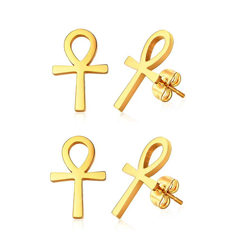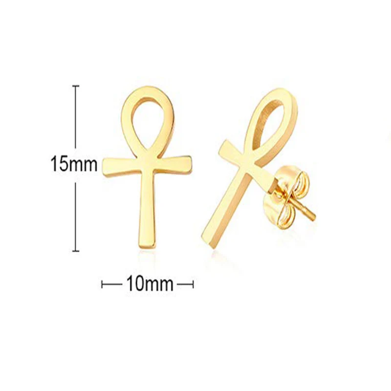 Houwu Stainless Steel Ankh Stud Earrings for Women Girls Africa Egypt Nile Key Traditional Ancient Egypt Ethnic