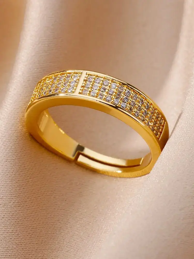Inlaid Full Zircon Round Rings For Women Men Adjustable Gold Color Stainless Steel Ring Wedding Couple Jewelry Gift Bague