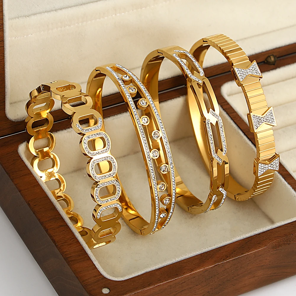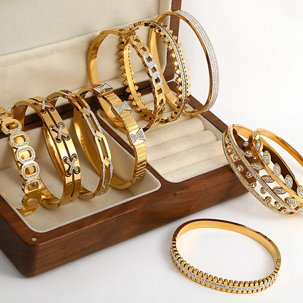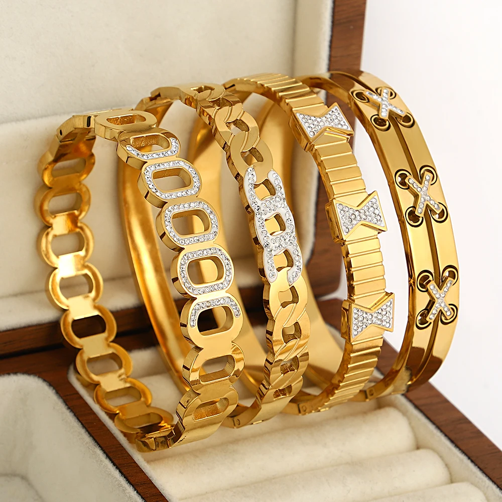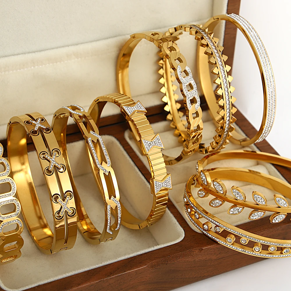 Luxury Brand Designer Rhinestone Cross Chain Bracelets Bangles For Women Greece Leaf Chaplet Stainless Steel Bracelet Jewelry