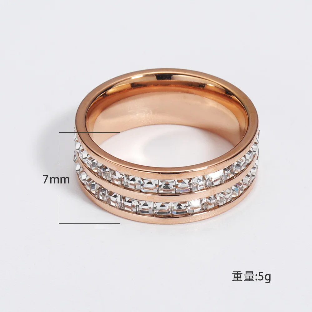 Luxury Rose Gold Color Double Row Square Zircon Stainless Steel Ring for Women Romantic Engageme Wedding Party Jewelry Female