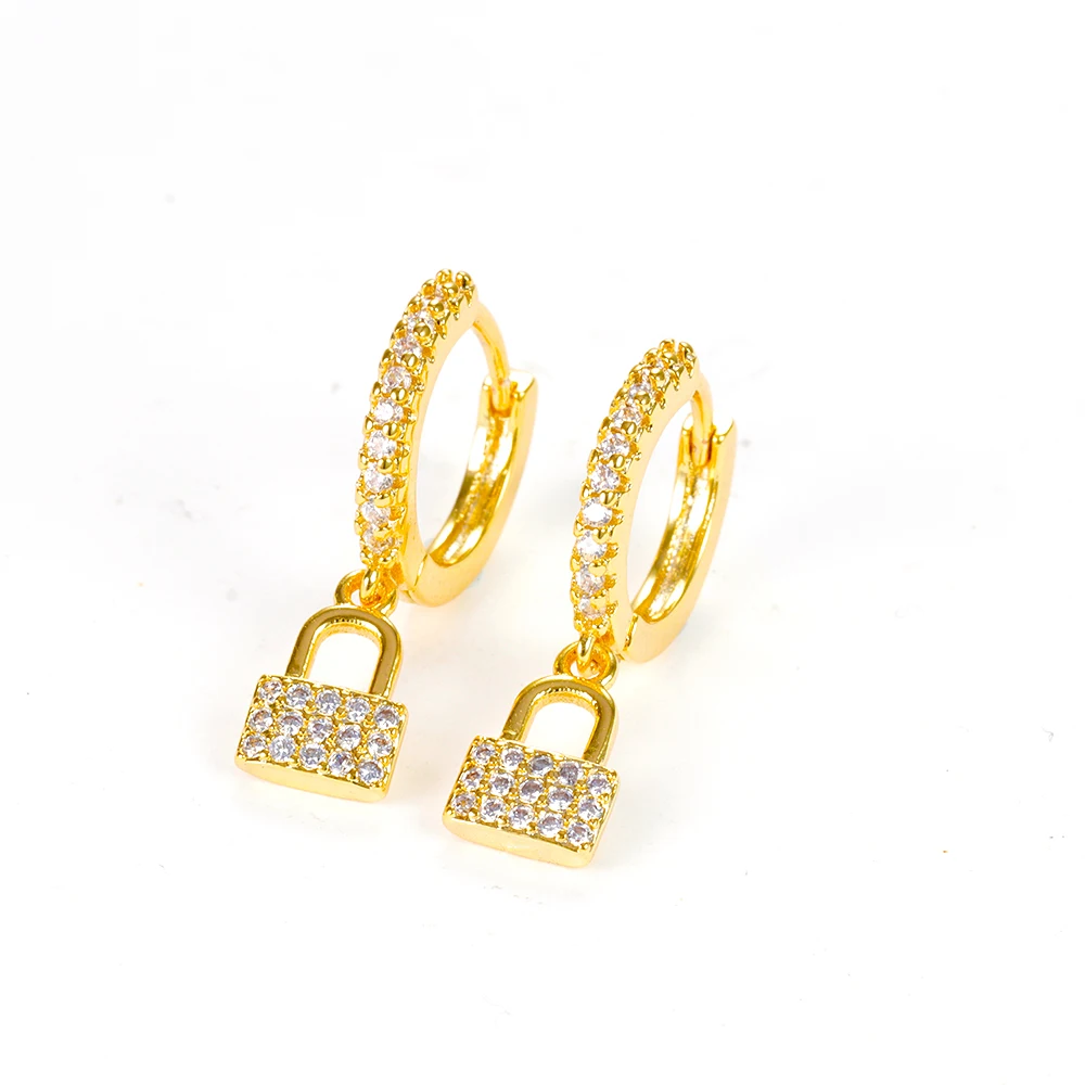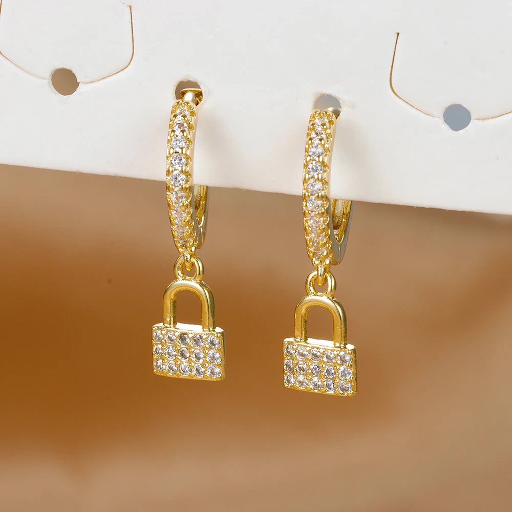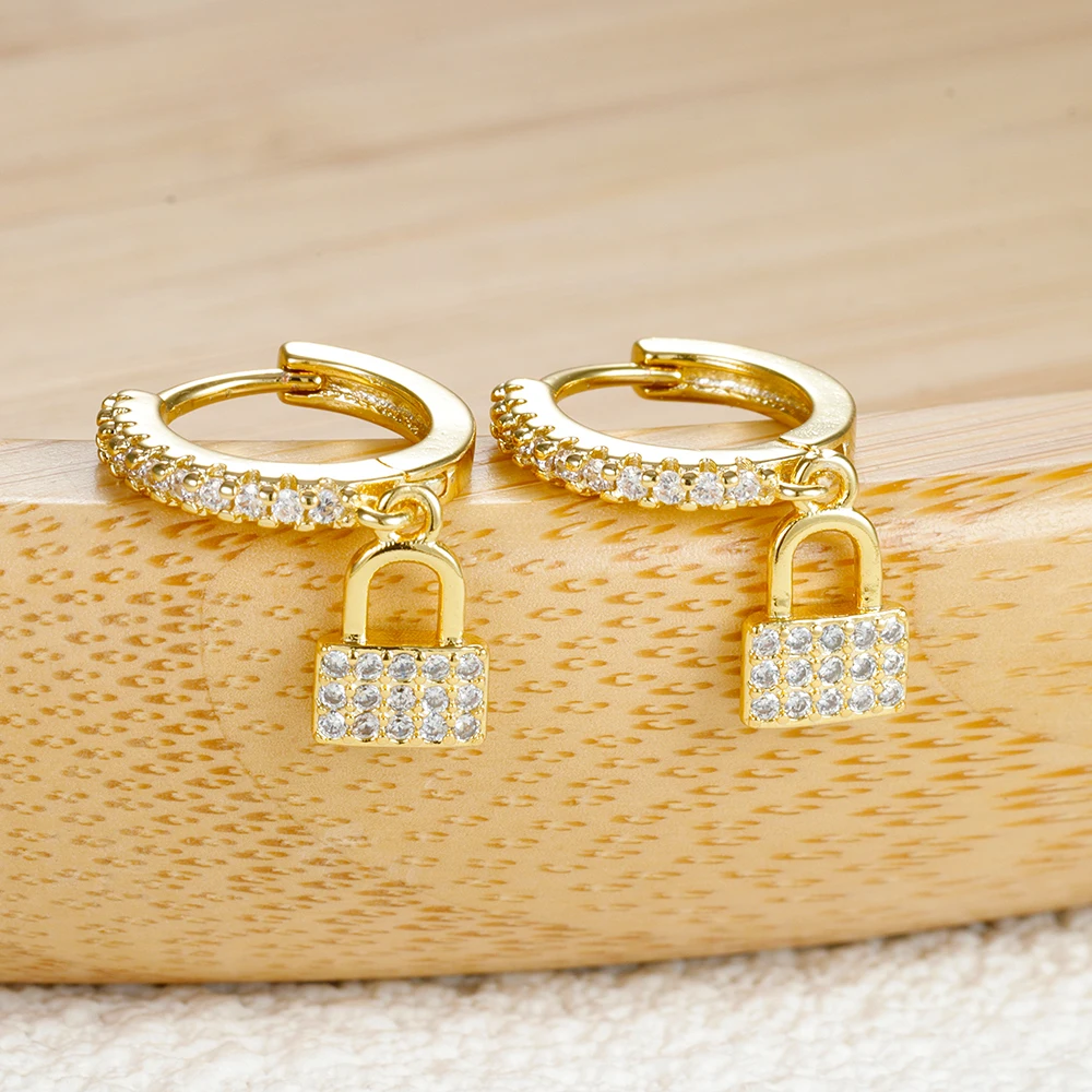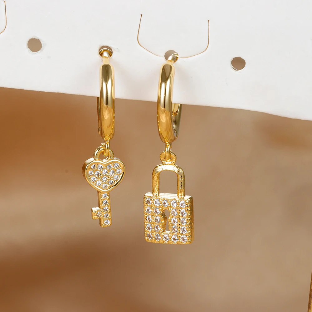 Luxury Zircon Key Lock Asymmetric Hoop Earrings for Women Men Gold Plated Stainless Steel Couple Earrings Wedding Jewerly aretes