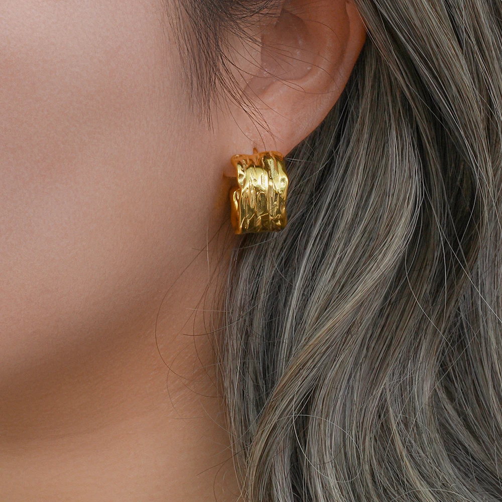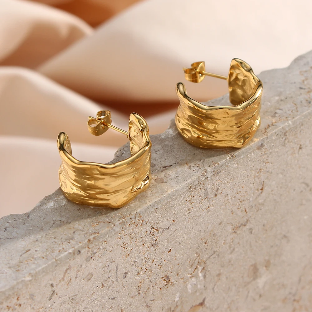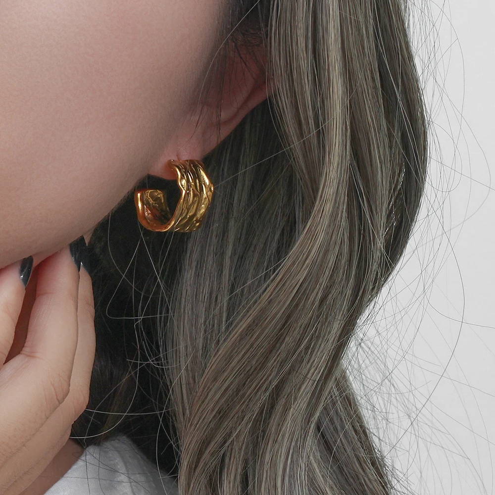 Minimalist Wide Stainless Steel 18K Gold Plated CC Earrings for Women Waterproof Hypoallergenic Piercing Earrings Jewelry