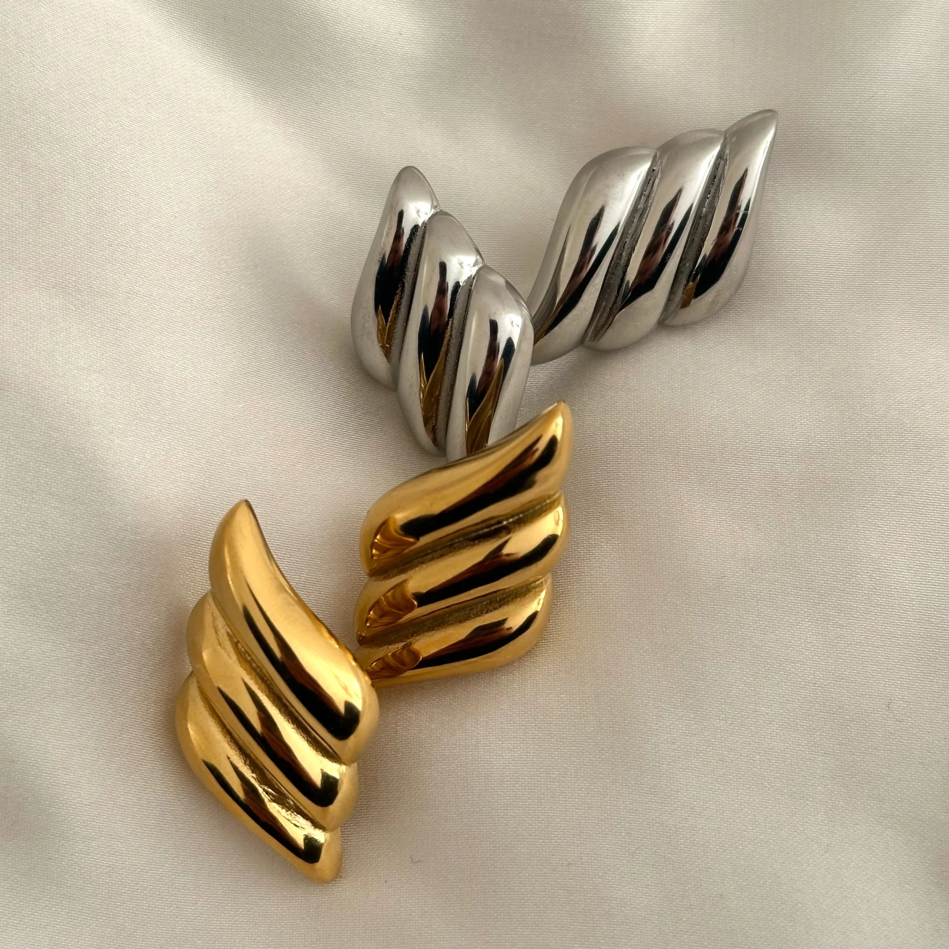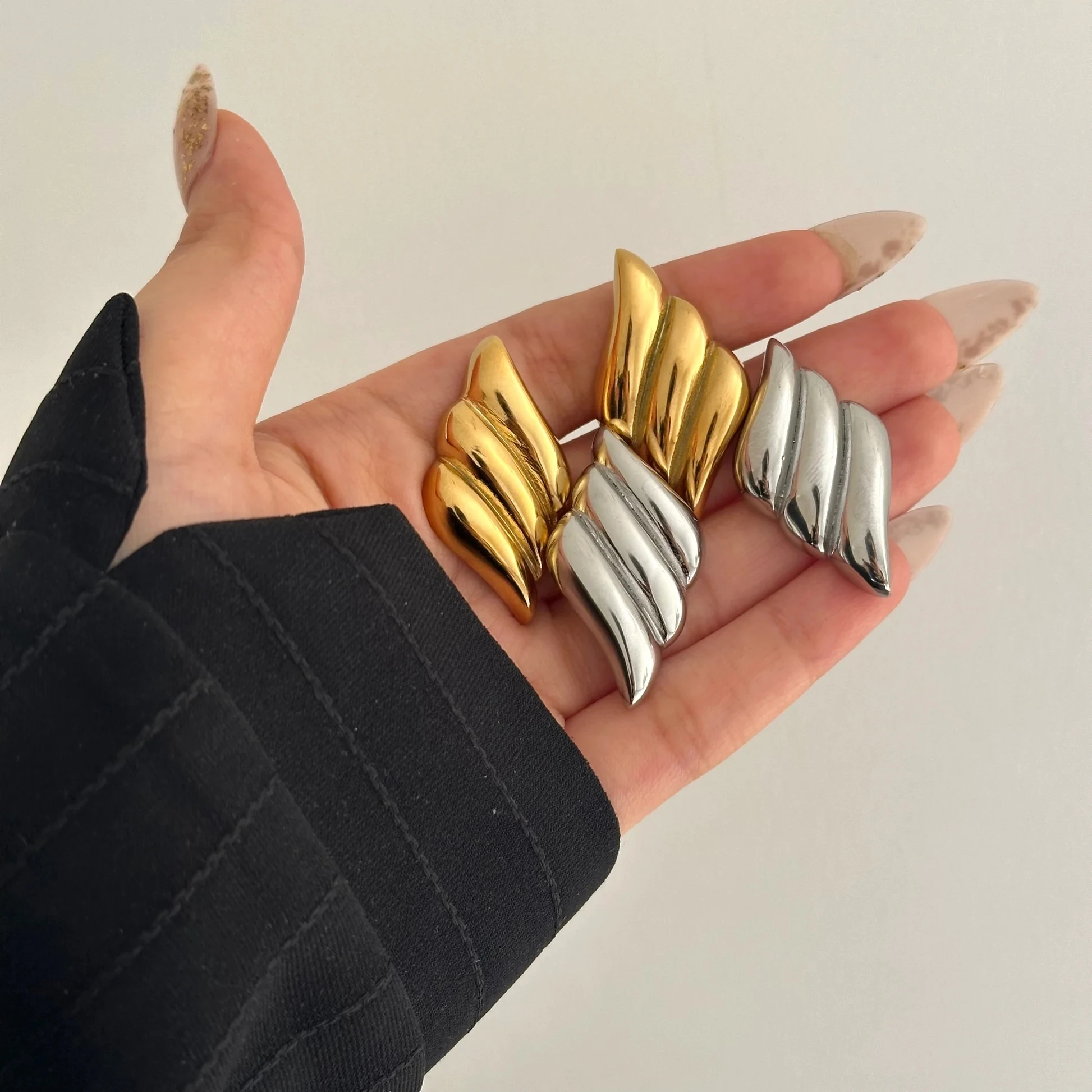 Miranda Waterproof Smooth Stainless Steel Geometric Three-tiered Wings Earrings for Women Statement Gold Color Women Jewelry