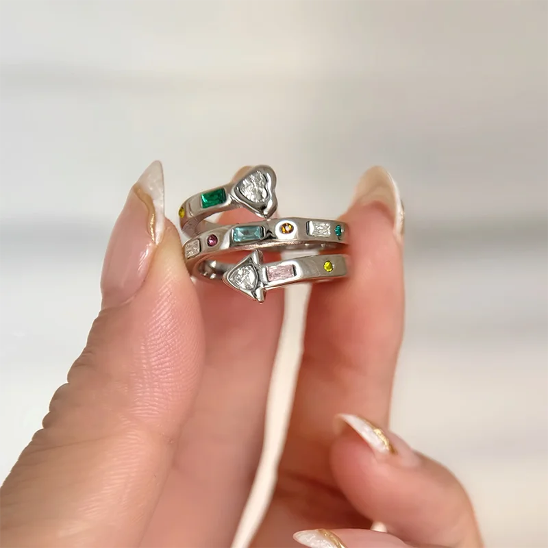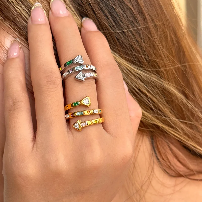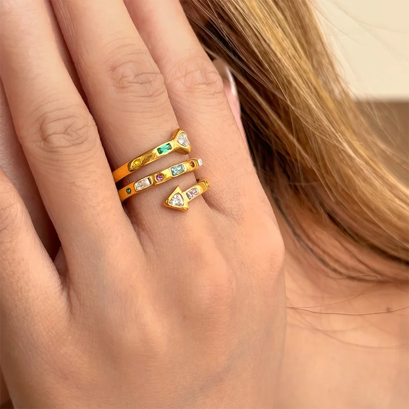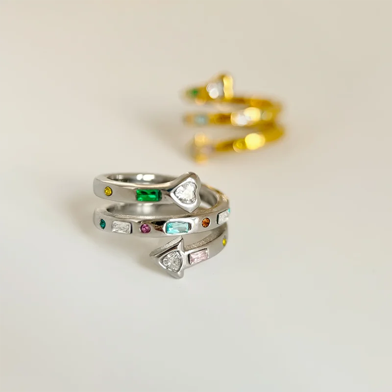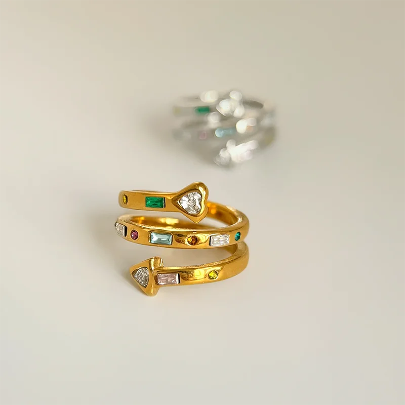 Multicolored stone spiral rings stainless steel rings for women statement stainless steel jewelry new in 2024 waterproof