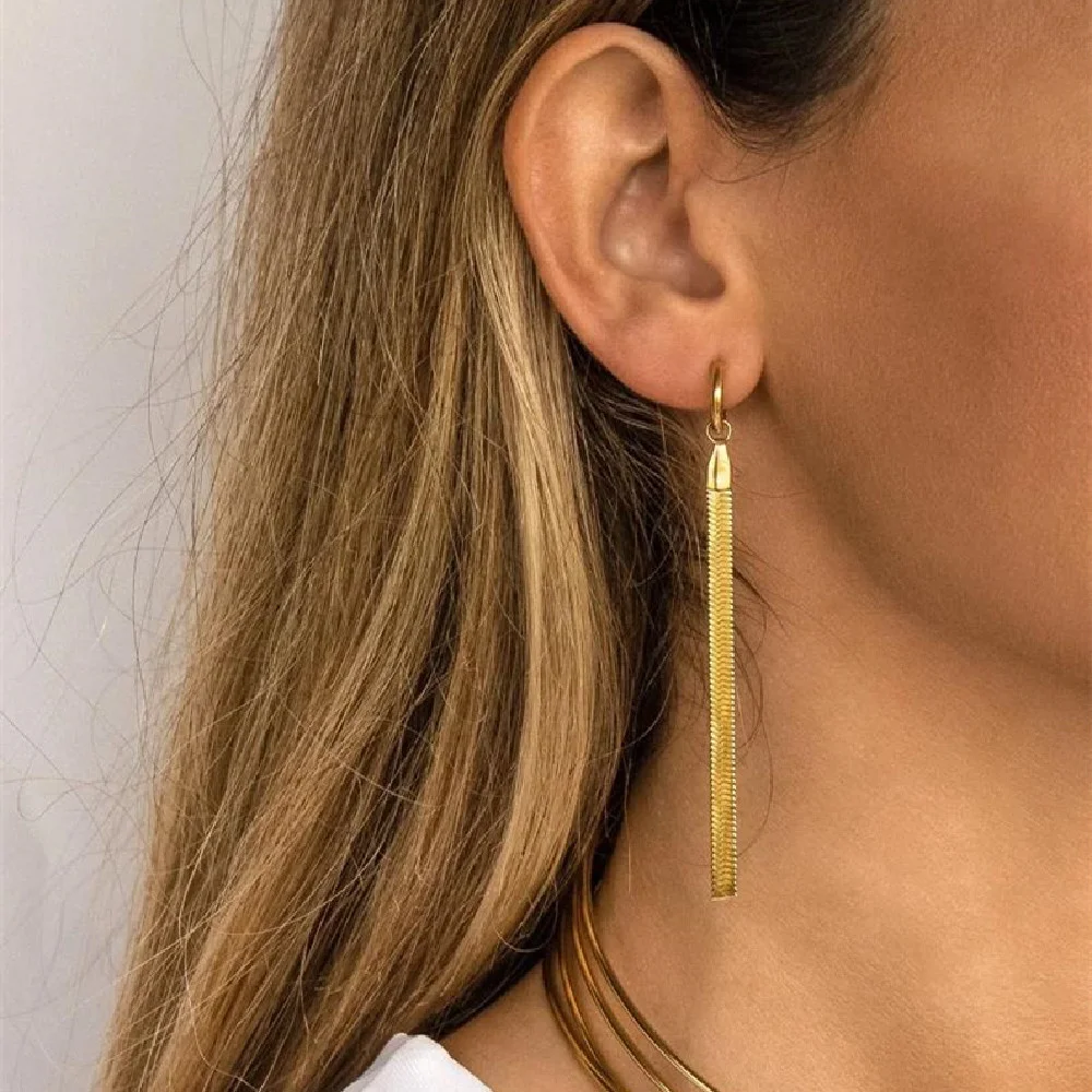 4. Product Name : New Fashion Stainless Steel Snake Chain Drop Earring for Women Classic Gold Color Snake Hoop Earring Jewelry Christmas Gift