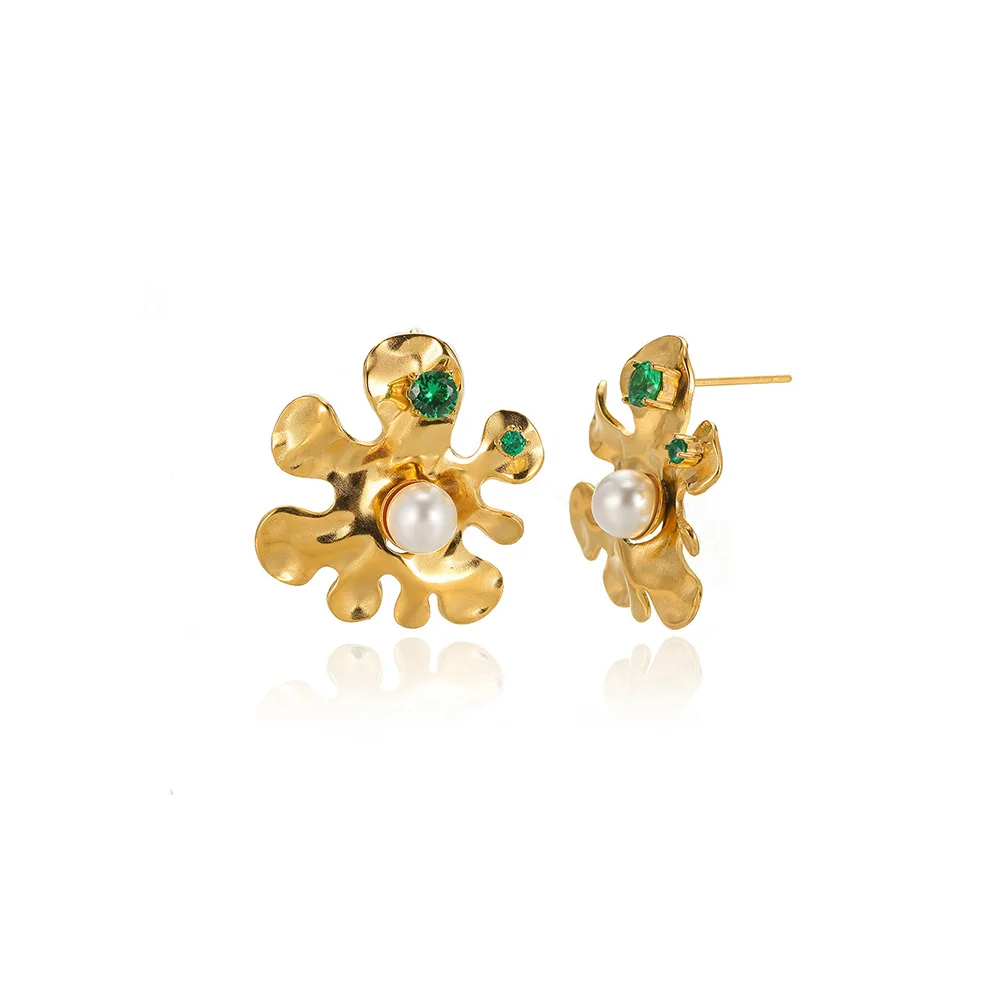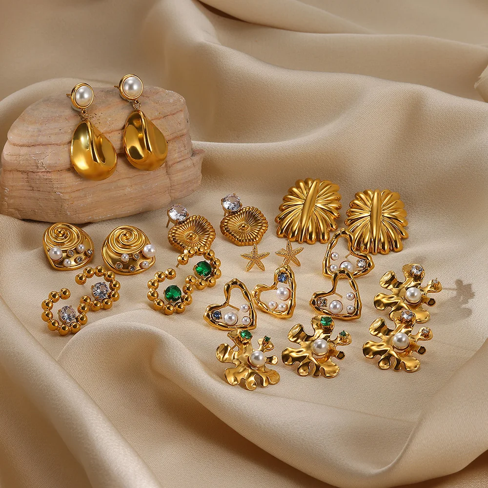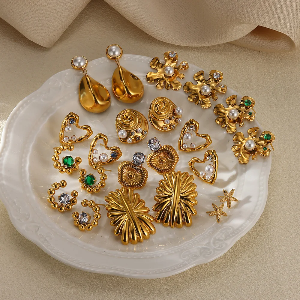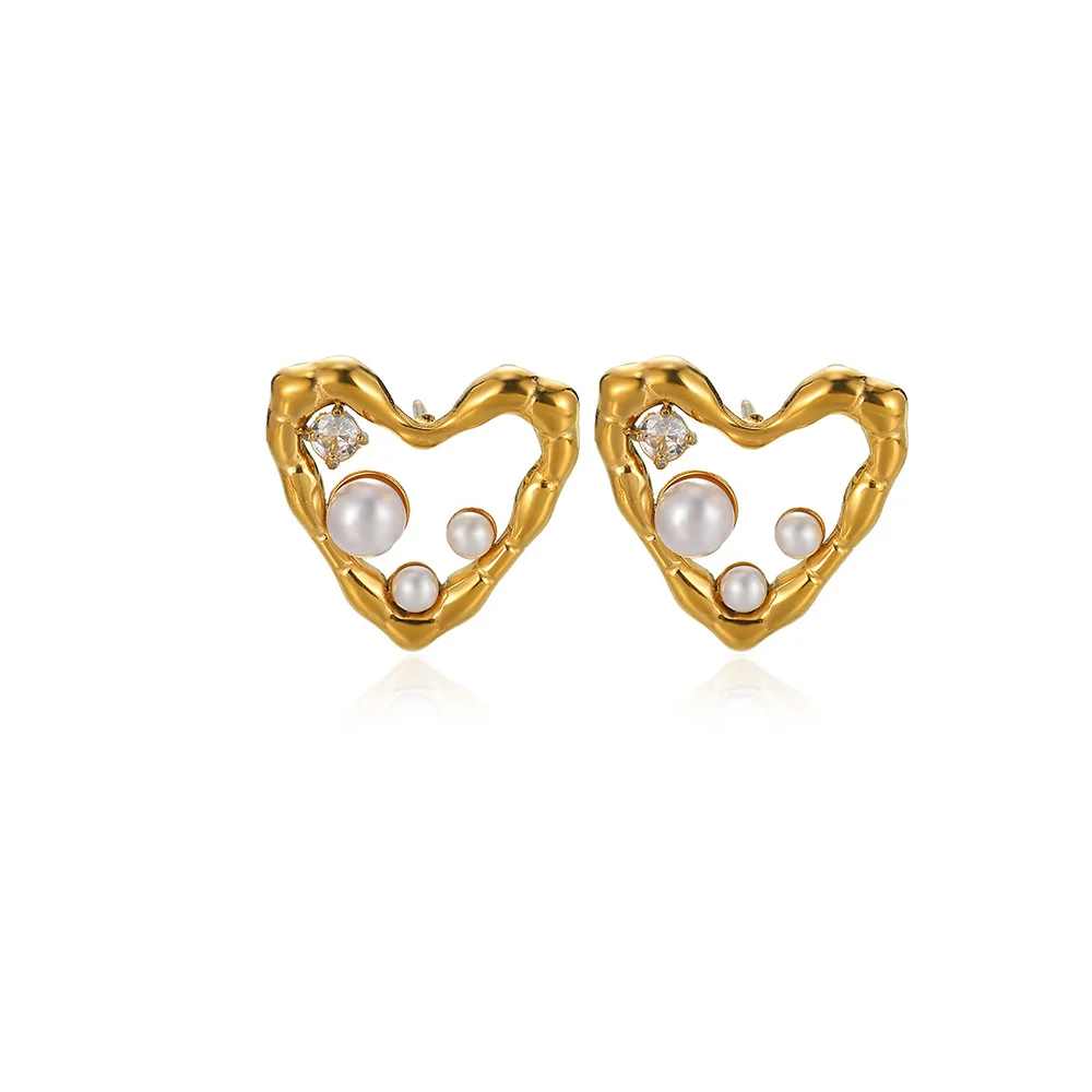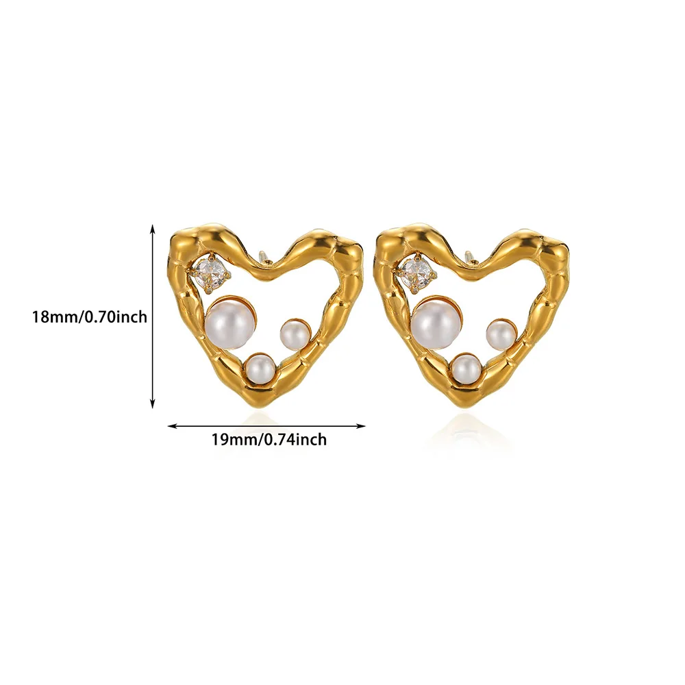 New Heart Stainless Steel Earrings For Elegant Women Pearl Colors Cube Zircon Irregular Earring Wedding Accessories Jewelry Gift