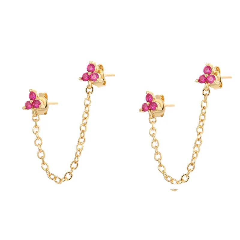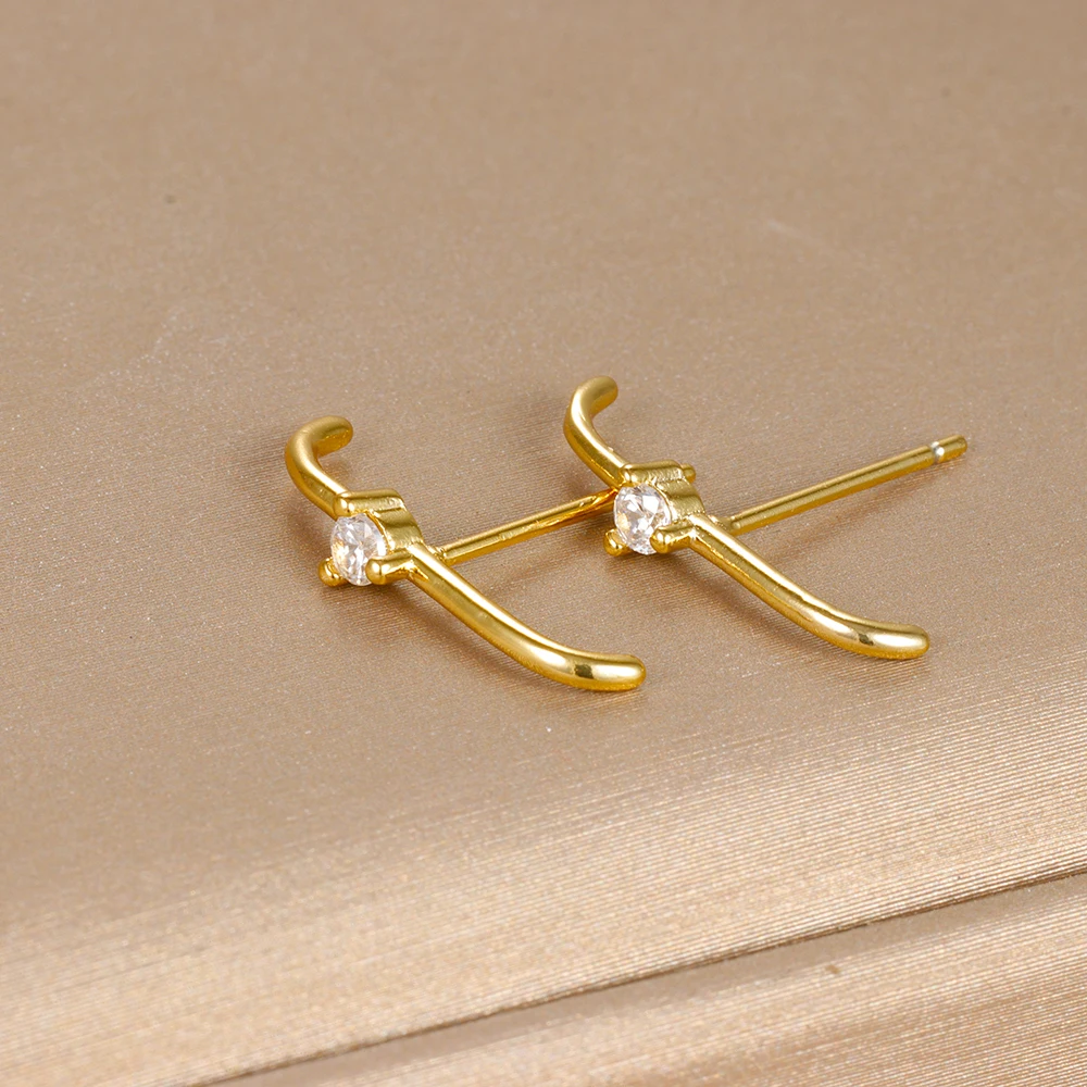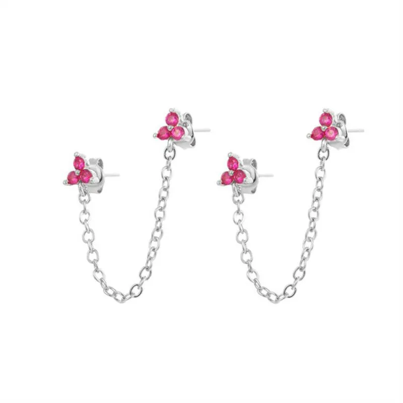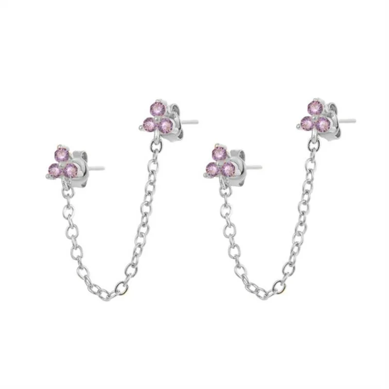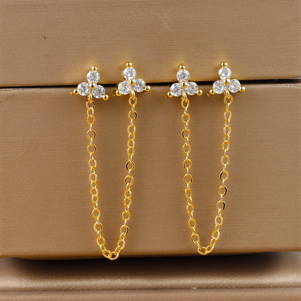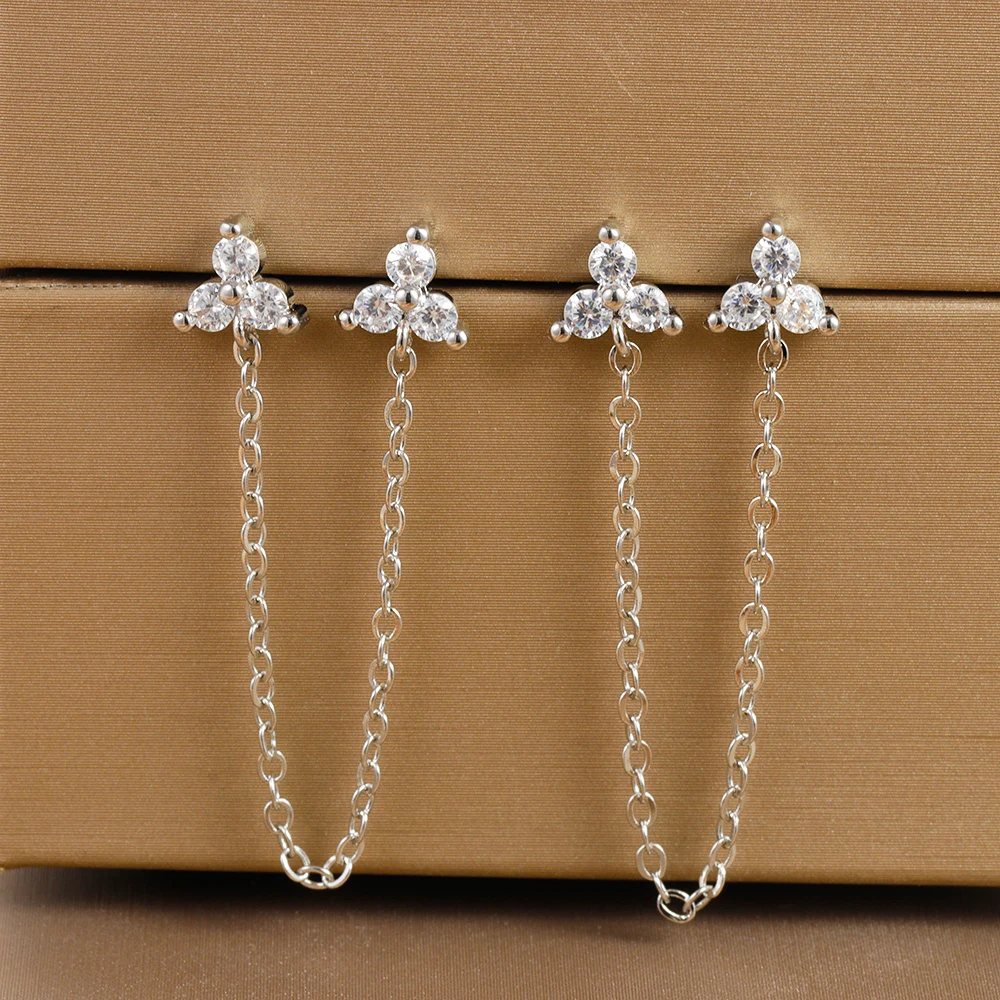 New Stainless Steel Cubic Zirconia Link Chain Ear Studs Earrings For Women Triangle Pendant Cartilage Earrings Piercing Jewelry