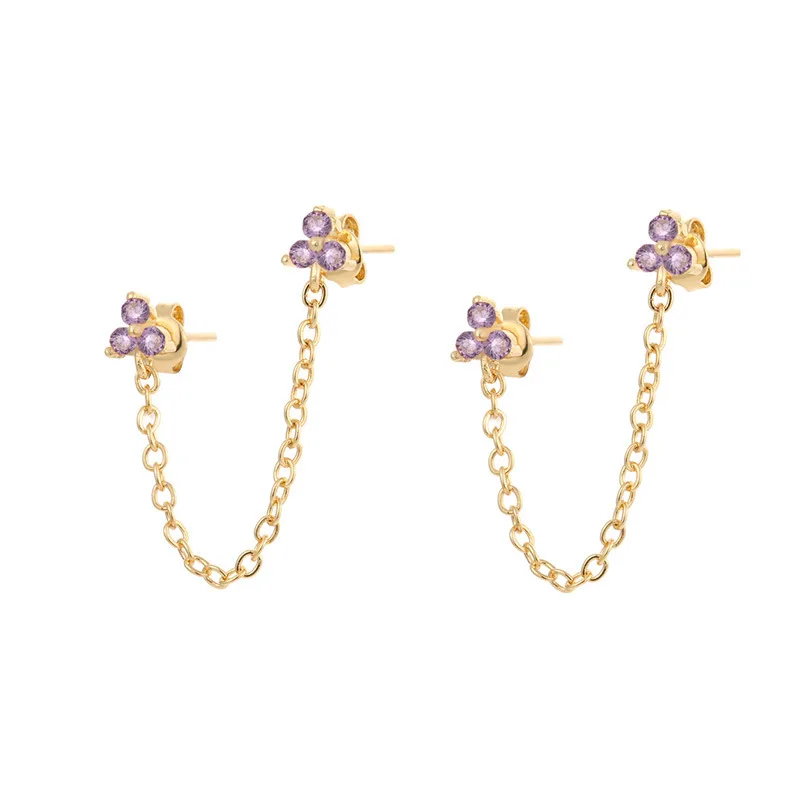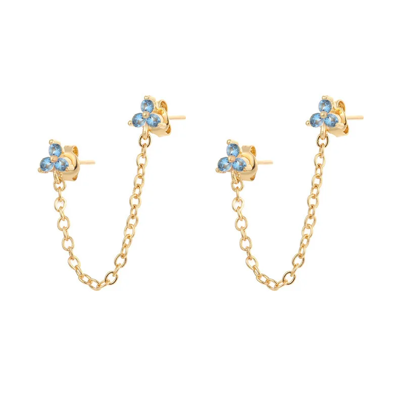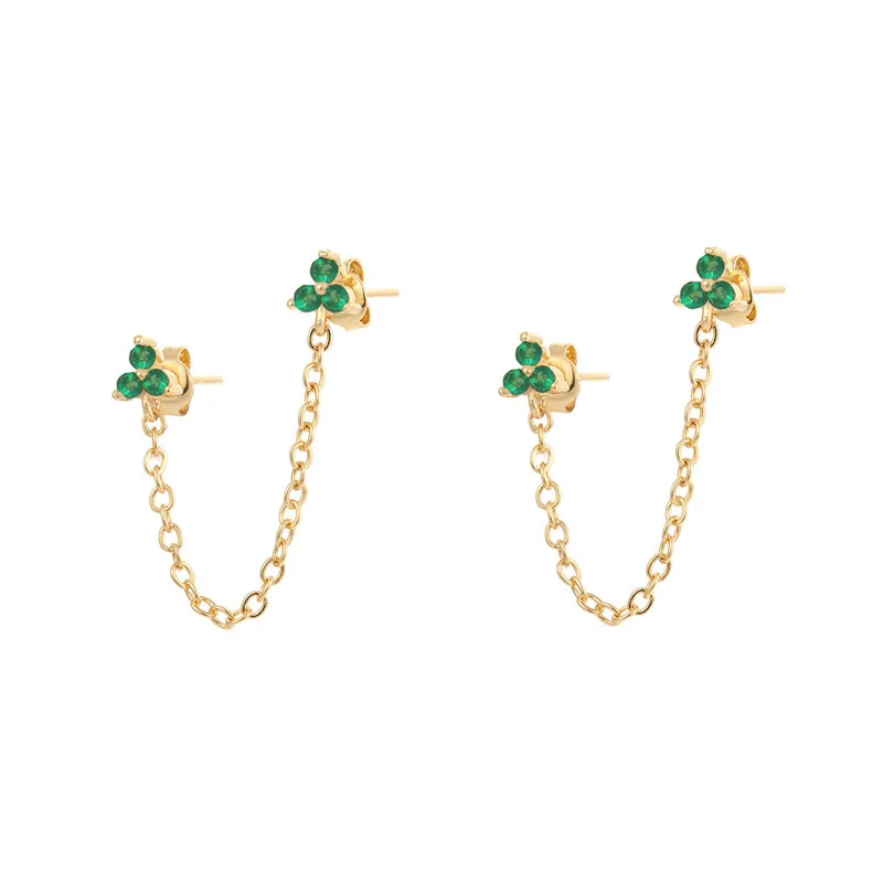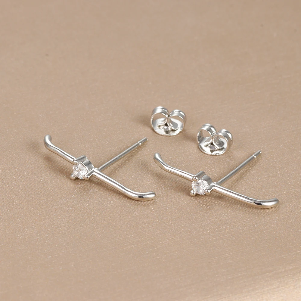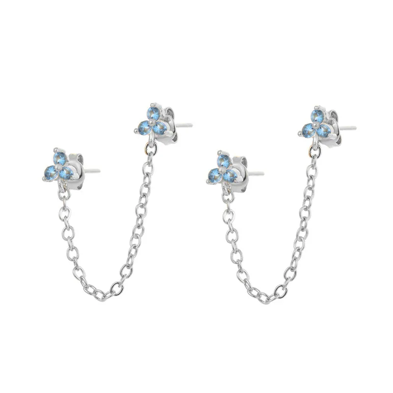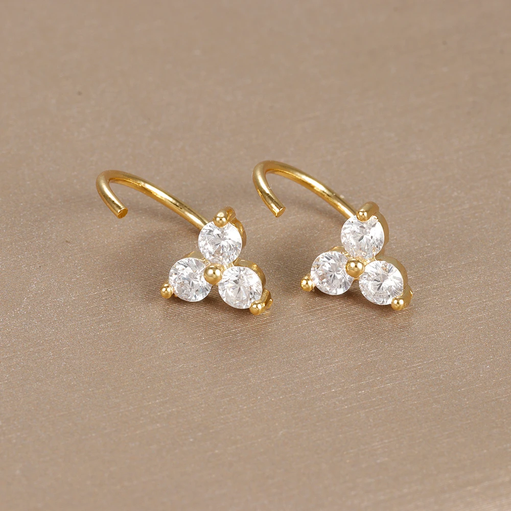 New Stainless Steel Cubic Zirconia Link Chain Ear Studs Earrings For Women Triangle Pendant Cartilage Earrings Piercing Jewelry