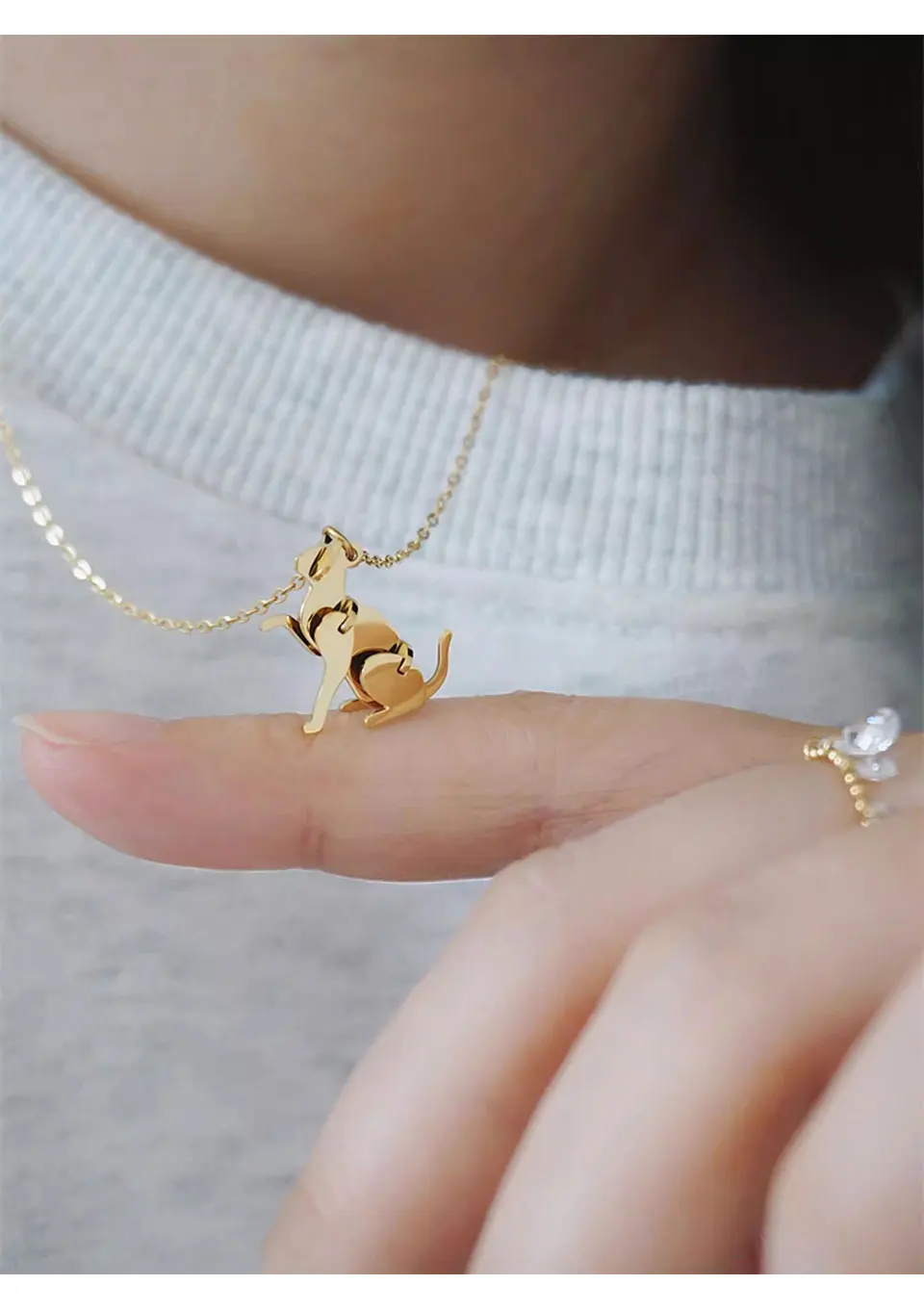 Peri'sbox 2024 New Fashion Building Block Cats Dogs Pendant Necklace for Women 316L Stainless Steel Clavicle Chain Daily Jewelry