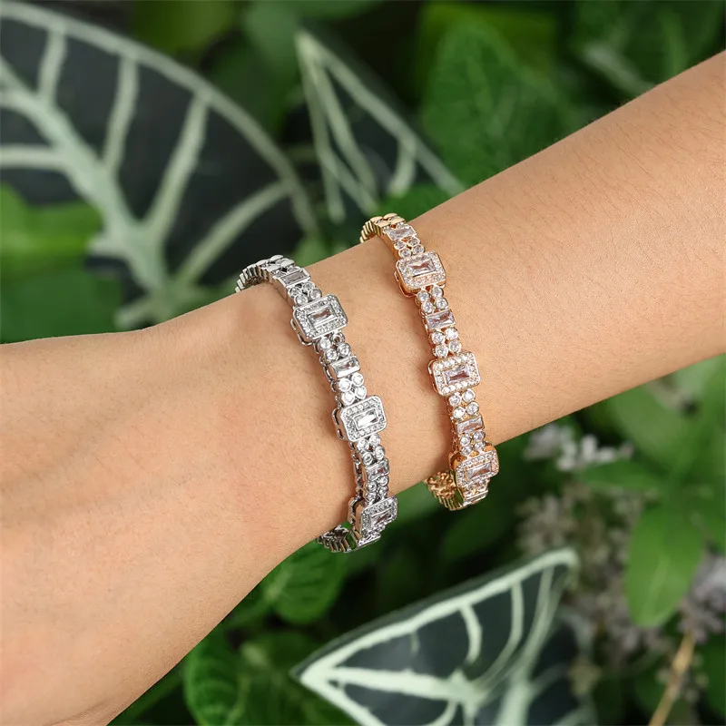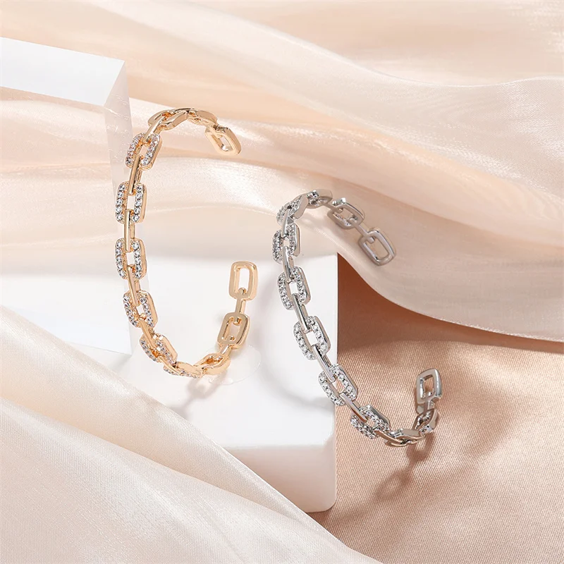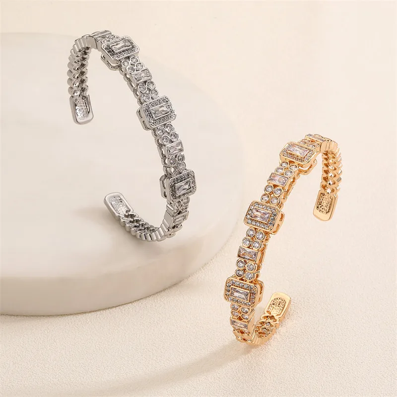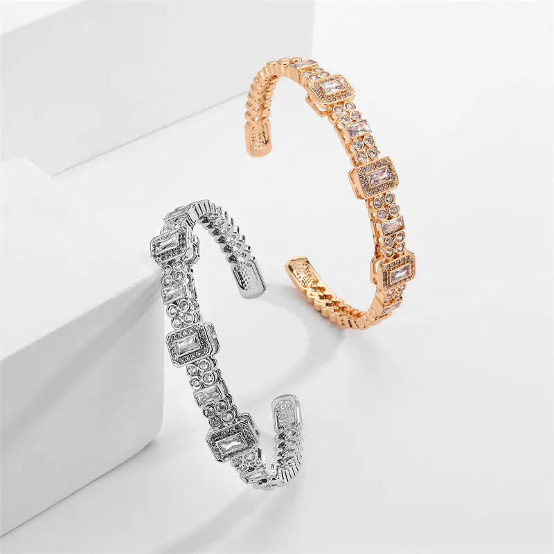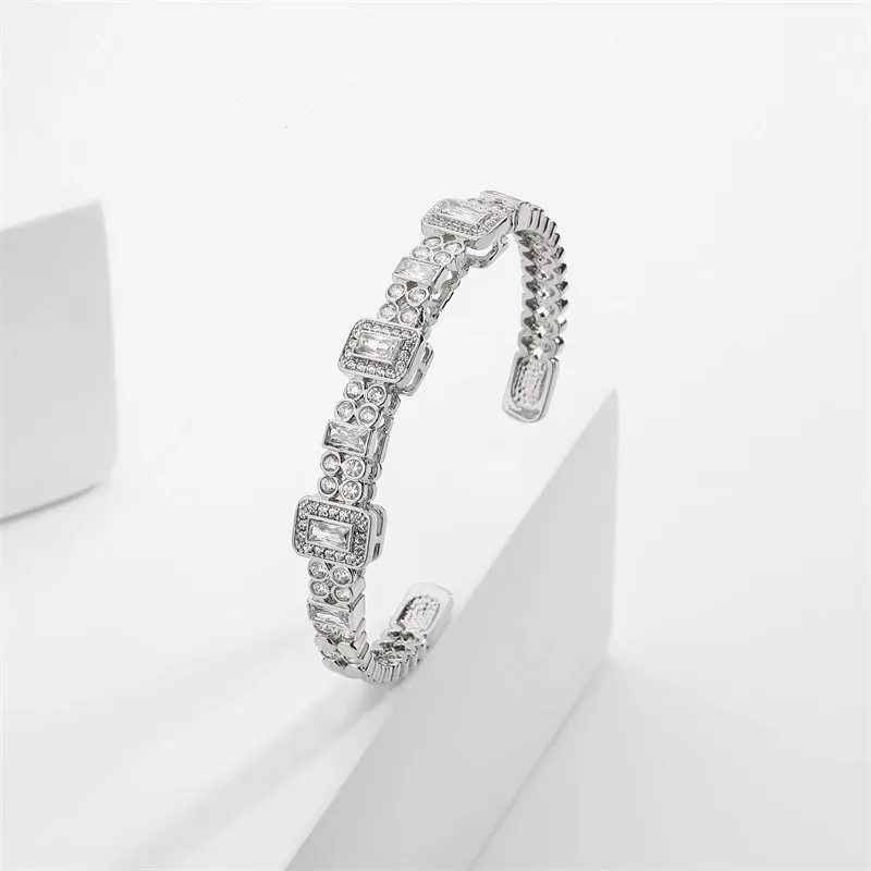 RAKOL Luxury Open Cubic Zirconia Cuff Bangle For Women Fashion Geometric CZ Stainless Steel Bracelet Jewelry Gifts