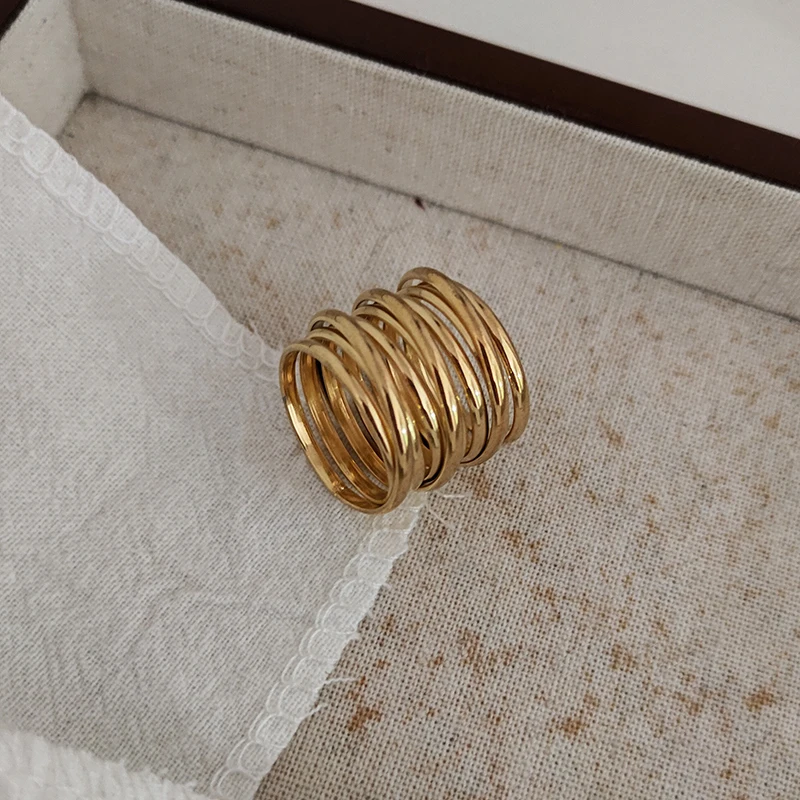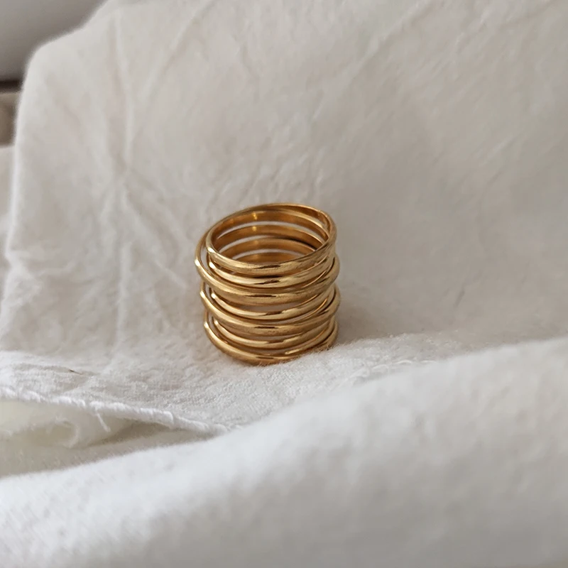 Spring spiral multilayered rings stainless steel rings for women minimalist simple statement jewelry new in 2024