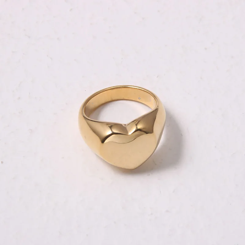 Stainless Steel 18k Gold Plated Tarnish Free Minimal Sweet Jewelry Gift for Ladie Stereoscopic Gold Heart Love Rings for Women