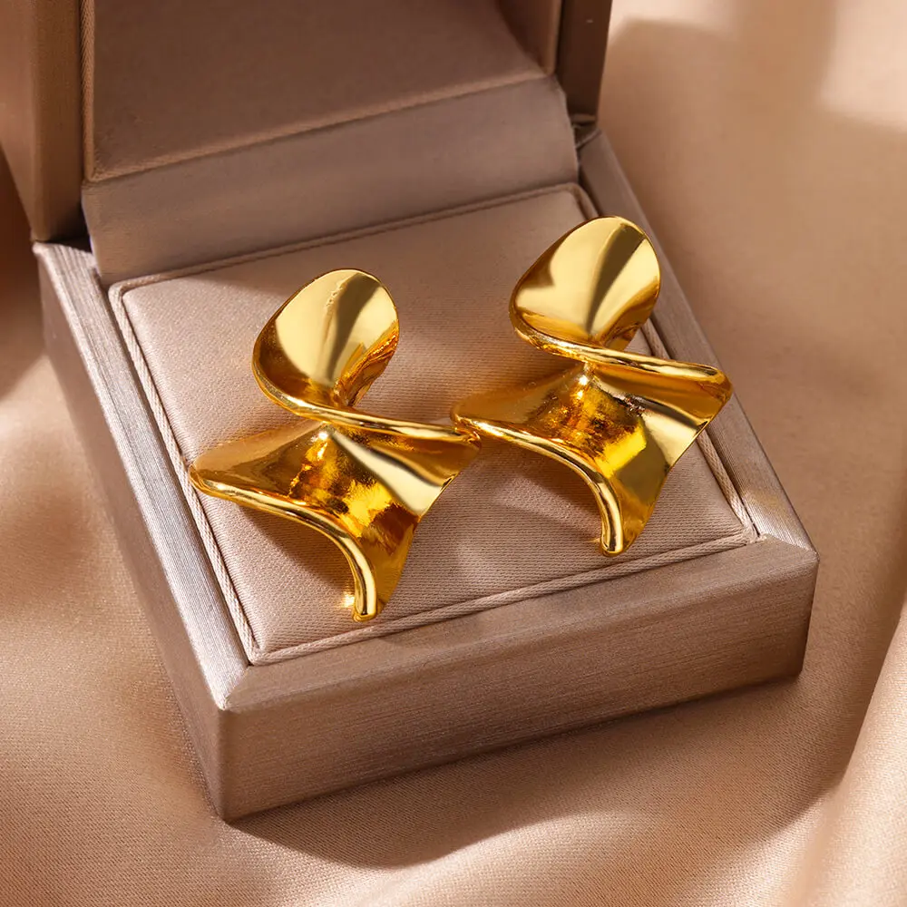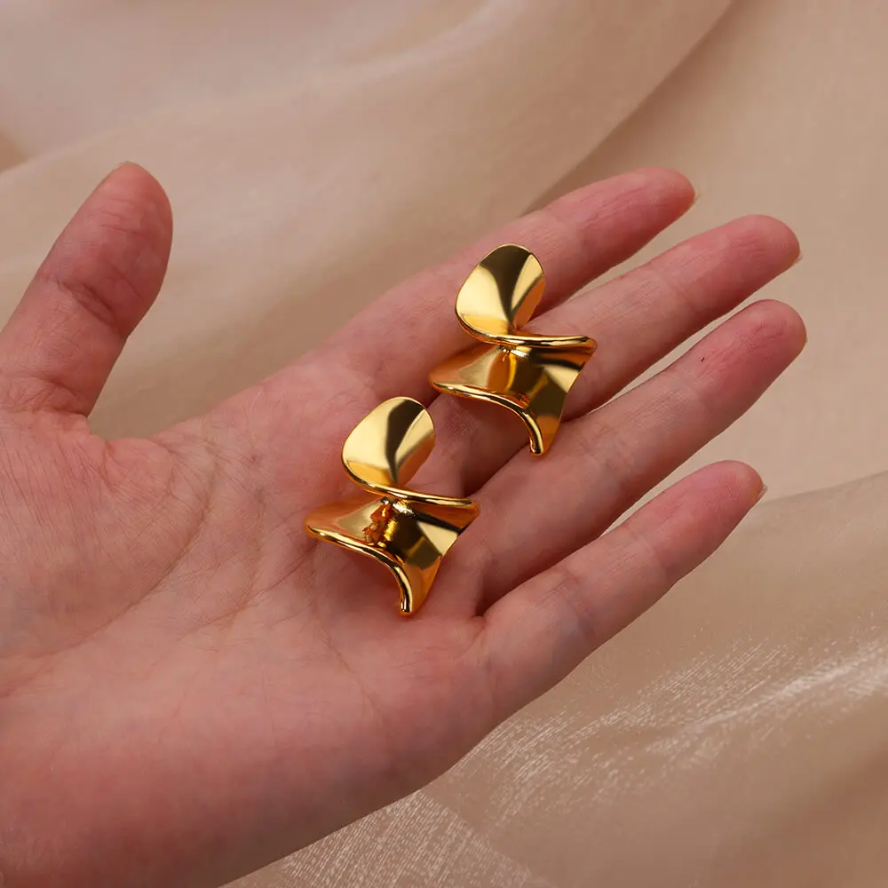 Stainless Steel Gold Color Wide Spiral Stud Earrings  for Woman Fashion Metal Piercing Earrings Party Wedding Jewelry Gift
