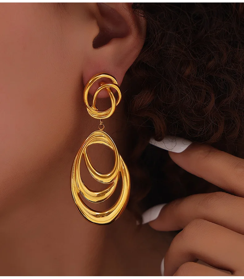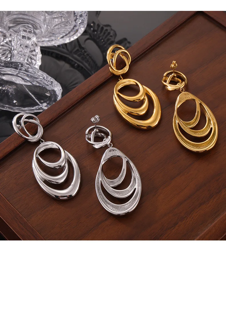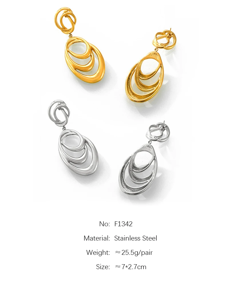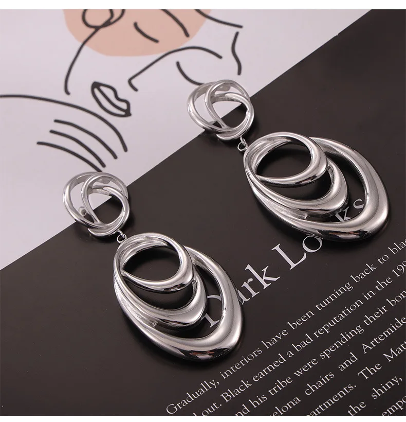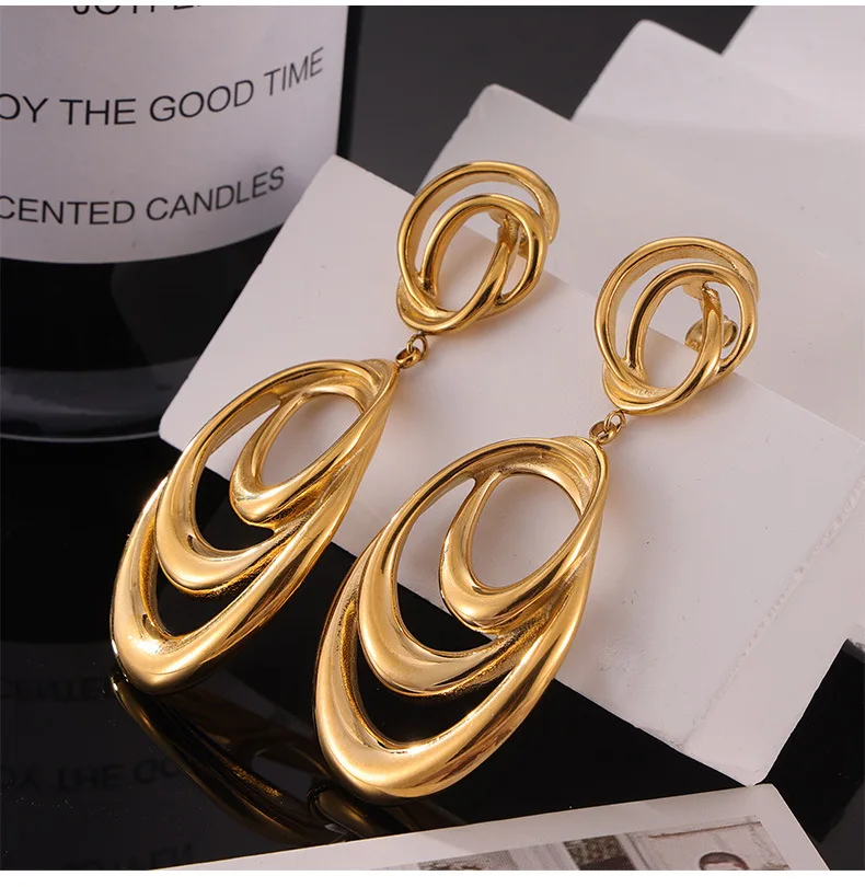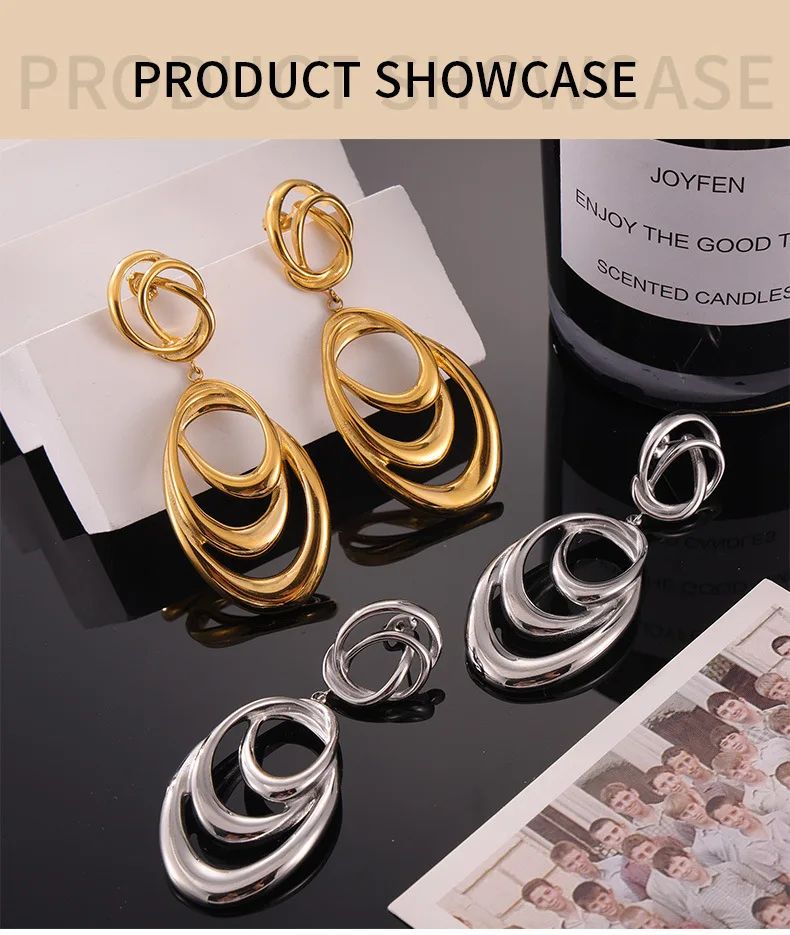 Stainless Steel Hanging Earrings For Women Gold Plated Non-Fading Women's Big Large Dangle Earring Girls Silver Color Ear Rings