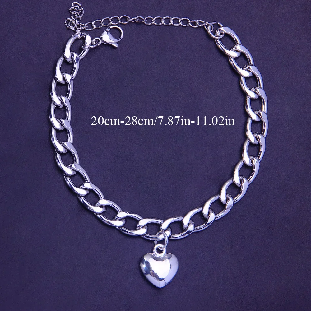 Stainless Steel Heart Anklets Fashion Cuban Chain Accessory Summer Beach Anklet For Women Foot Jewelry Sandal Feet Gifts