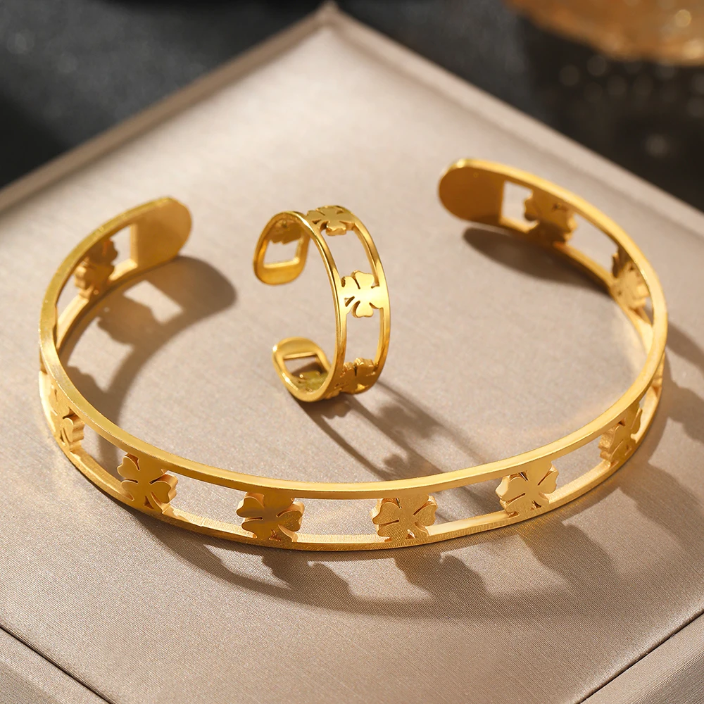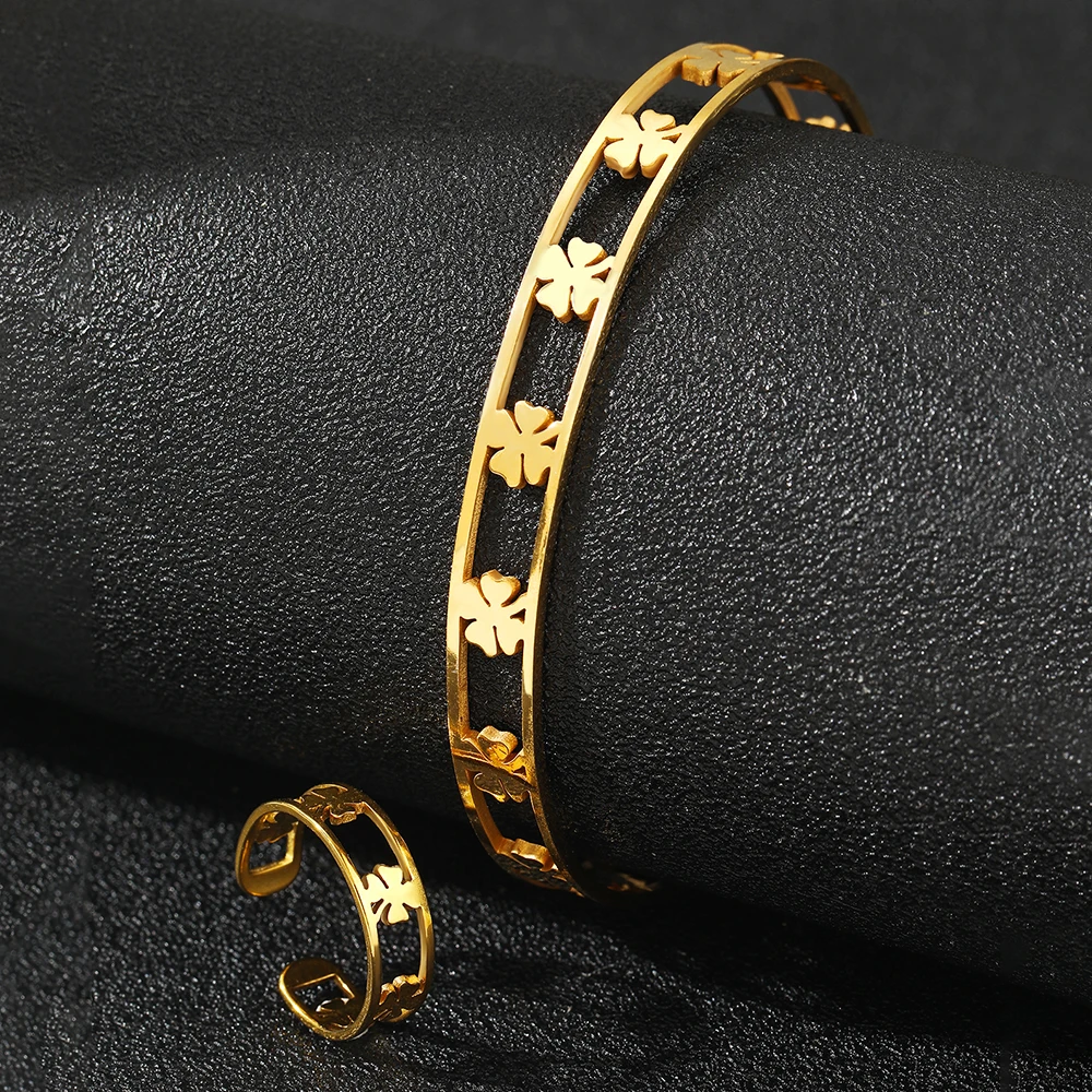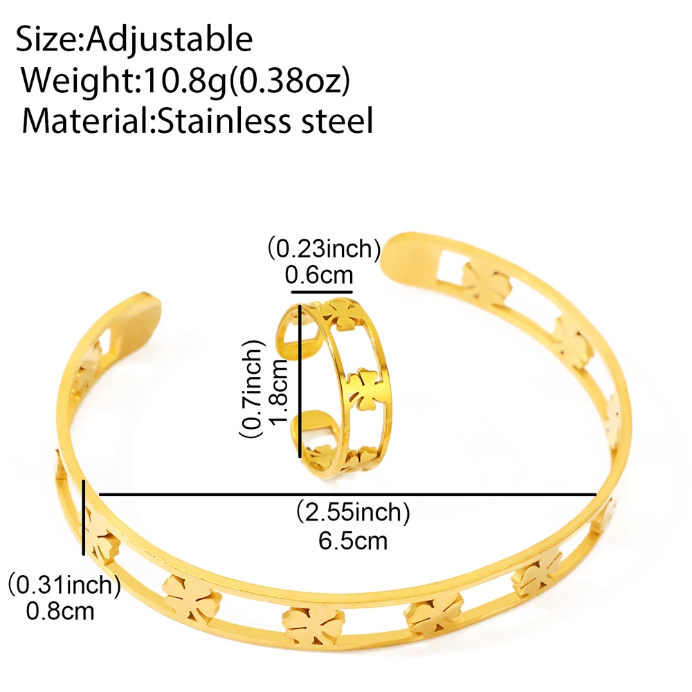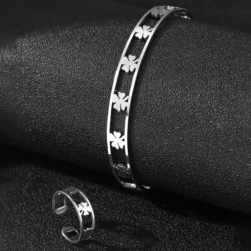 Stainless Steel Jewelry Set Clover Simple Skeleton Design Bracelet Ring Combo Set For Women Jewelry Party Gift Recommendation