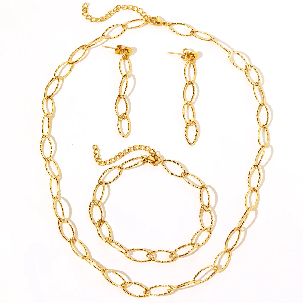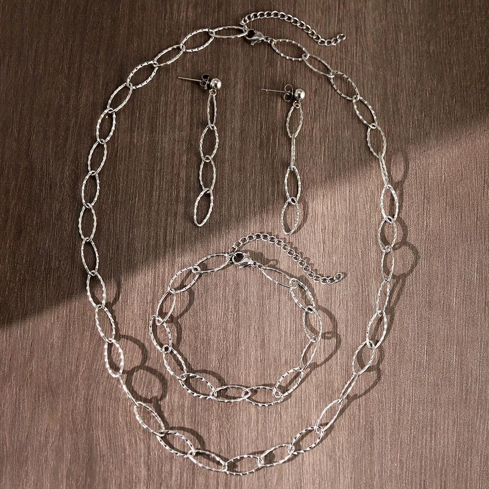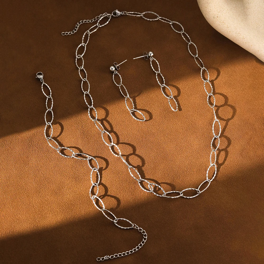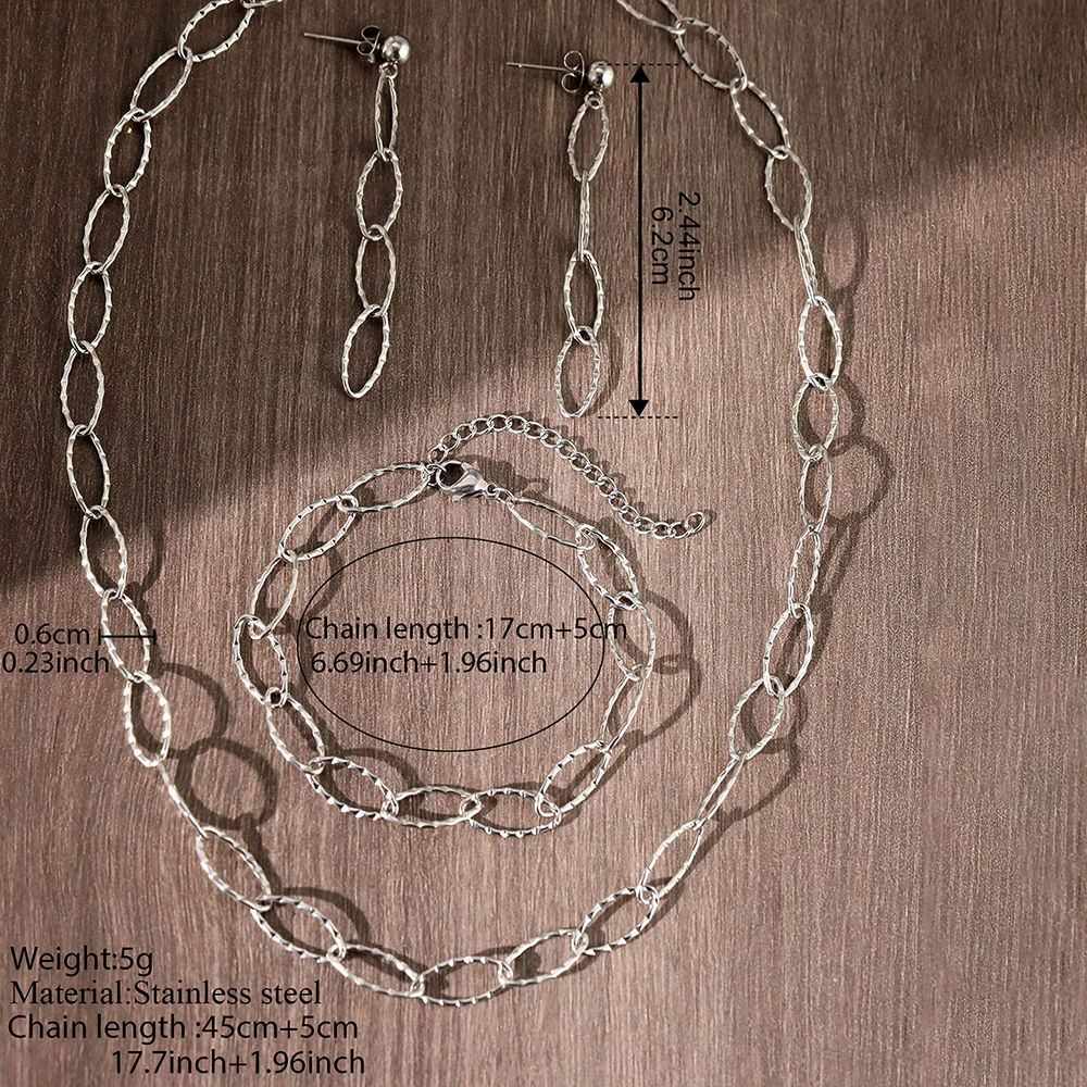 Stainless Steel Necklace New Senior Bracelet Earrings Set Fashion Minimalist Hip-Hop Necklace For Women Jewelry Best Friend Gift