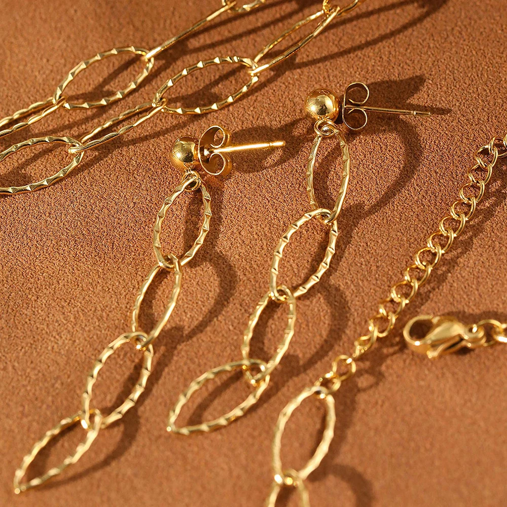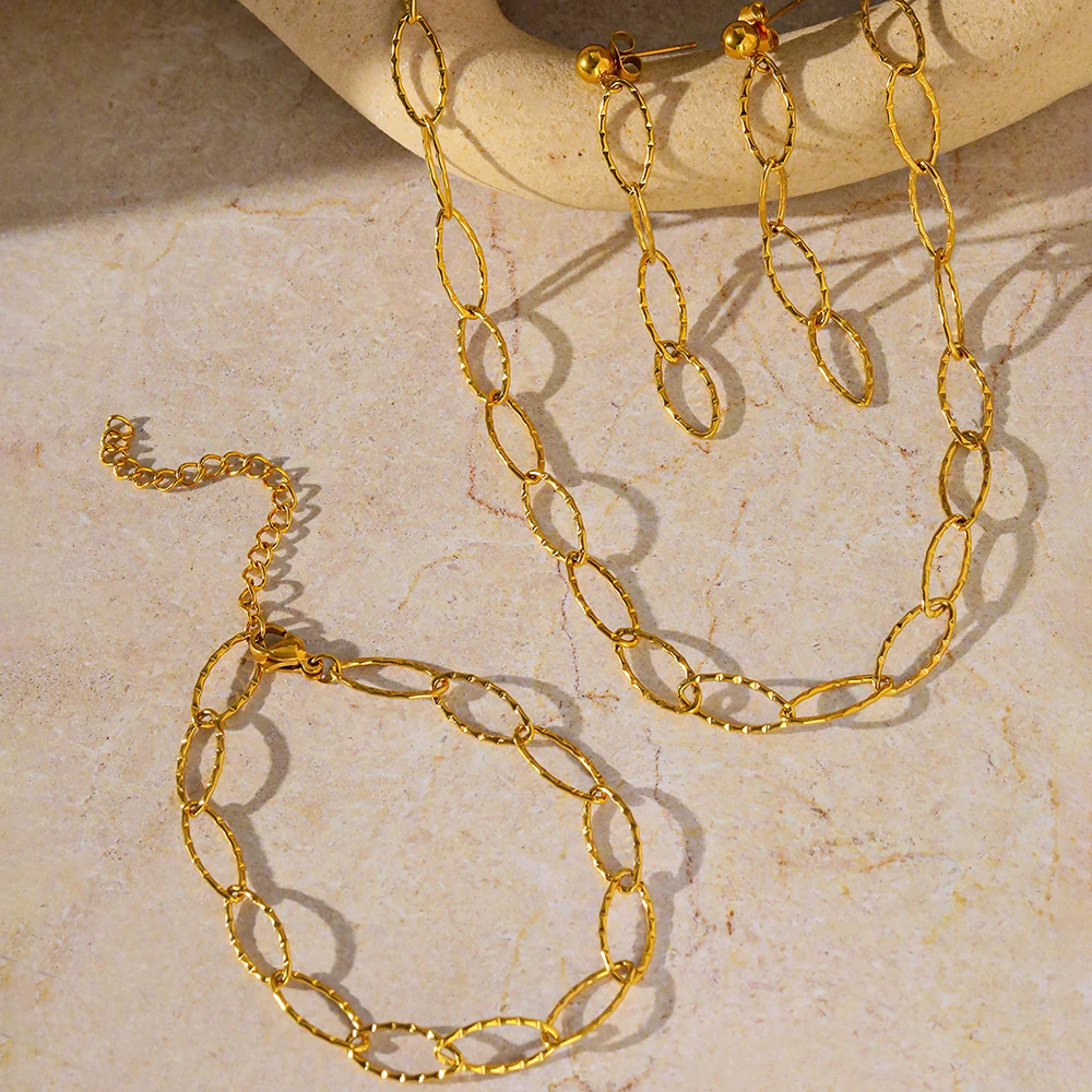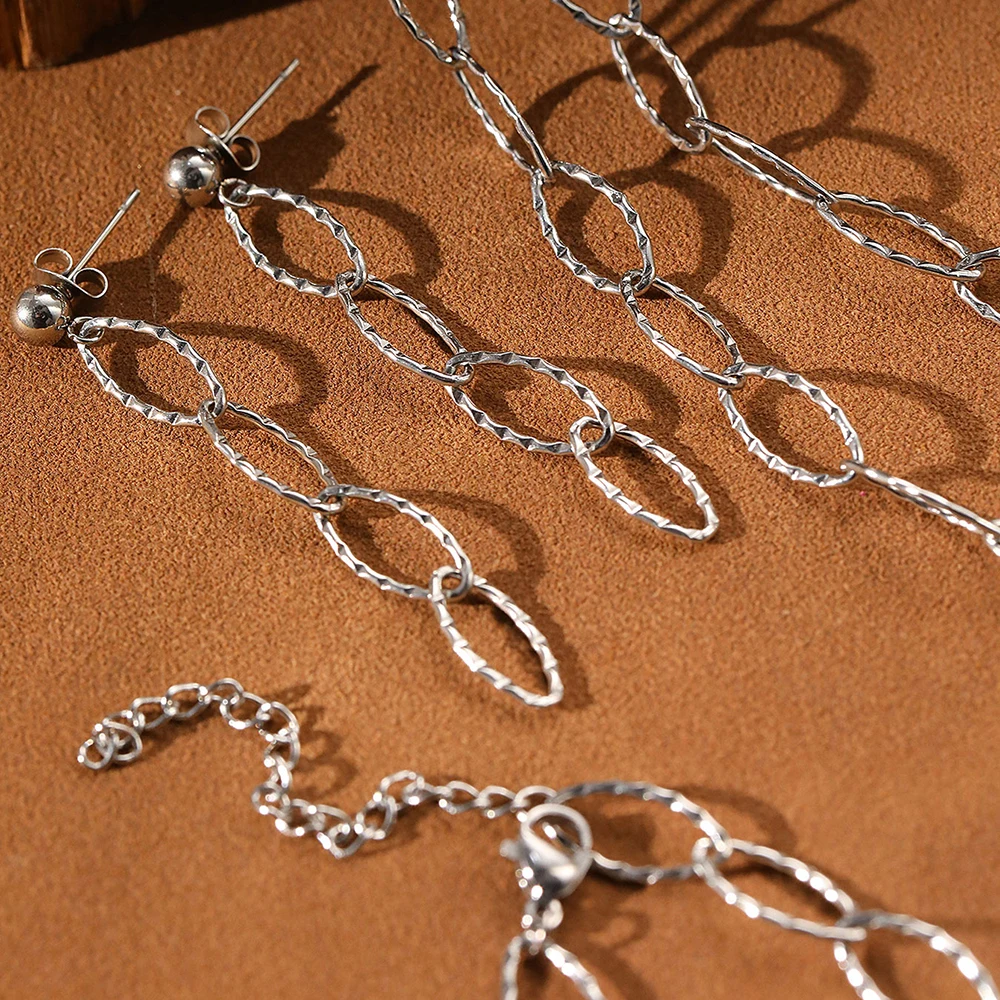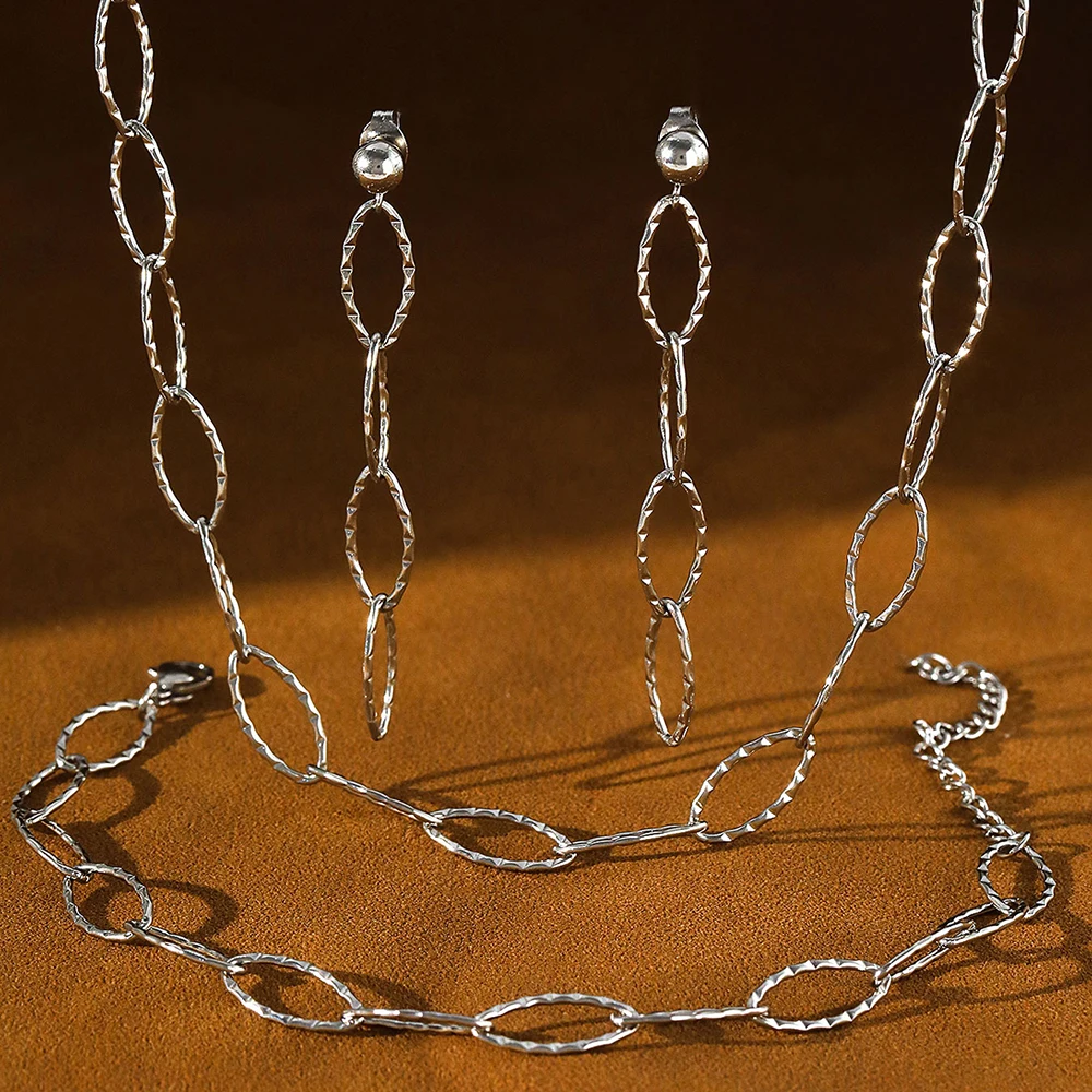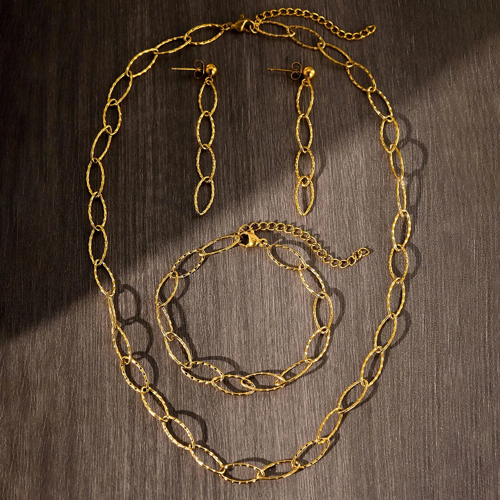 Stainless Steel Necklace New Senior Bracelet Earrings Set Fashion Minimalist Hip-Hop Necklace For Women Jewelry Best Friend Gift
