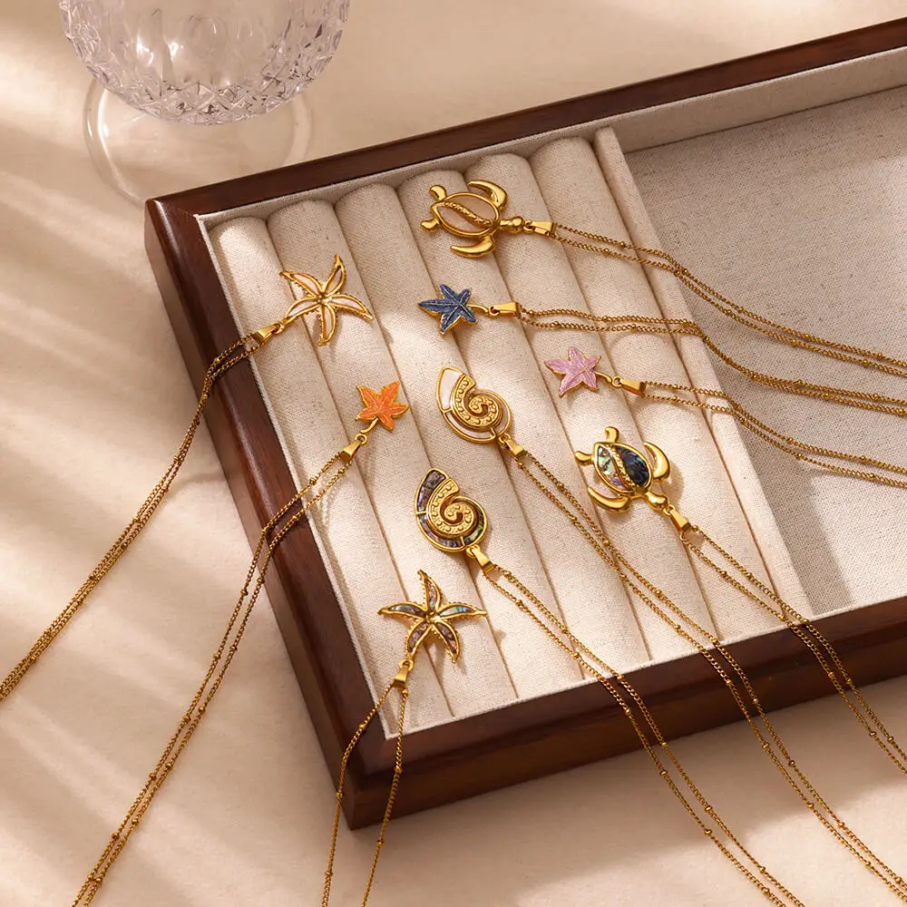 Stainless Steel Ocean Style Necklace Gold Color Waterproof Non-fading Necklace For Women Female Trendy Aesthetic Jewelry Gifts