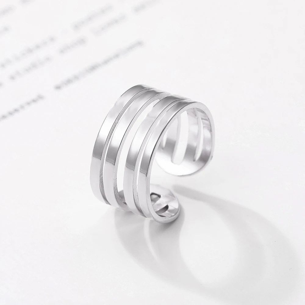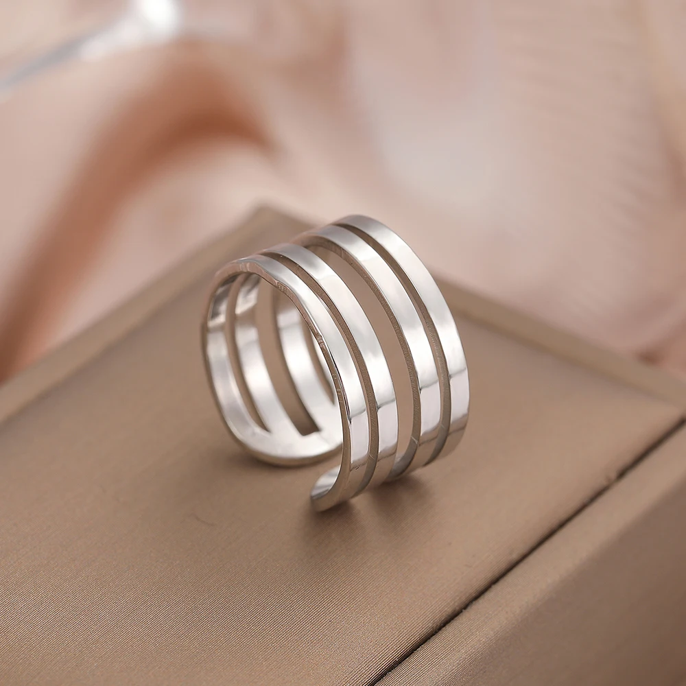 Stainless Steel Ring Simple Wide Layered Design Open Fashion Ladies Couple Adjustable Rings For Women Jewelry Aesthetic Gifts