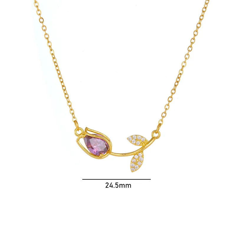 Sweet Colorful Zircon Tulip Pendant Necklaces for Women Girls Stainless Steel Trendy Romantic Jewelry Accessories Gifts